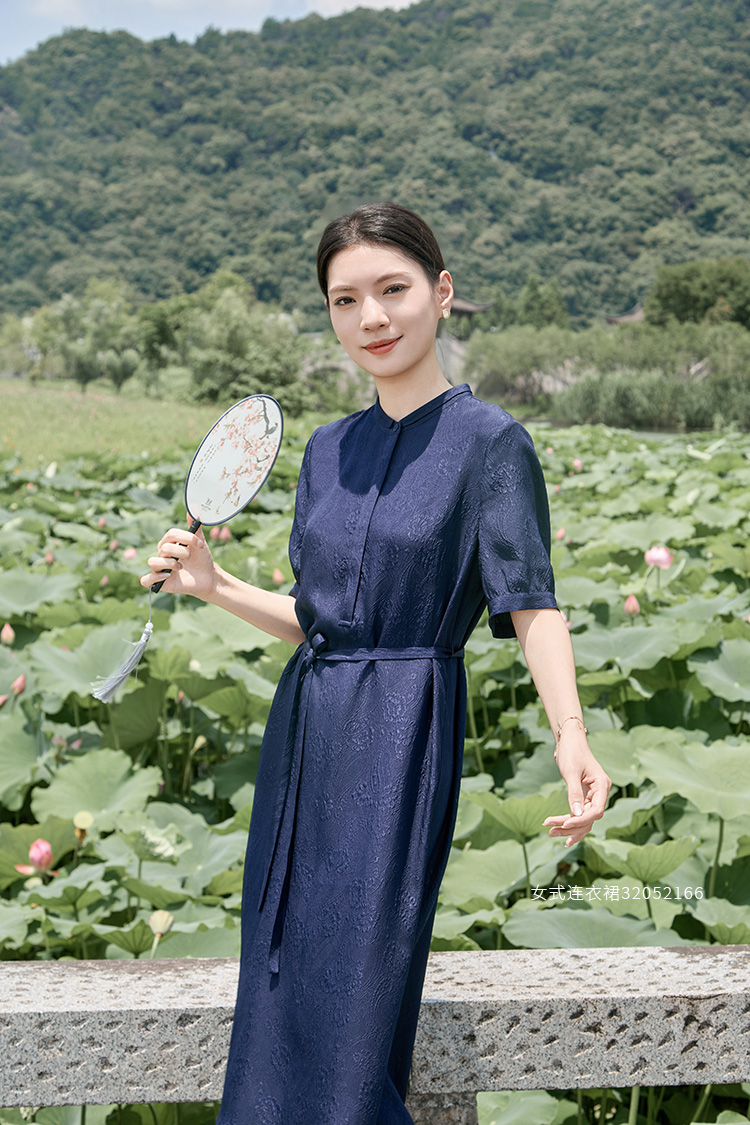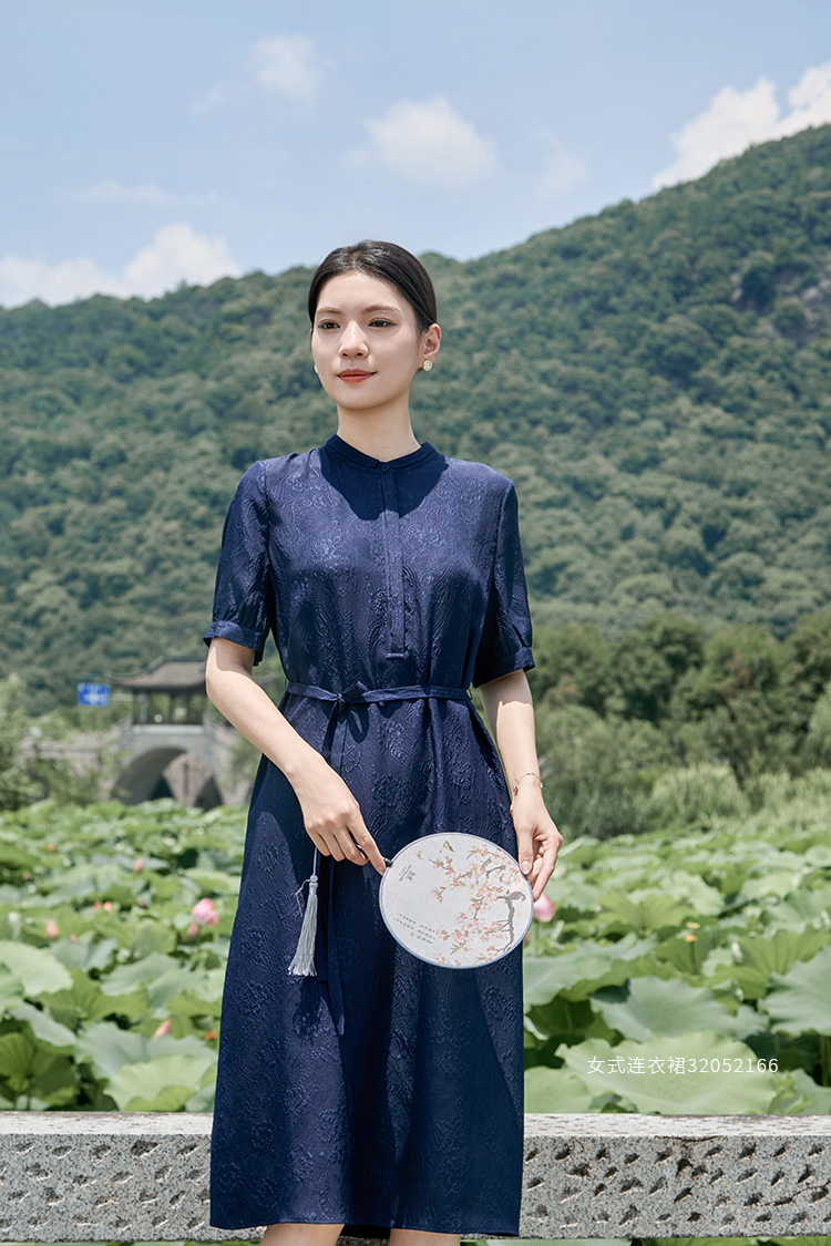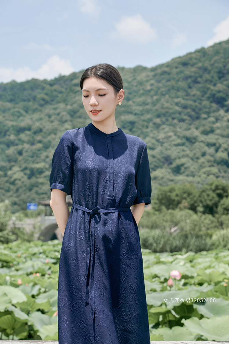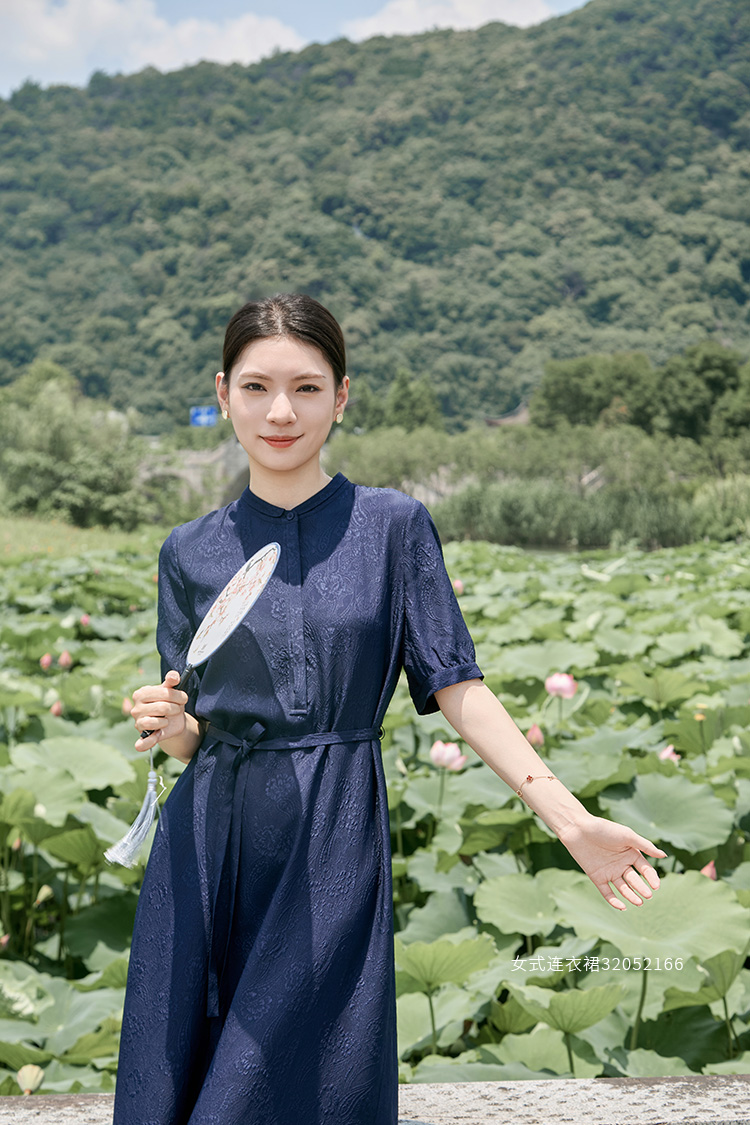 【立体印花真丝连衣裙】25年夏季新品女士100%桑蚕丝系带收腰中长款裙子