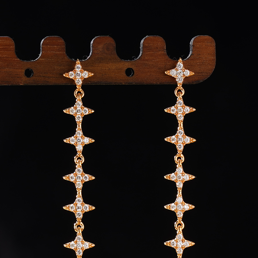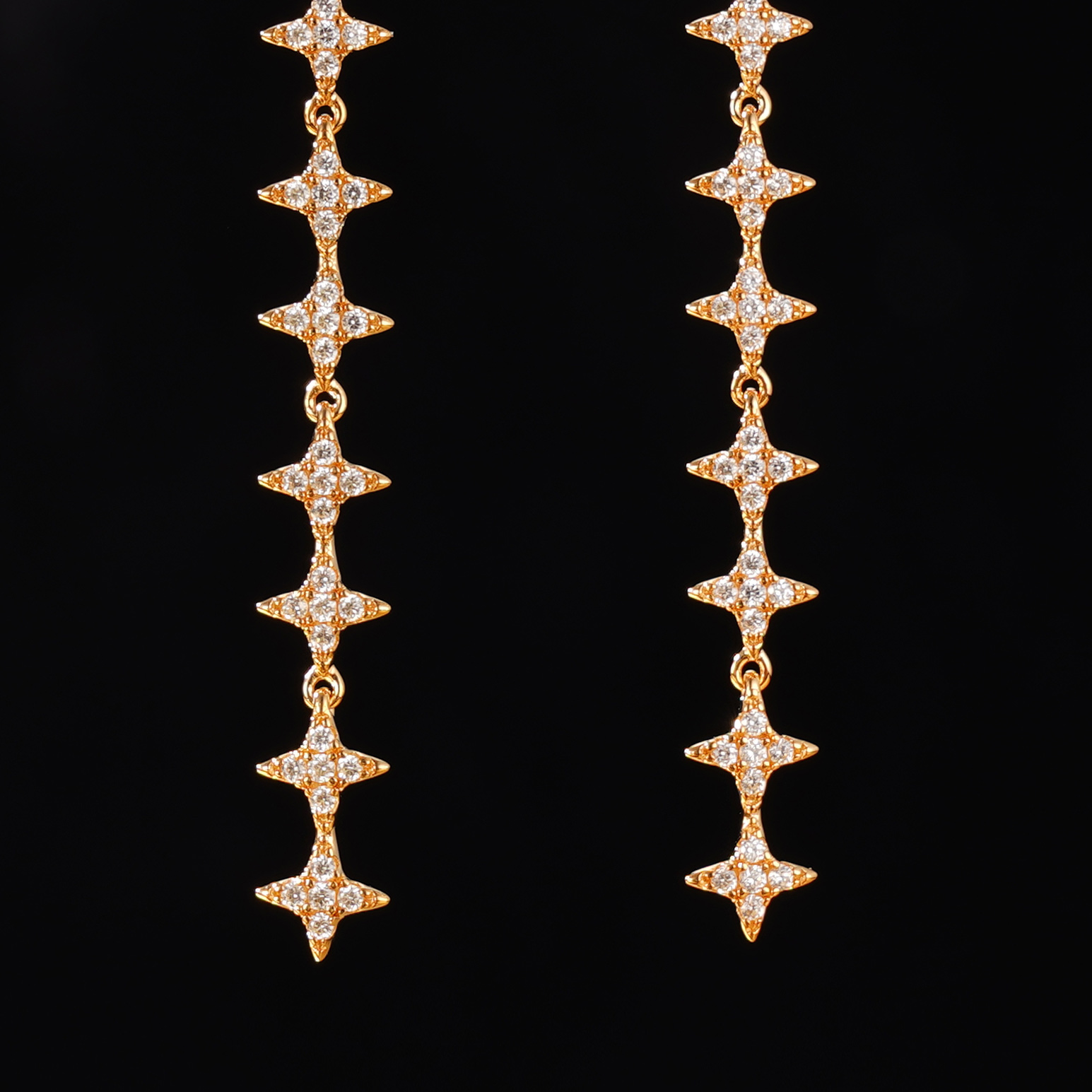 【寓意】:精致的流苏线条耳饰,星光流转,优雅灵动,巧妙修饰脸部线条的同时,衬托出光彩照人的好气色。