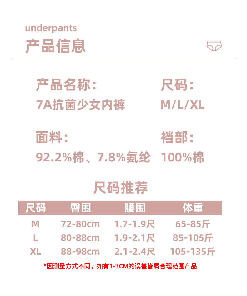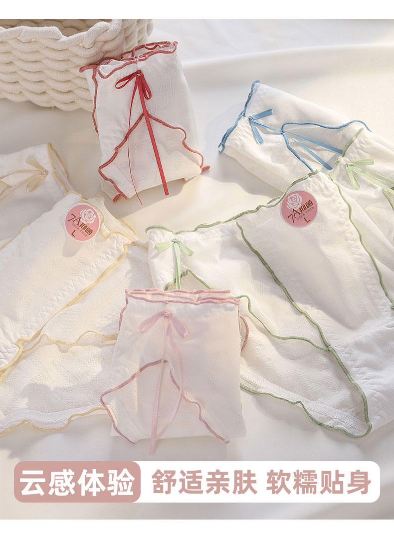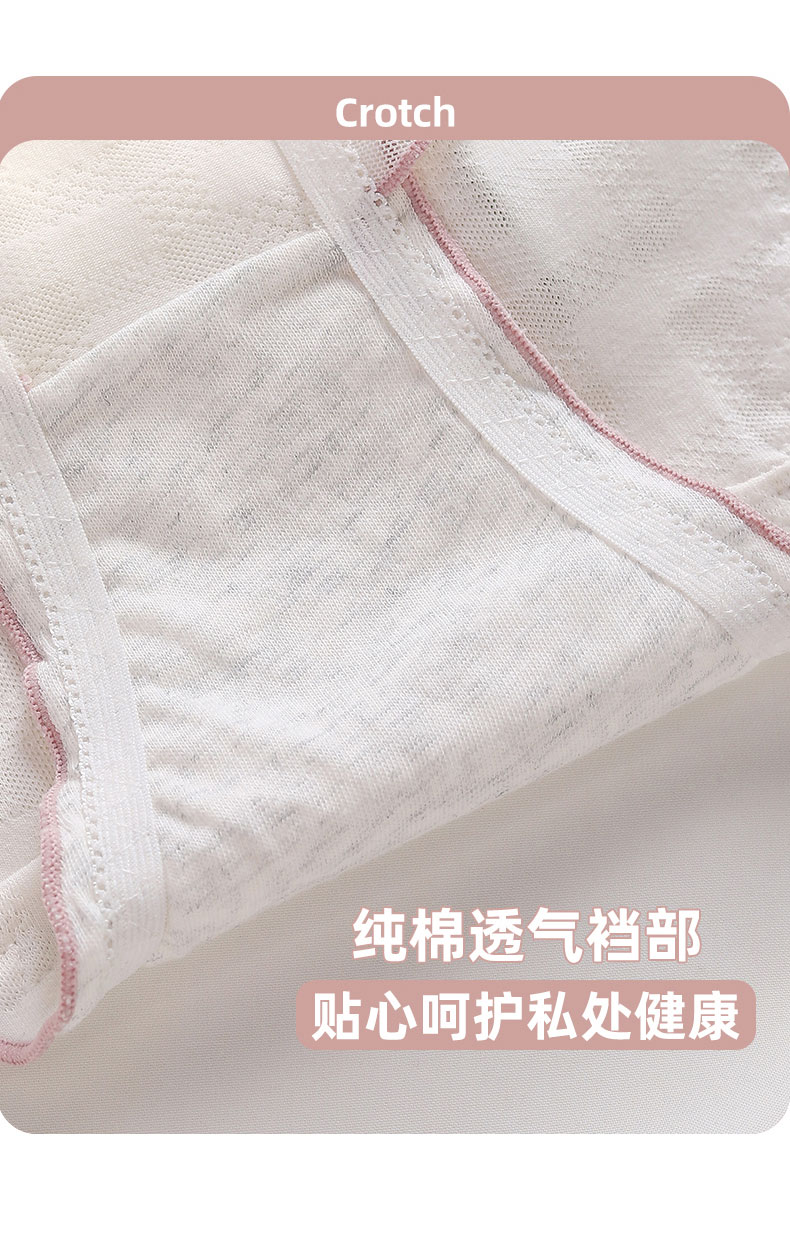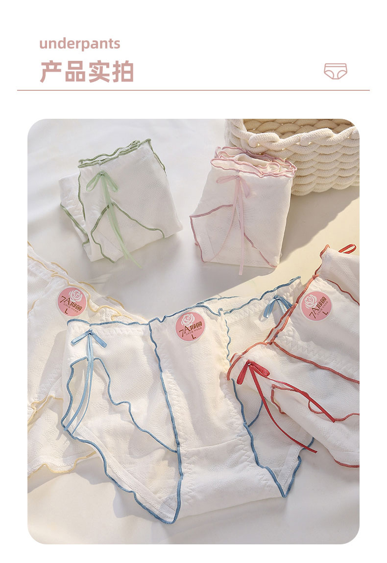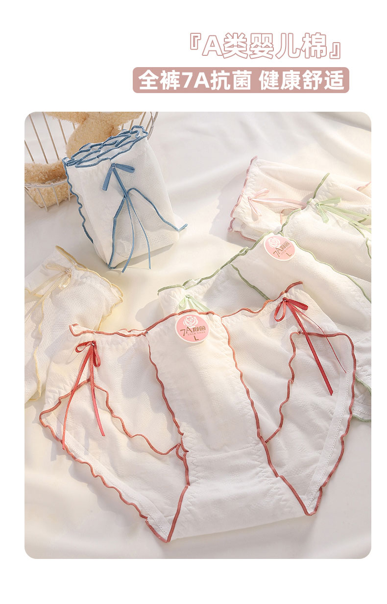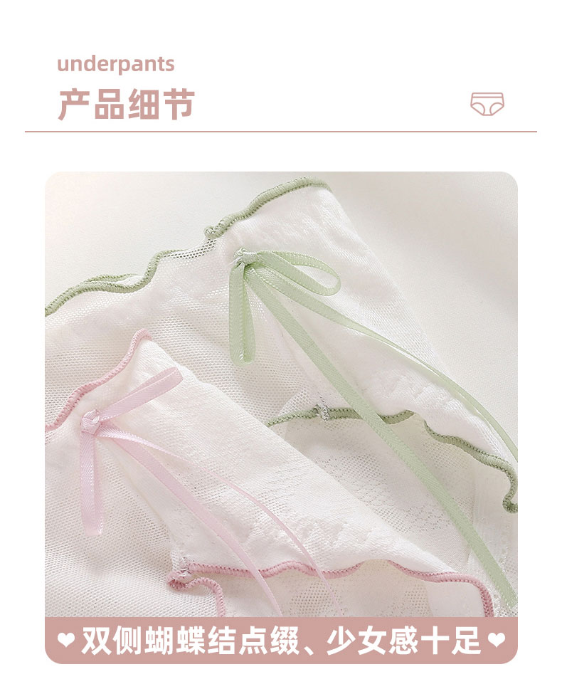 【7A抗菌】洁丽雅4条装中腰纯棉少女内裤可爱蝴蝶结舒适亲肤双层全棉内裆裸感三角裤