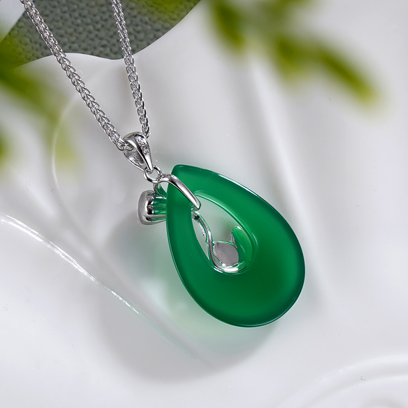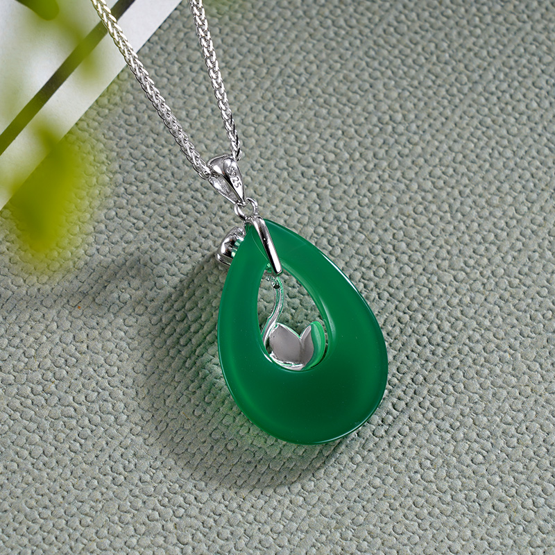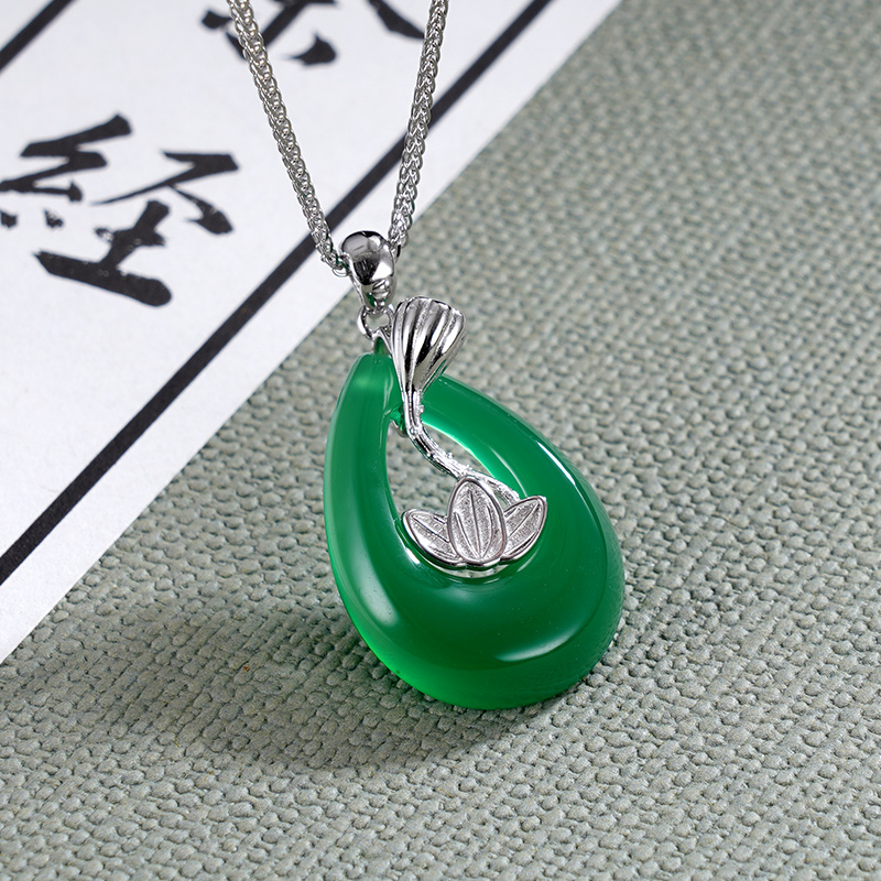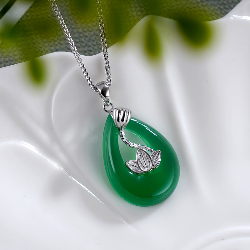 子佩集S925银玉髓夏荷清风套链【DZ014203】纯银绿玉髓项链水滴荷花2406