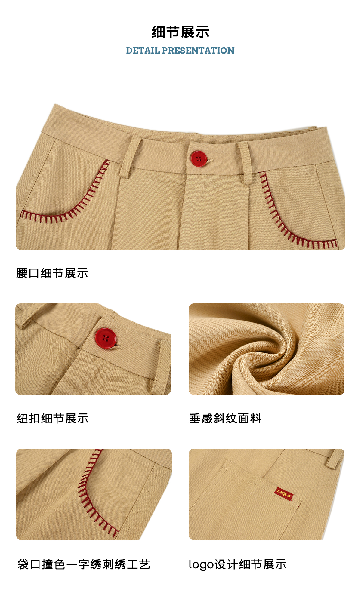 马得工地/MDGDKZ12003/口袋一字绣弯刀裤