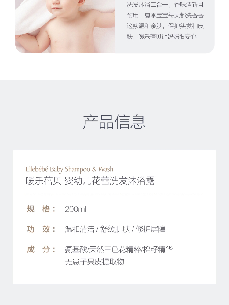Ellabebe嗳乐蓓贝 婴幼儿花蕾洗发沐浴露植物清洁水润不紧绷 200ml 1m+