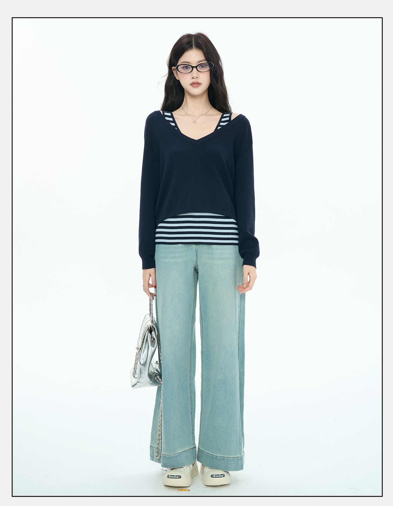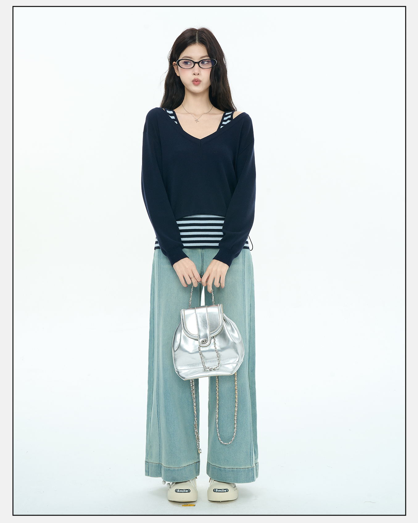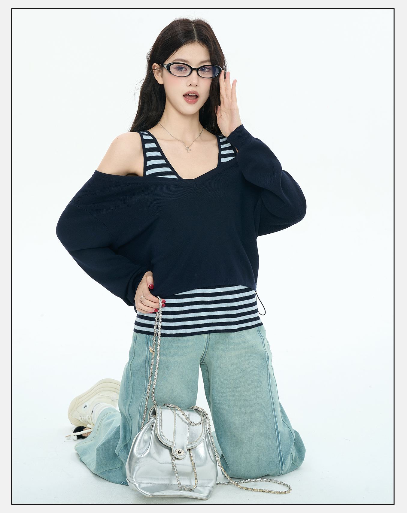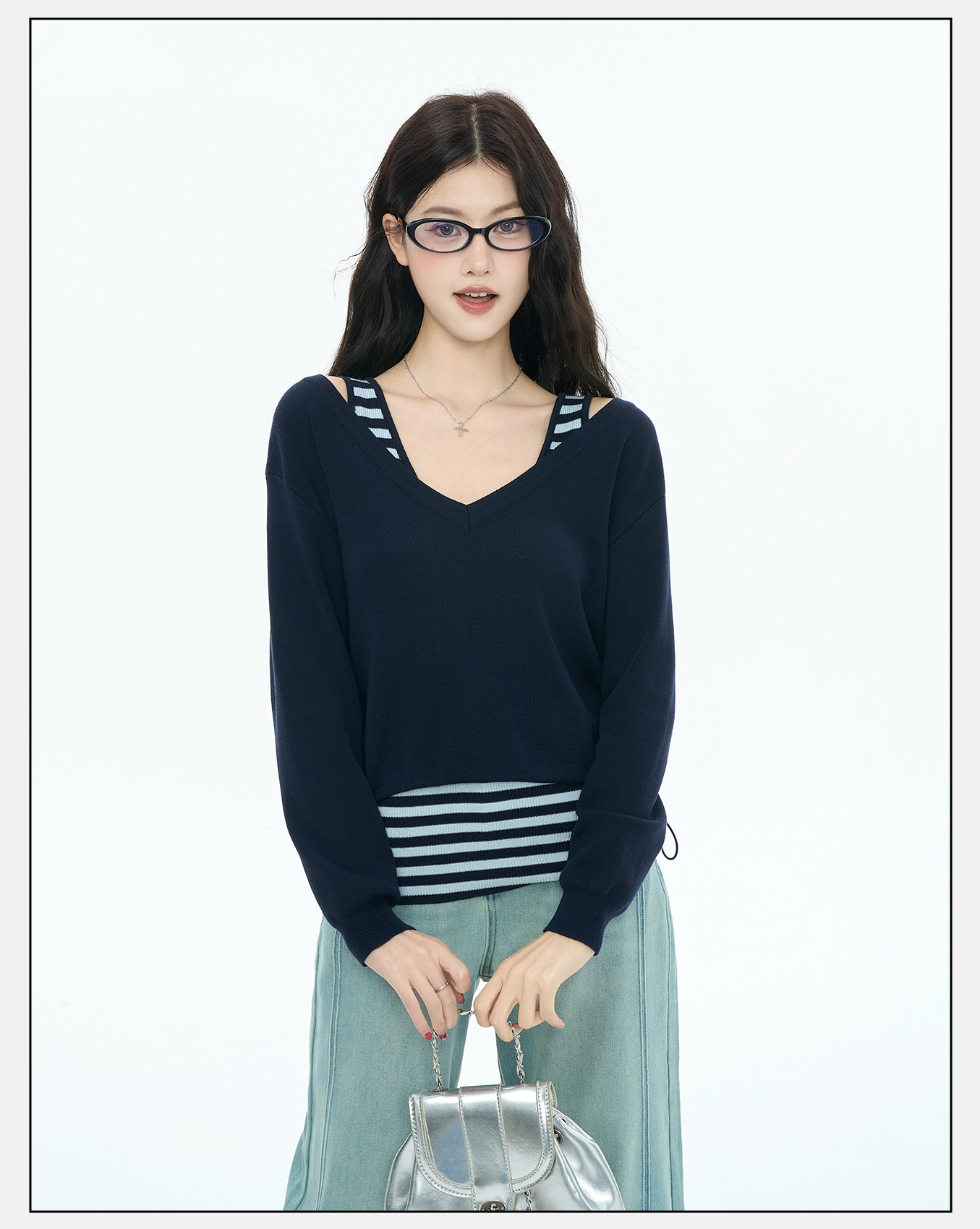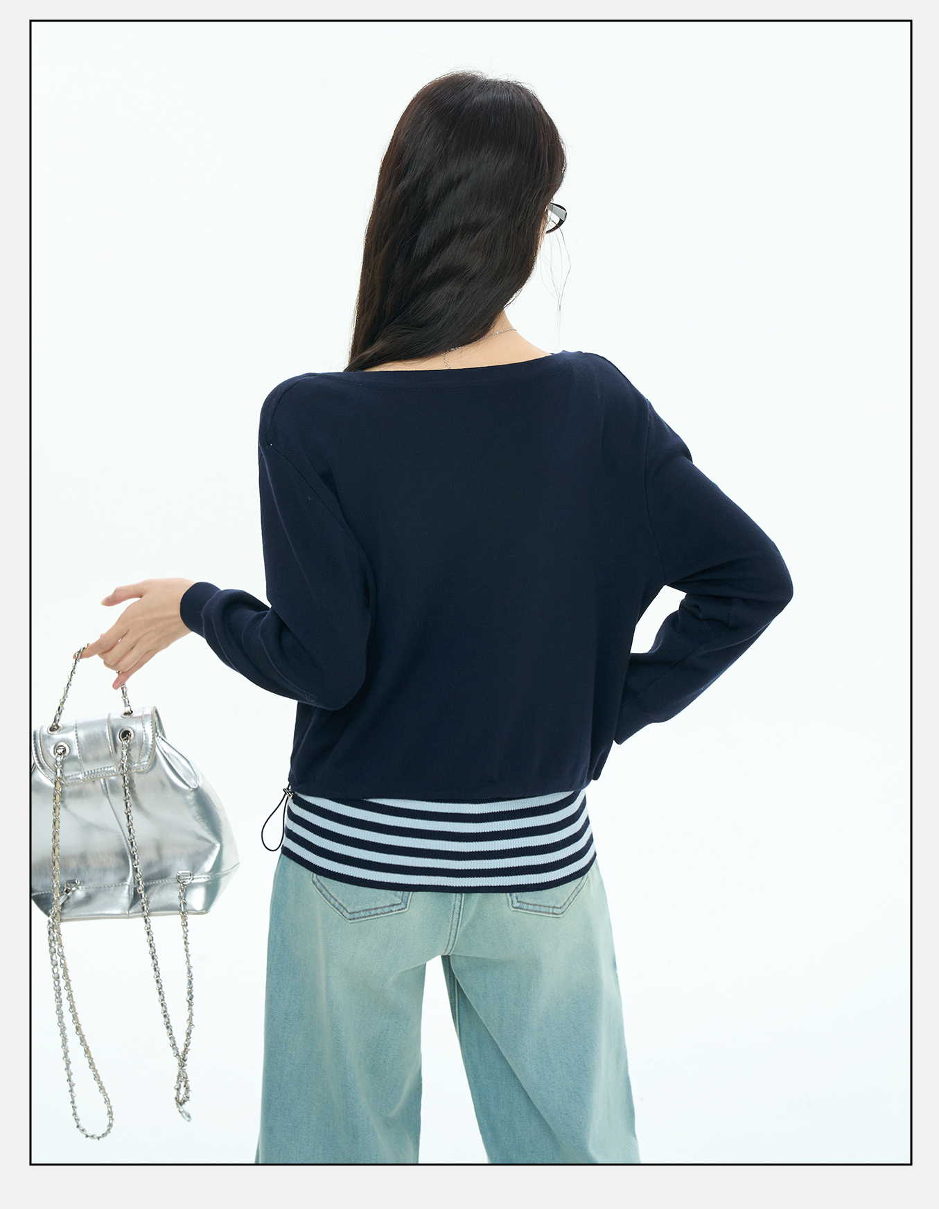 P&X设计师女装2025秋季T恤内搭背心两件套短款上衣825315163 蓝色