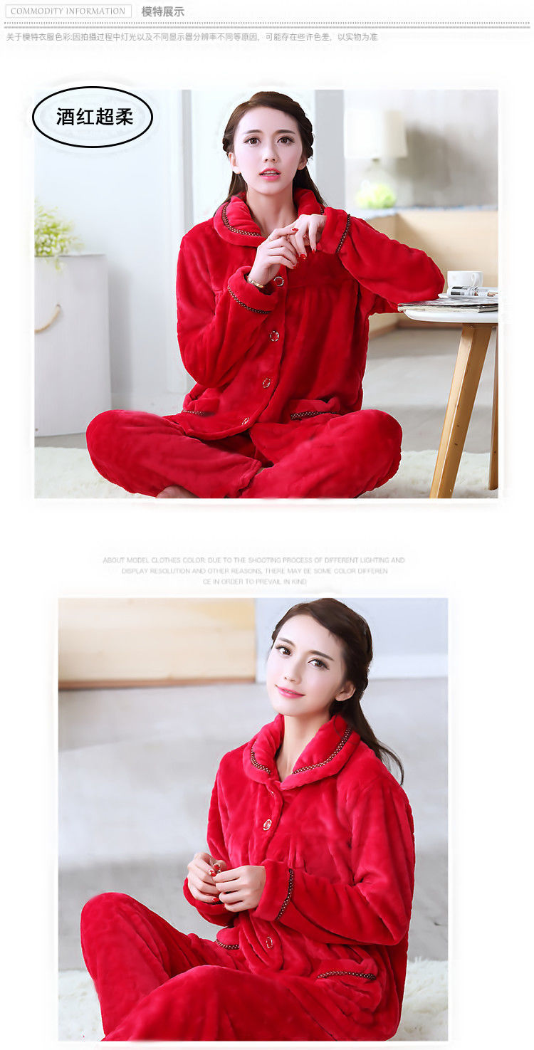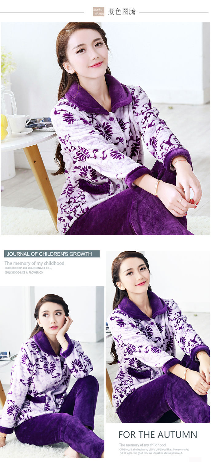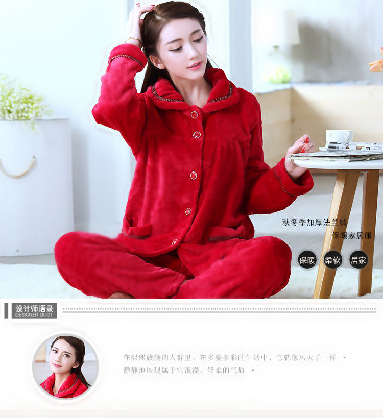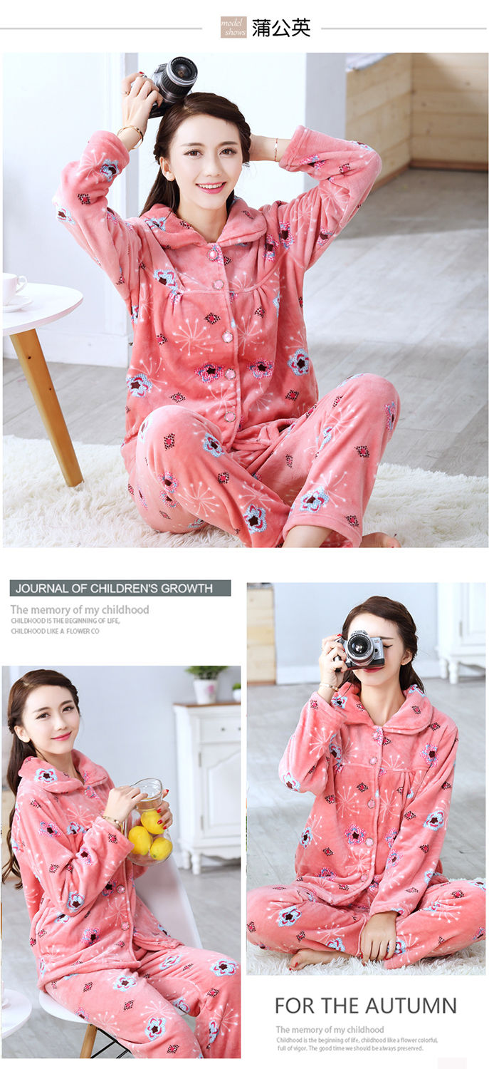 秋冬睡衣女珊瑚绒加厚女士法兰绒套装长袖大码中老年冬天家居服