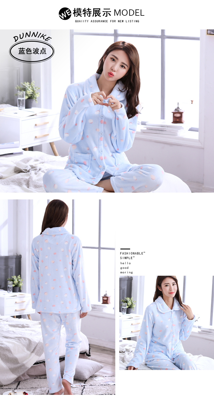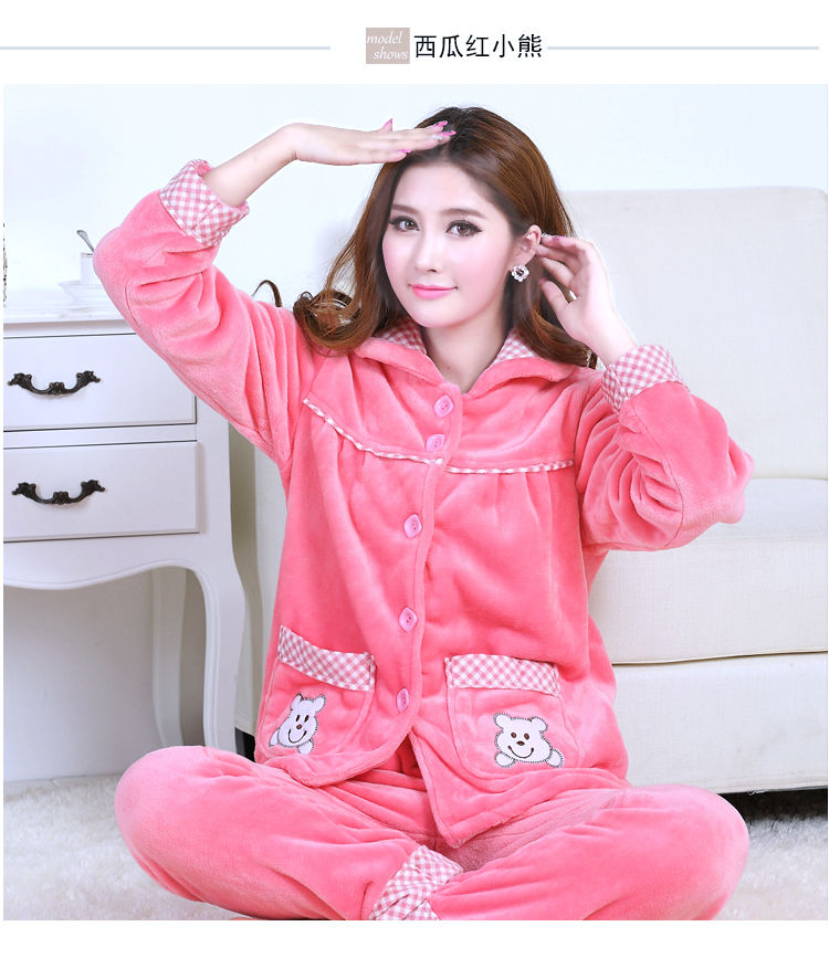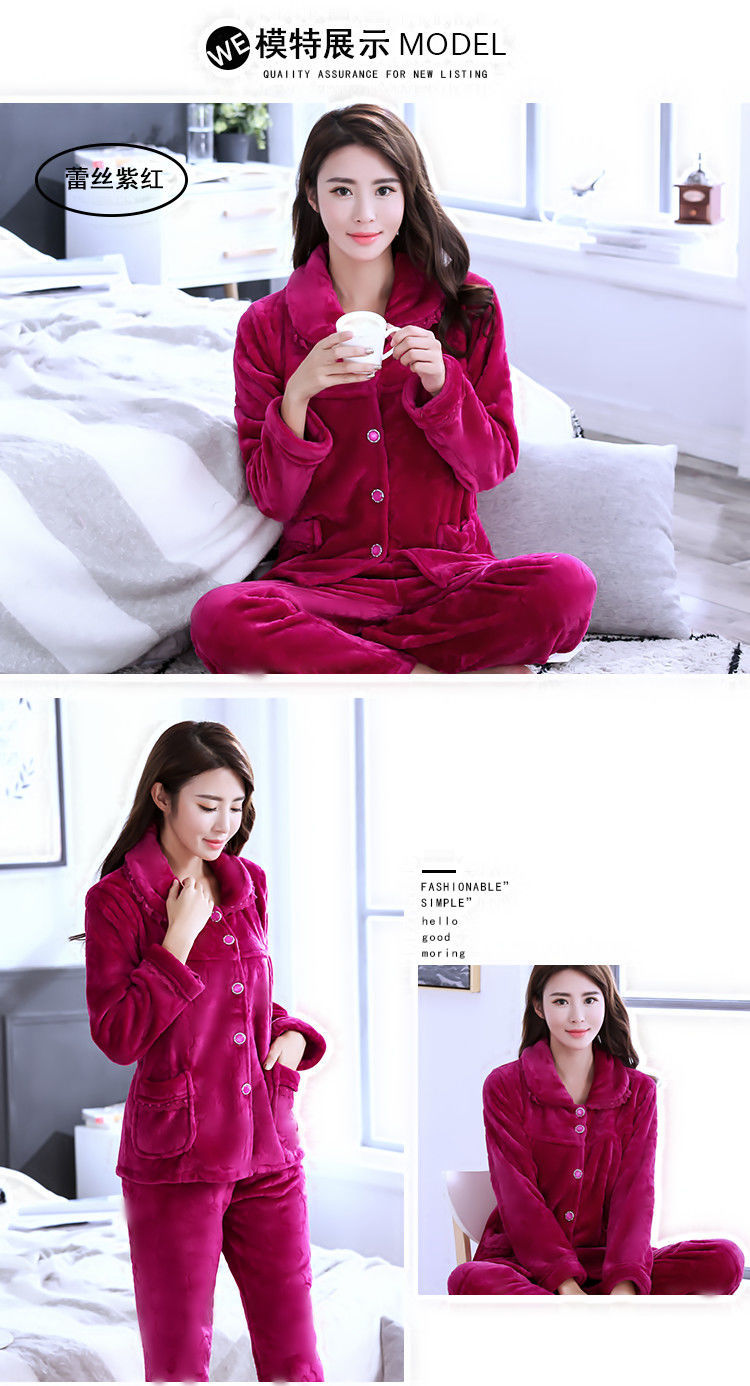 秋冬睡衣女珊瑚绒加厚女士法兰绒套装长袖大码中老年冬天家居服