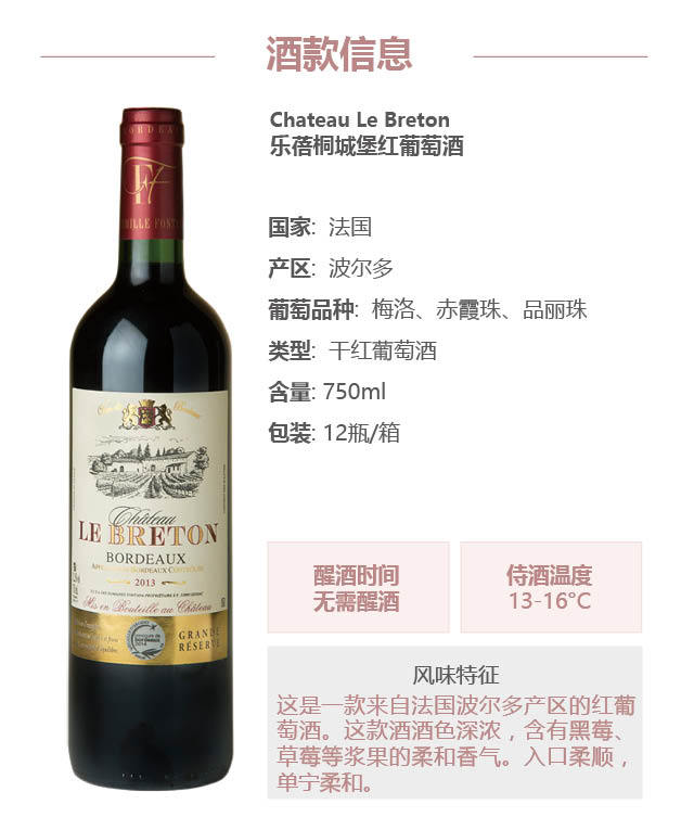 【双支特惠装】乐蓓桐城堡红葡萄酒 Chateau Le Breton, Bordeaux 2*750ml