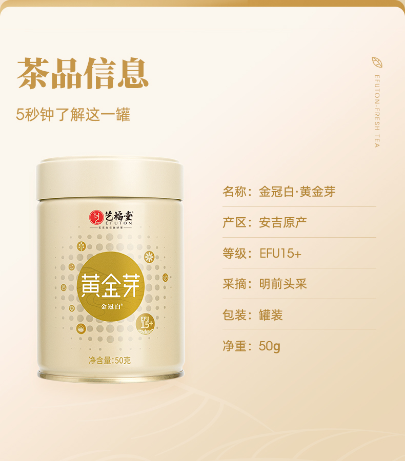 艺福堂 明前头采 金冠白®黄金芽 EFU15+50g/罐