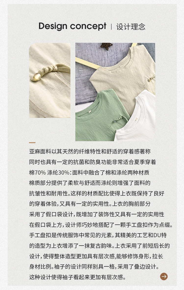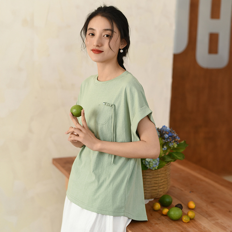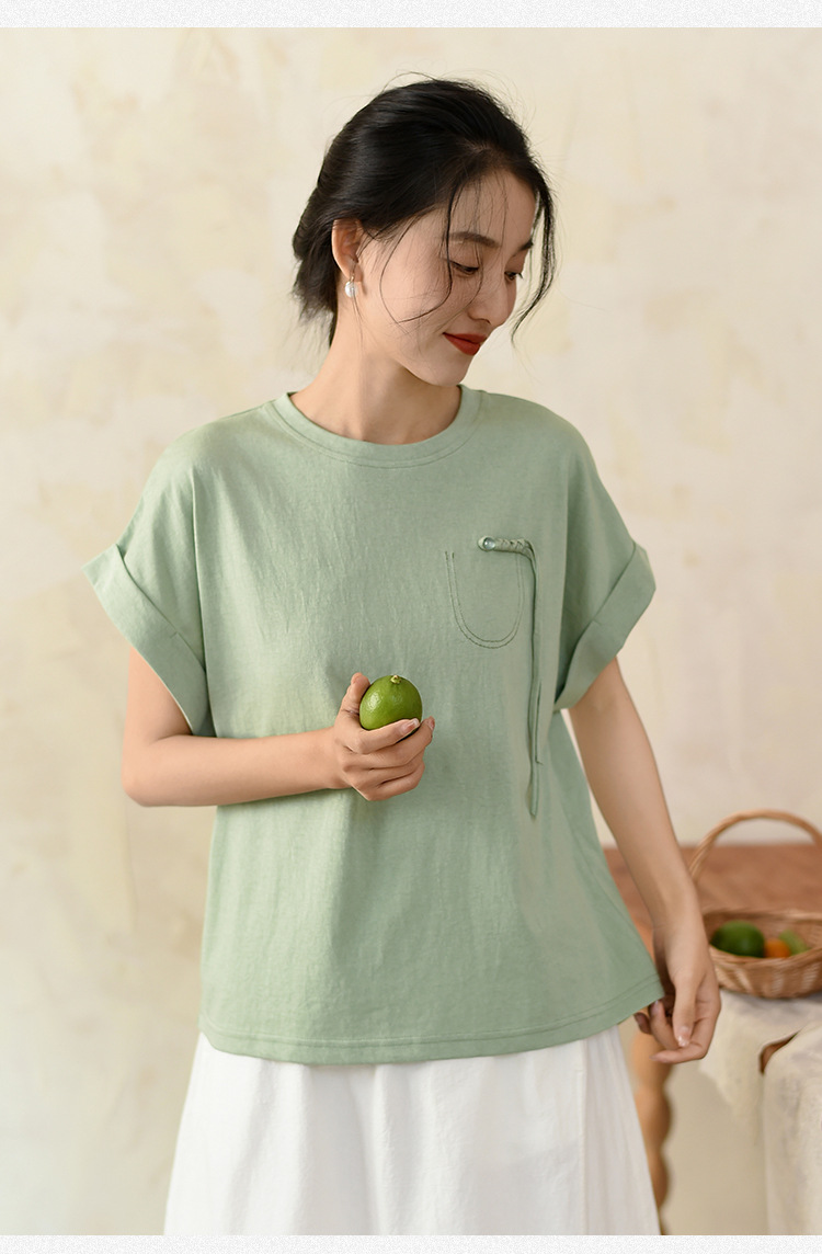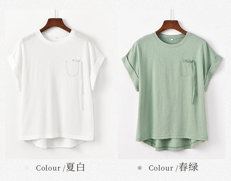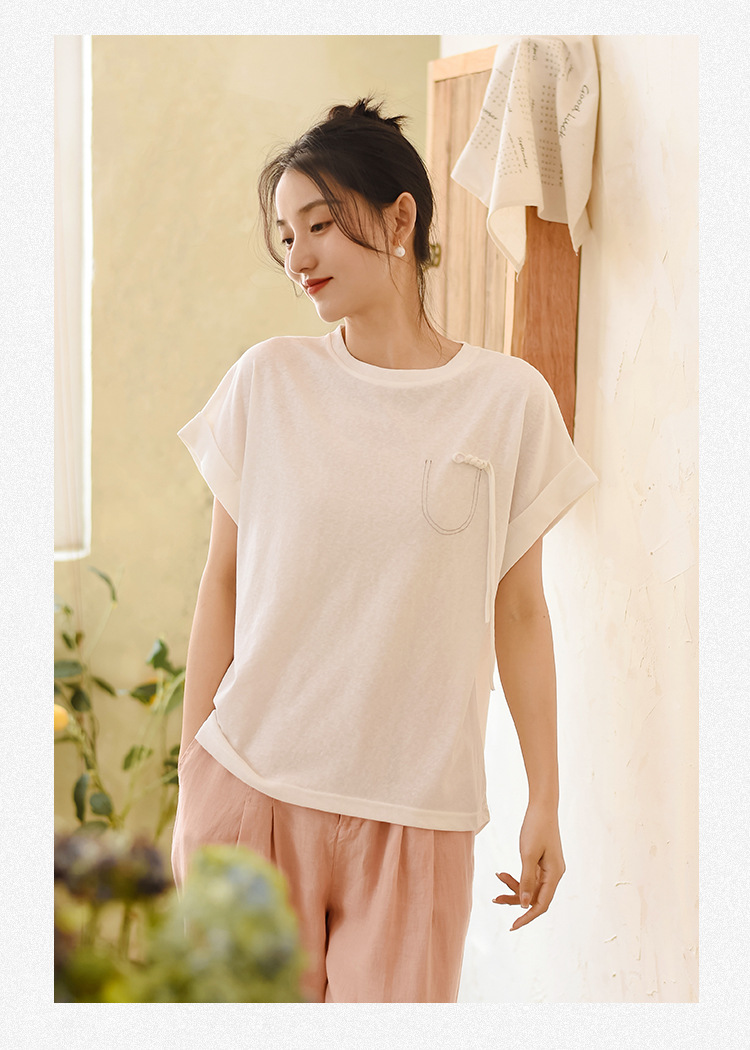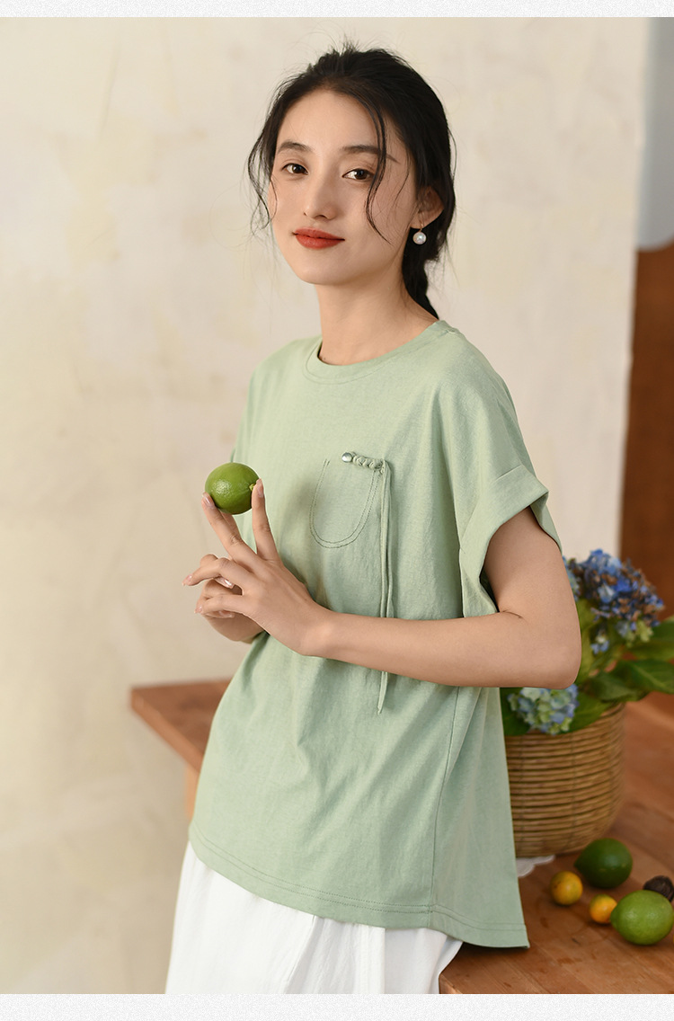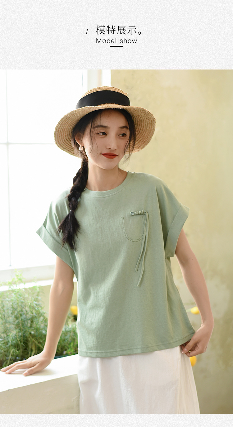 复古中国风圆领短袖t恤,设计感新中式针织上衣QM-6297
