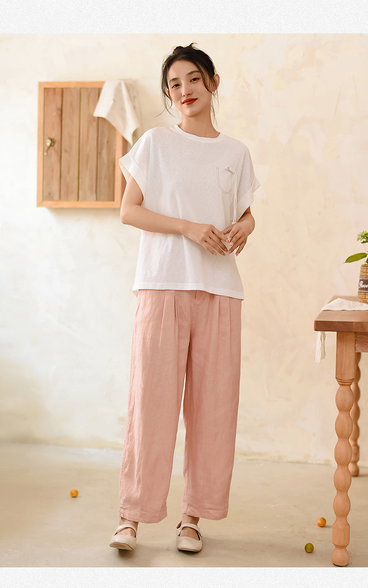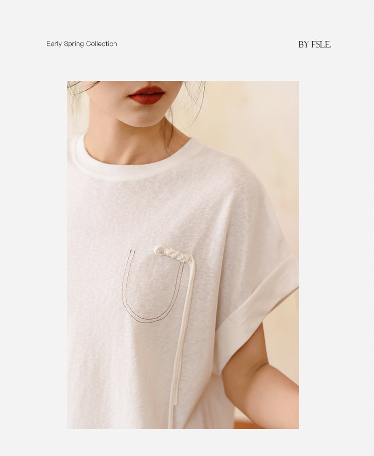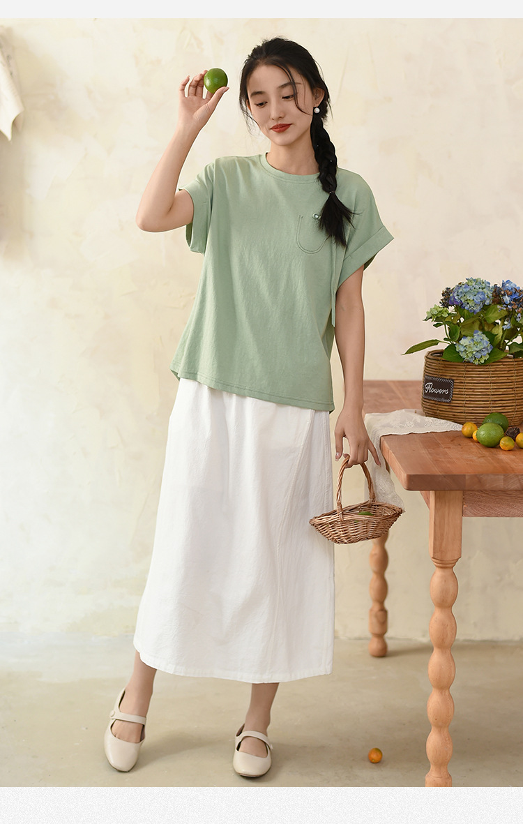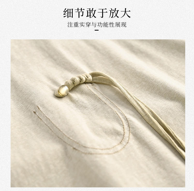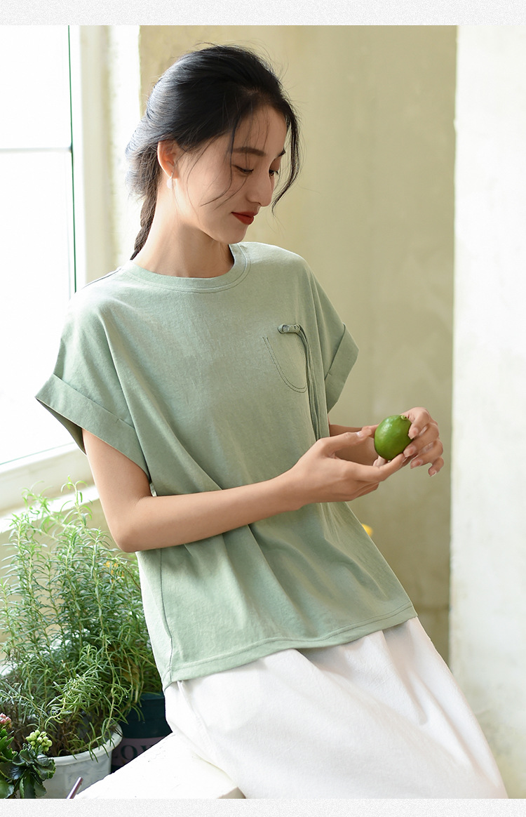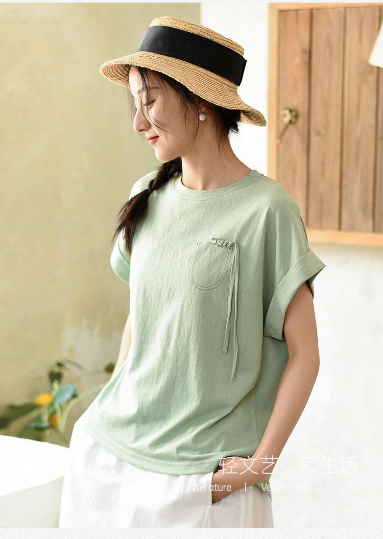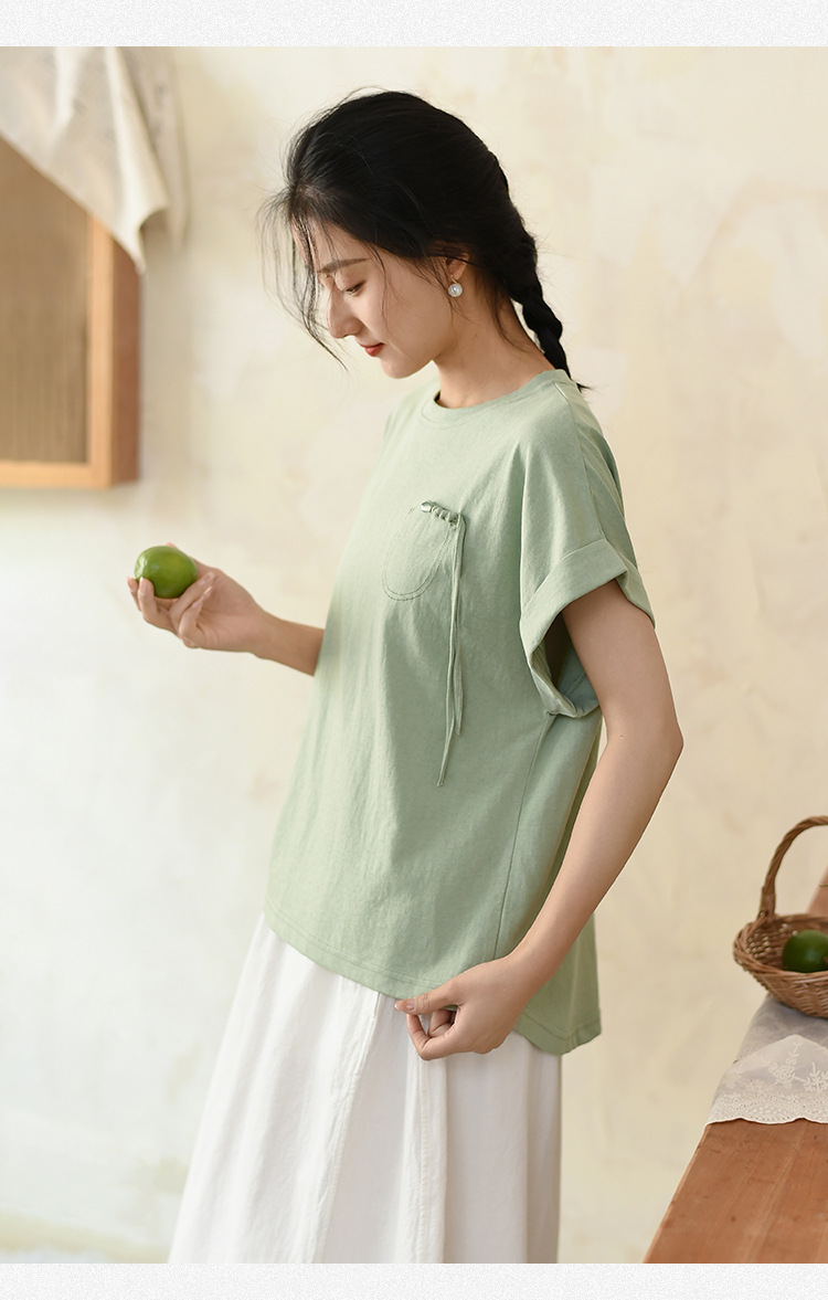 复古中国风圆领短袖t恤,设计感新中式针织上衣QM-6297