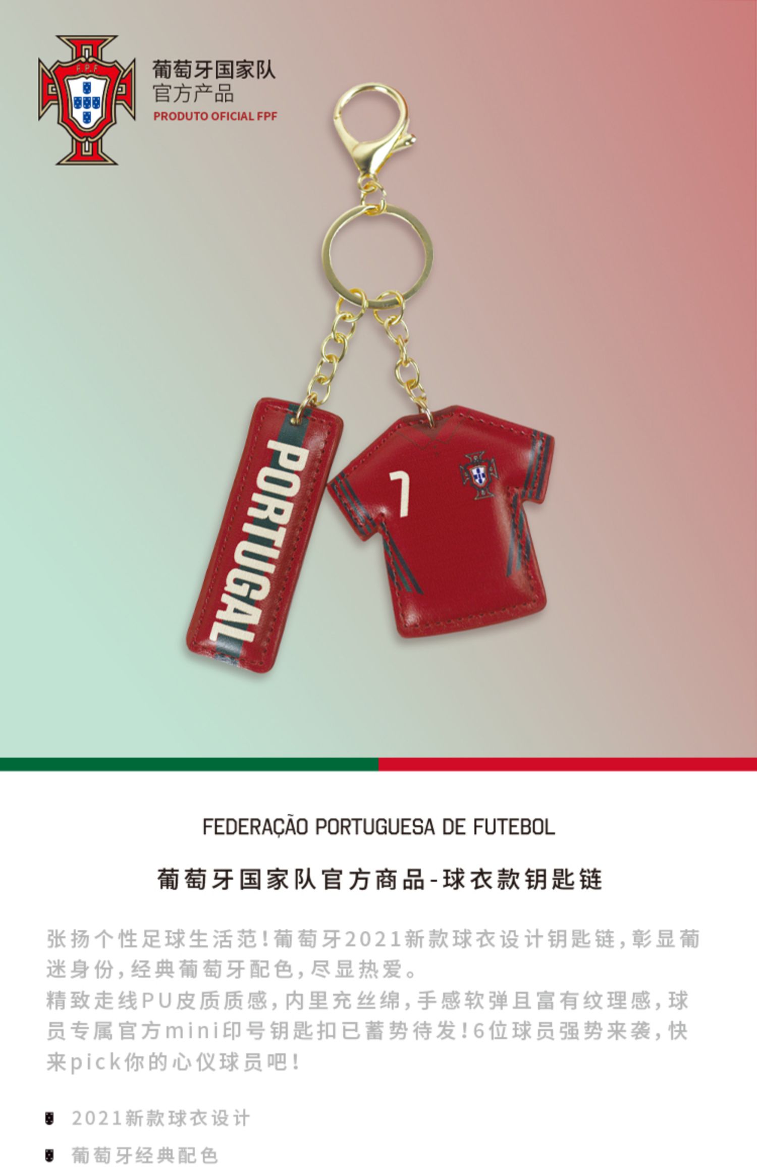 葡萄牙国 家队官方商品 | 欧洲杯新款C罗足球迷钥匙链皮钥匙扣挂件