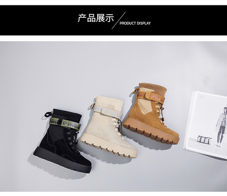 【雪地靴女】冬季户外平底中筒雪地靴保暖女靴厚底松糕底女棉靴一脚蹬鞋子