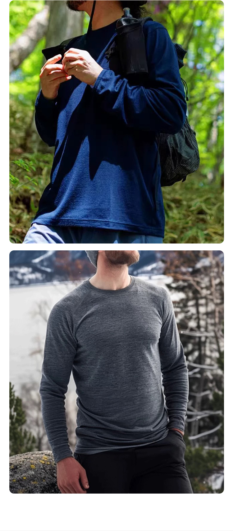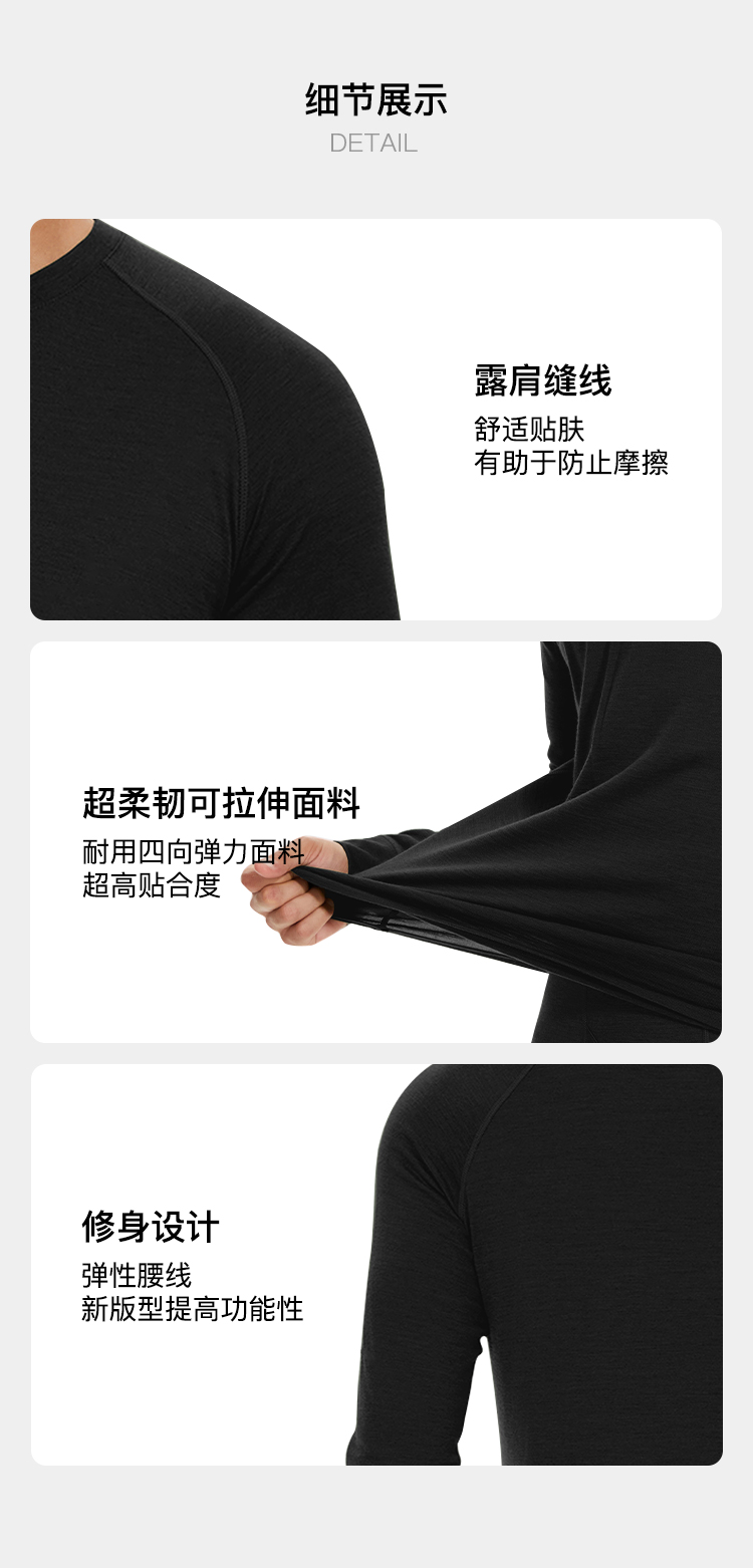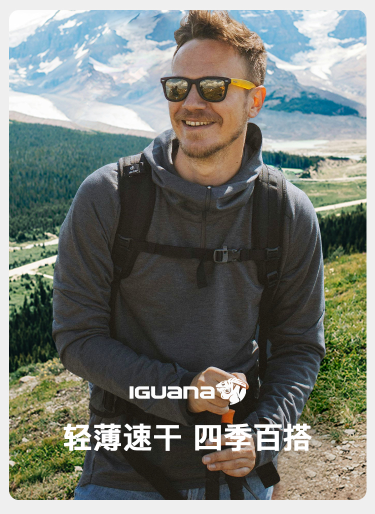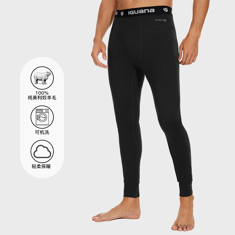 IGUANA可机洗新品男式美利奴羊毛长袖T恤速干户外徒步黑色