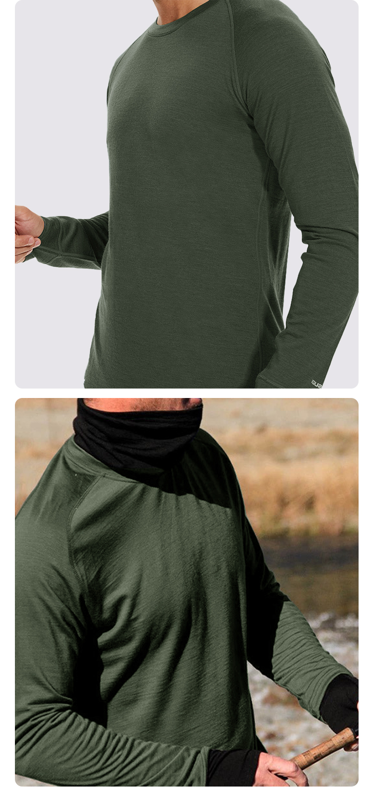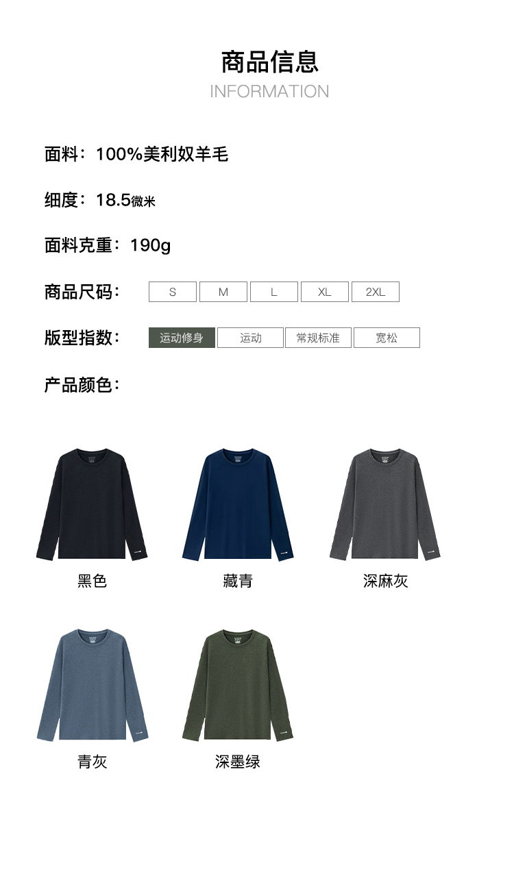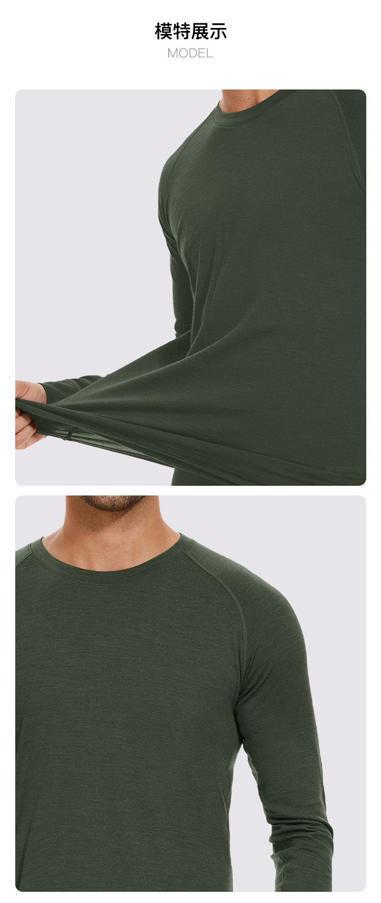 IGUANA可机洗新品男式美利奴羊毛长袖T恤速干户外徒步黑色