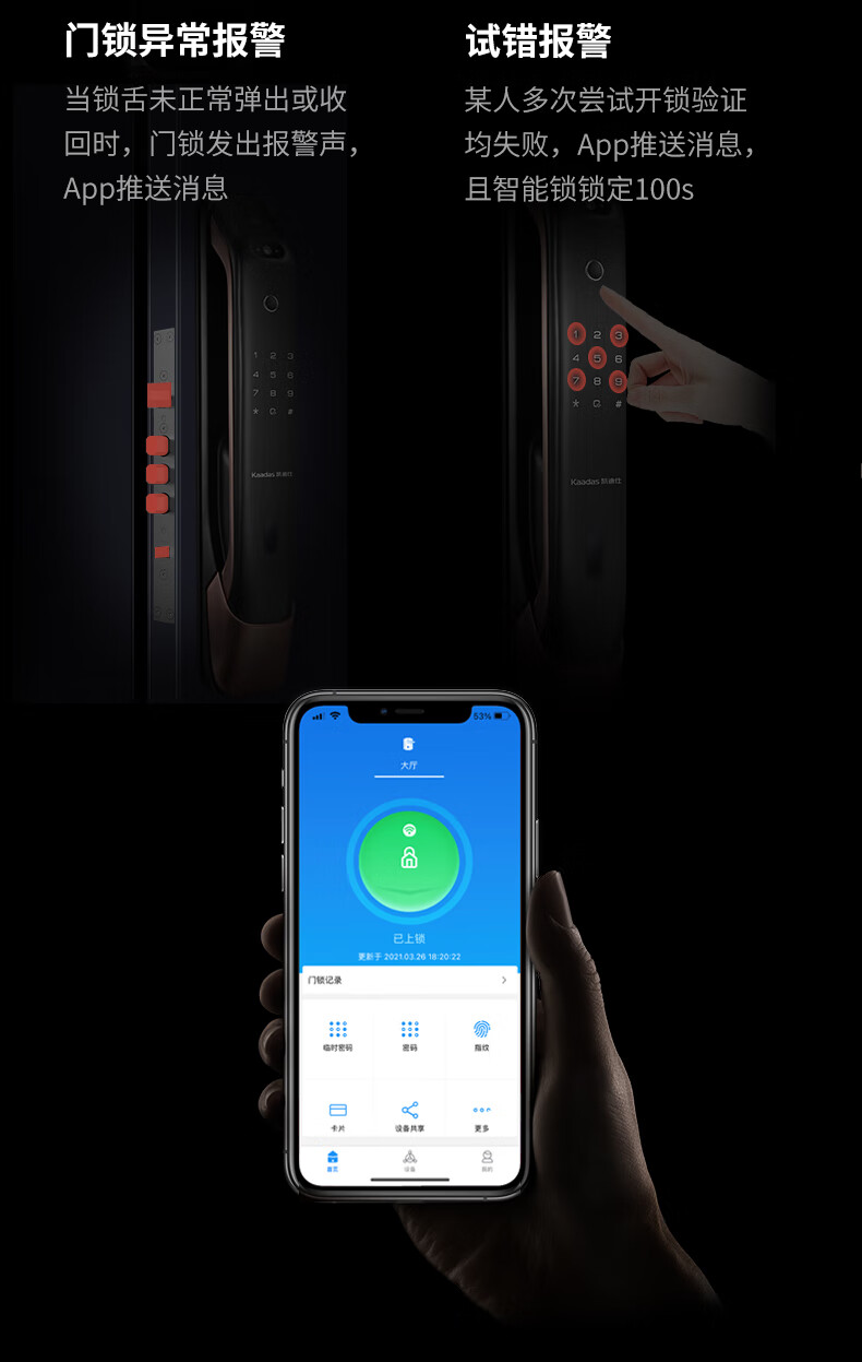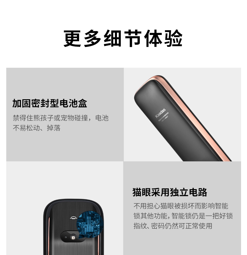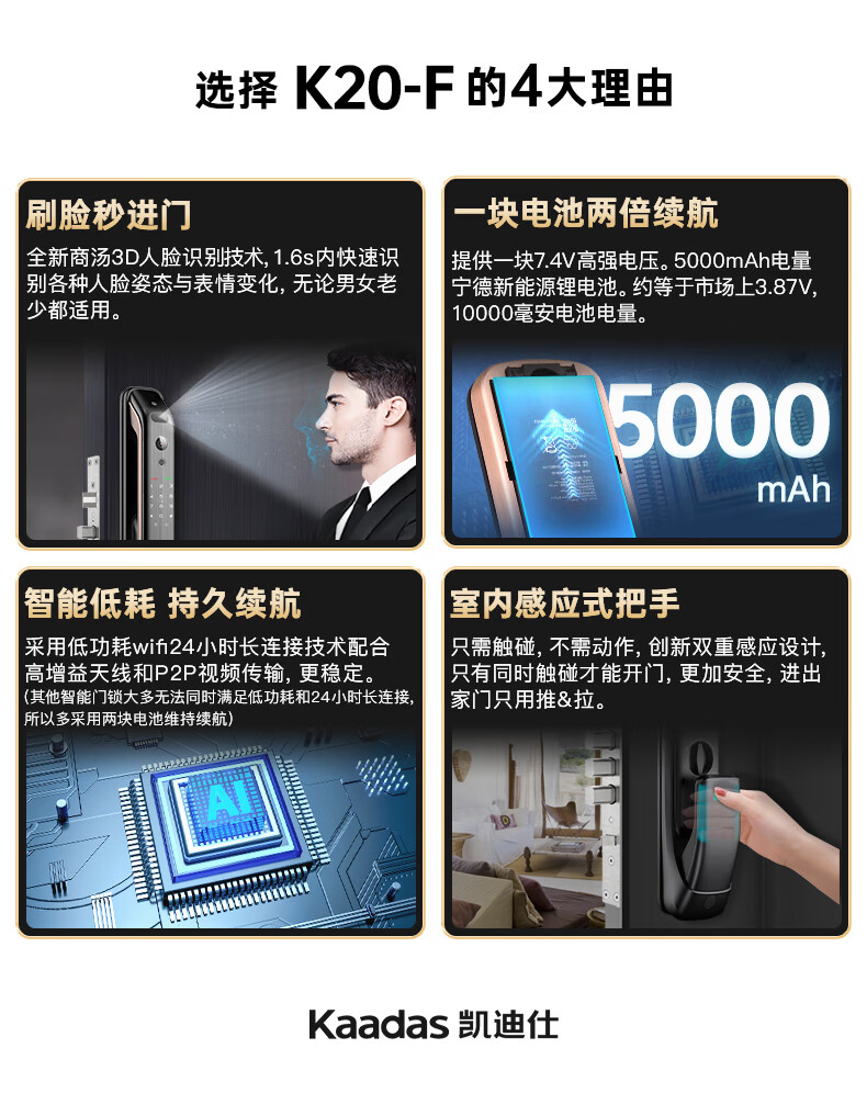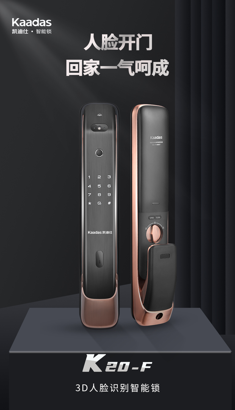 凯迪仕(kaadas)智能锁K20-F 指纹锁 3D人脸识别智能门锁 红古铜 星空灰 C级锁芯
