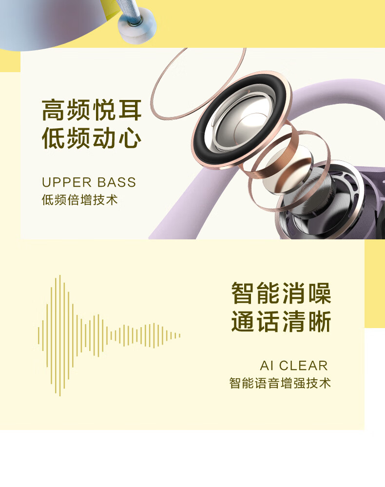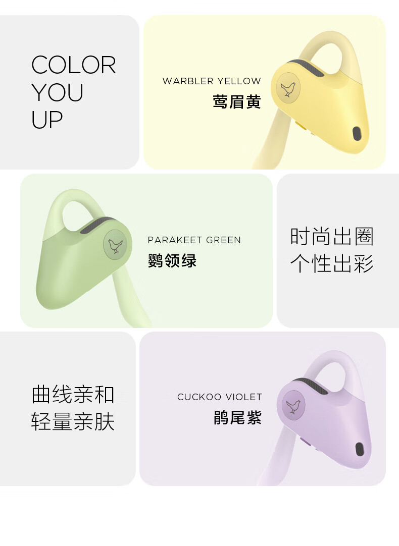 Libratone【新品】小鸟UP耳机开放式蓝牙耳机不入耳后挂式跑步运动耳挂式轻便骑行无线耳机适用于苹果华为 鹃尾紫 /鹦领绿/莺眉黄标配