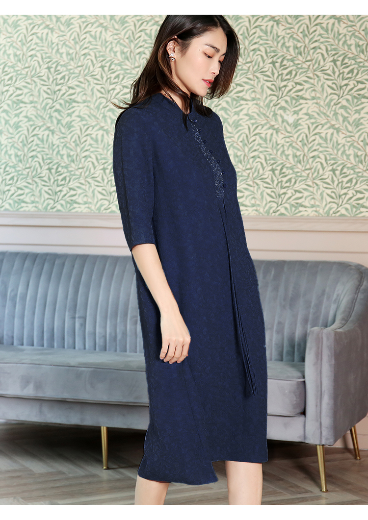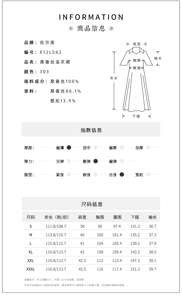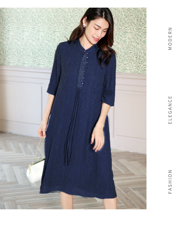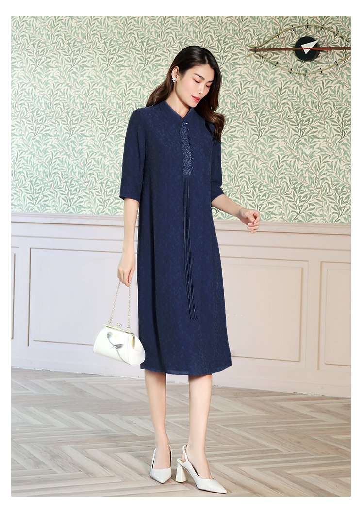 佐尔美夏季新款国风中袖复古优雅桑蚕丝真丝连衣裙E12LS62