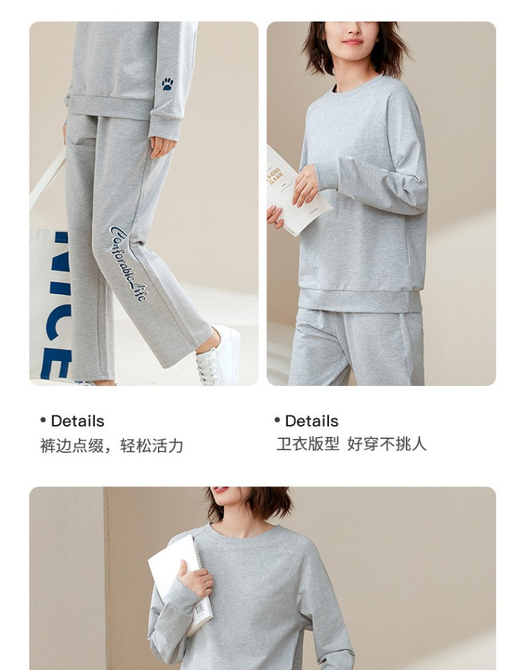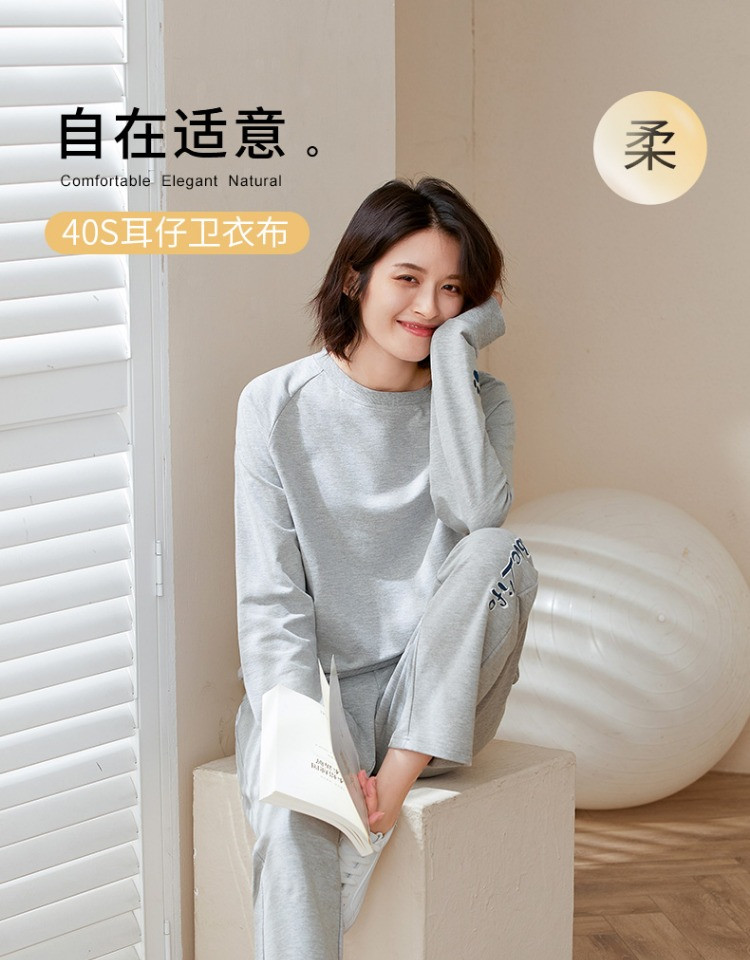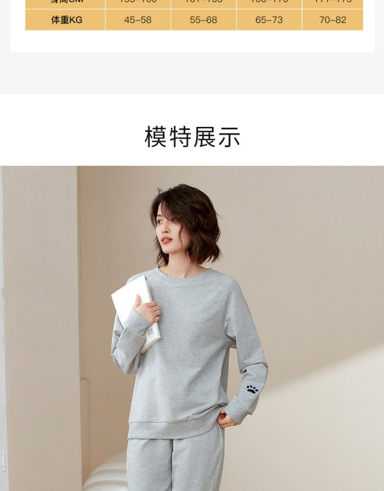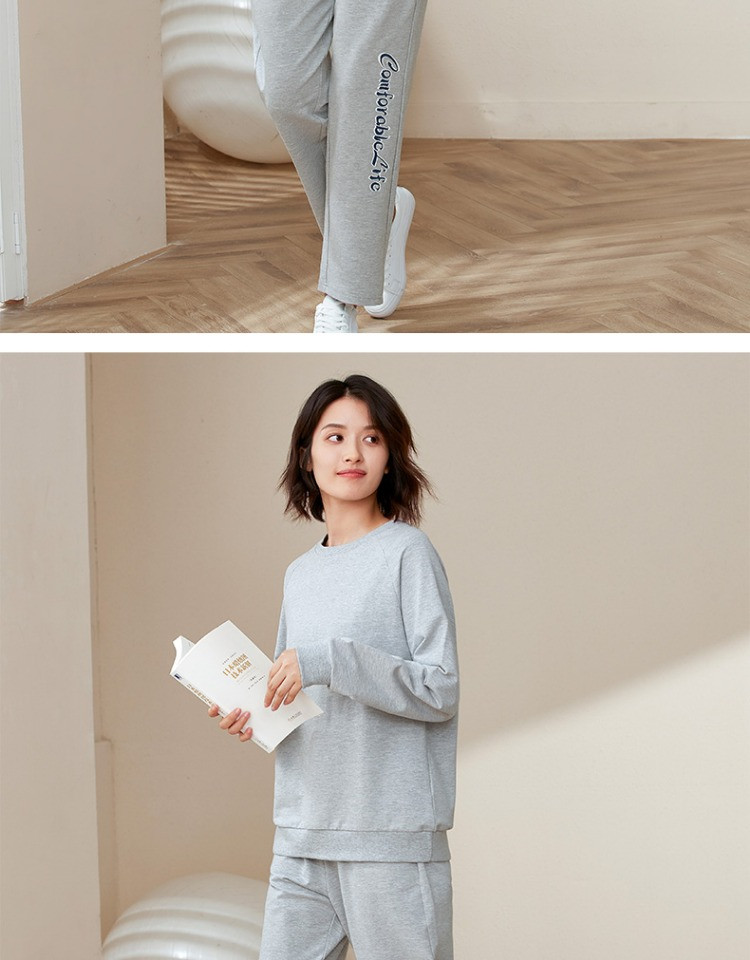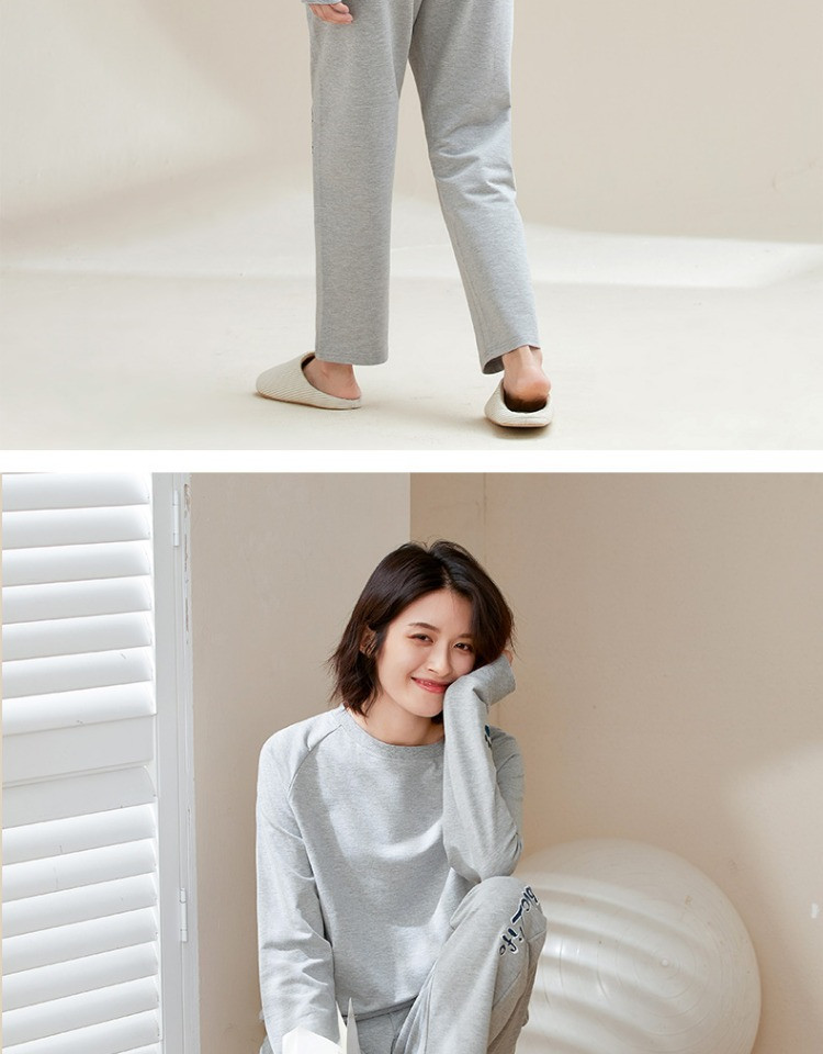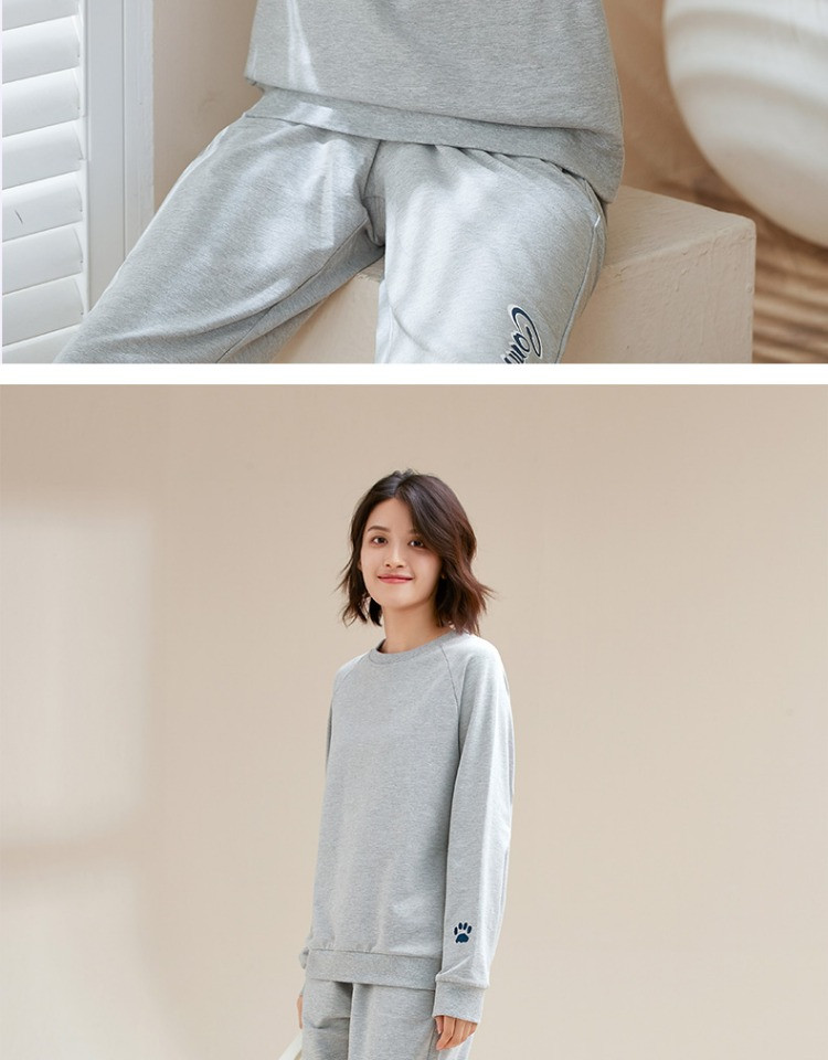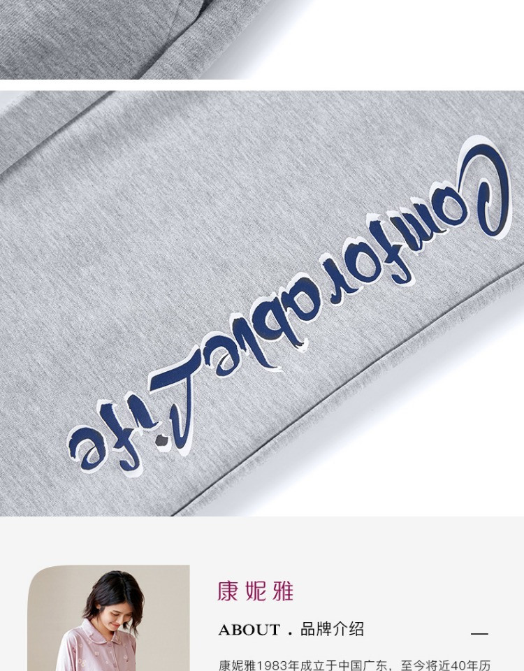 康妮雅睡衣家居服 女式长袖长裤套头套装*浅花灰