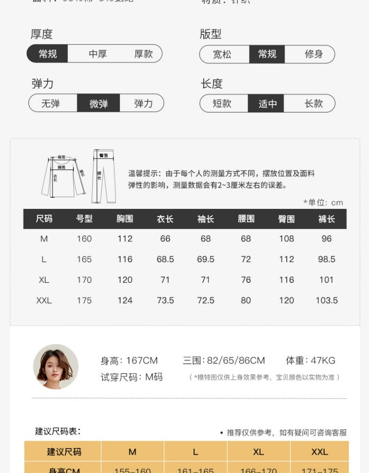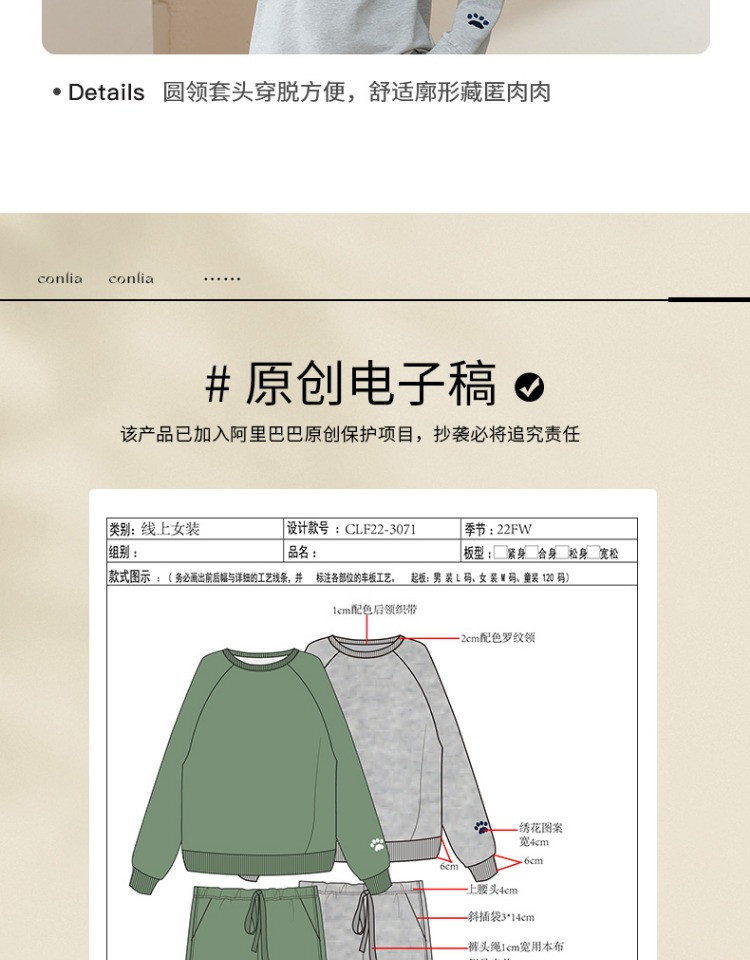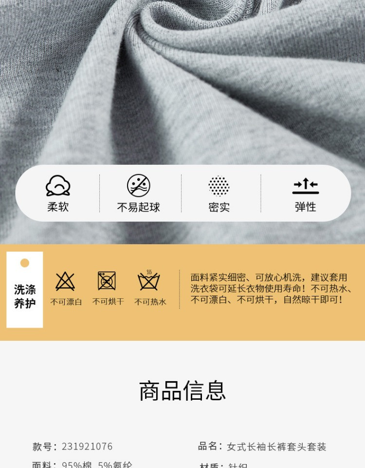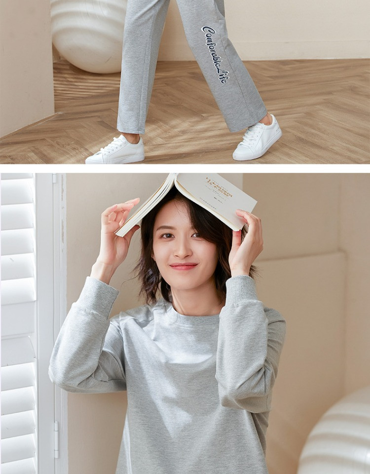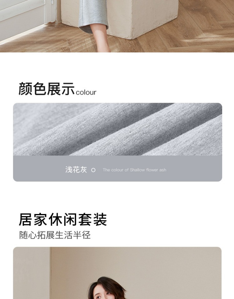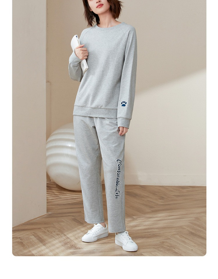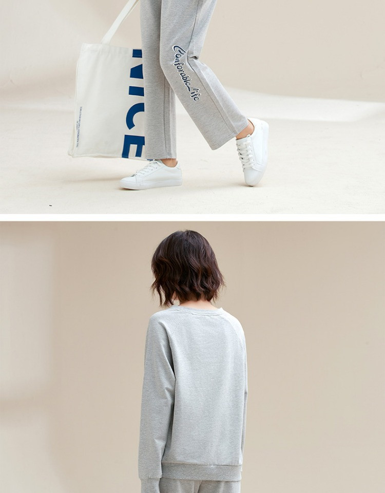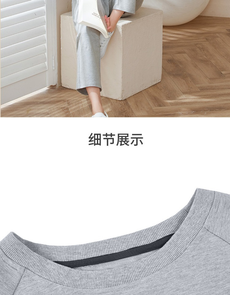 康妮雅睡衣家居服 女式长袖长裤套头套装*浅花灰