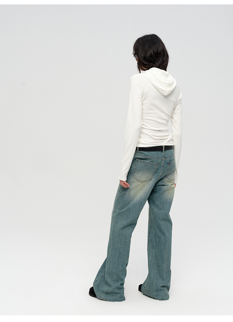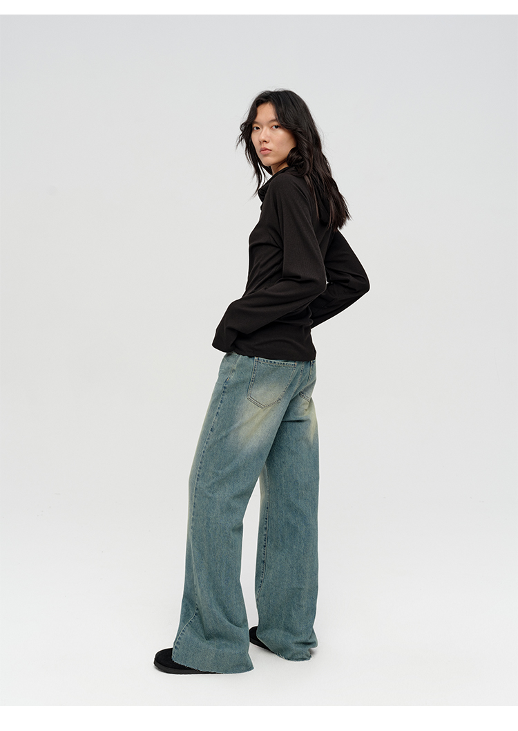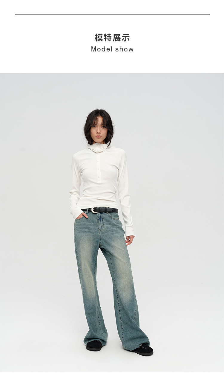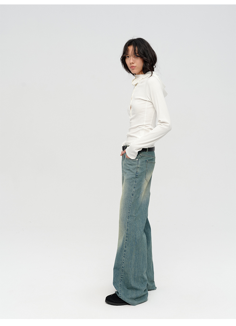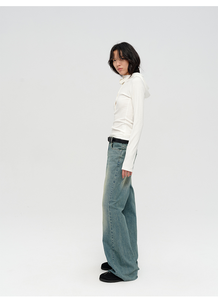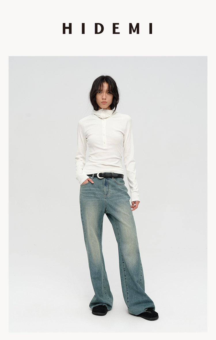 HIDEMI “天王裤”柔软水洗牛仔棉中低腰阔腿牛仔裤 白色/黑色/芝麻色