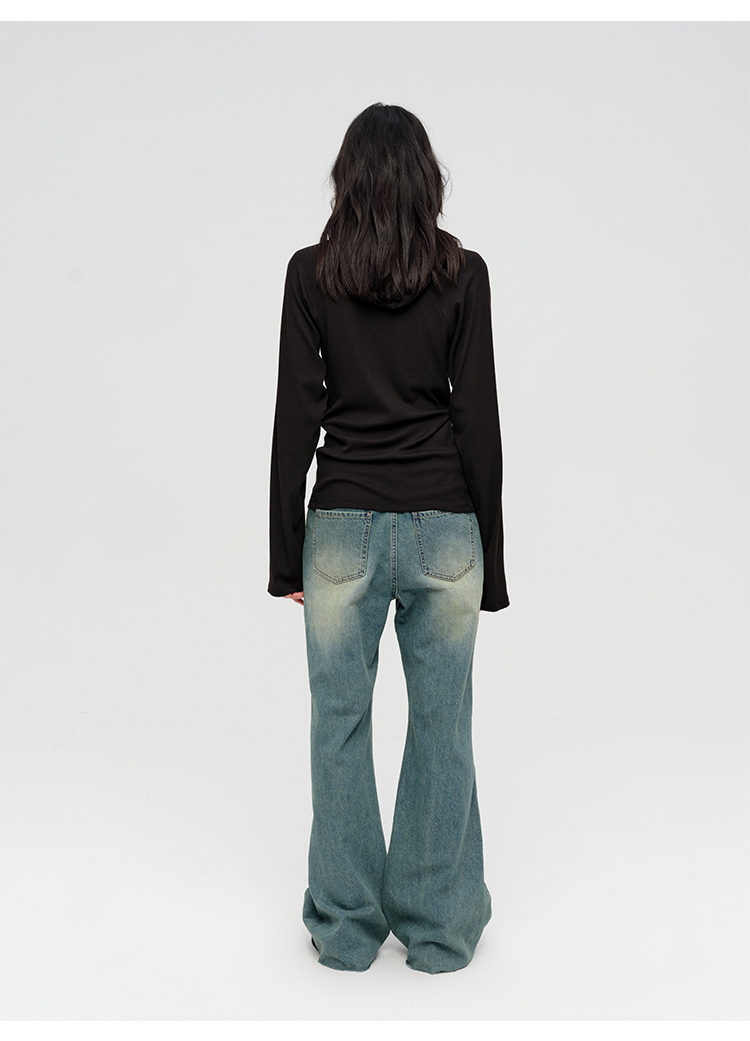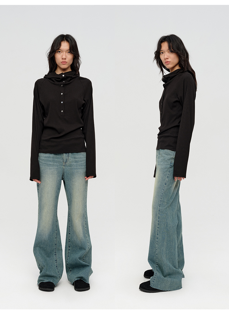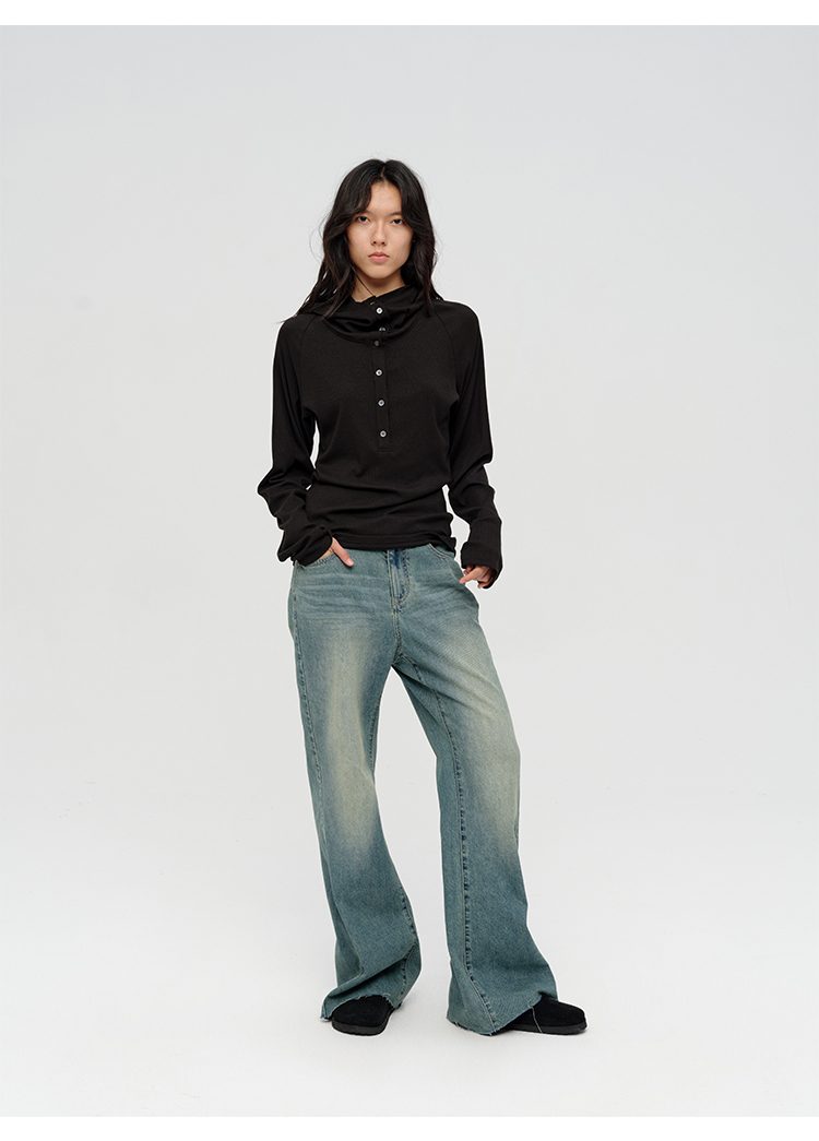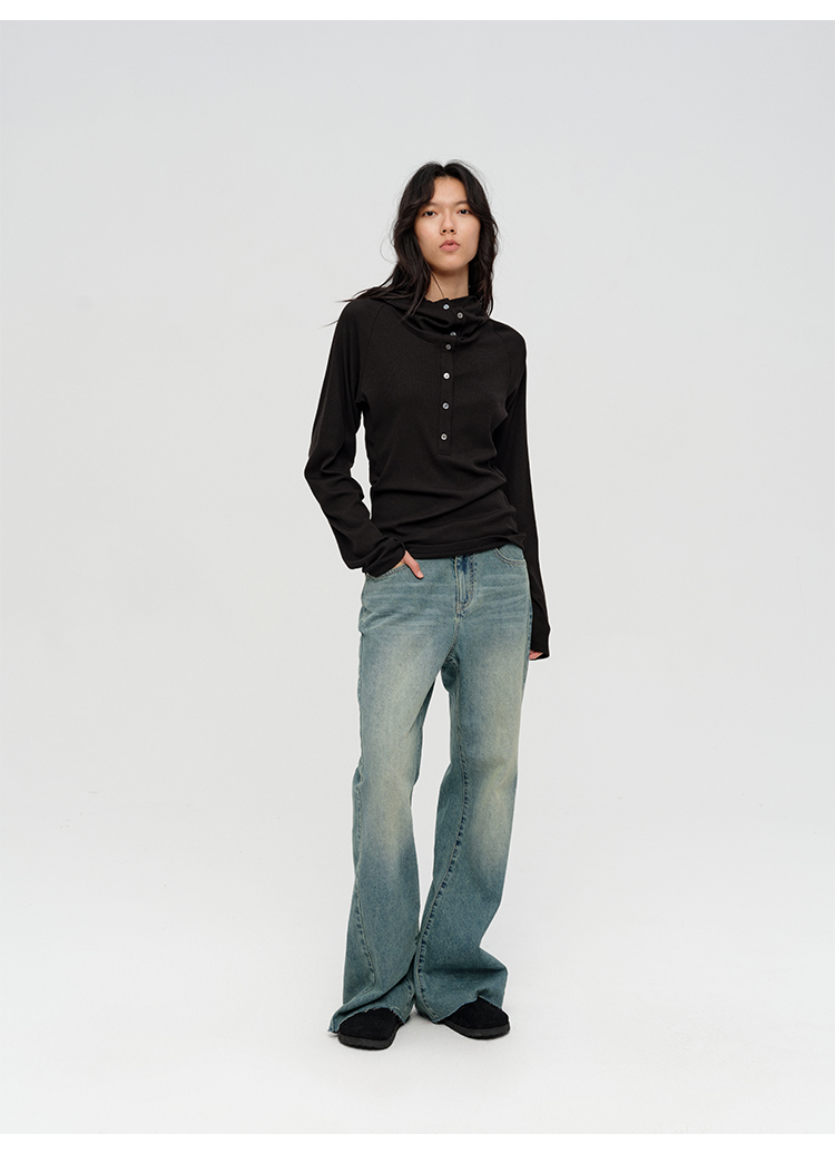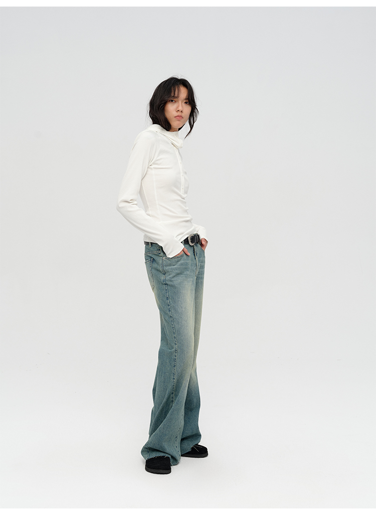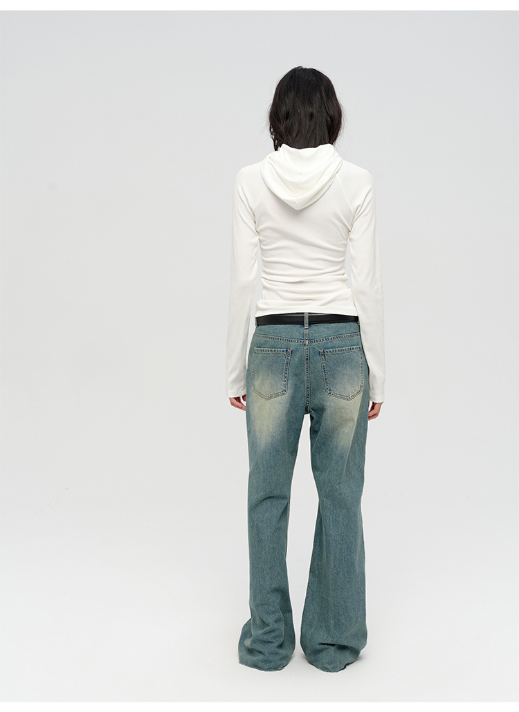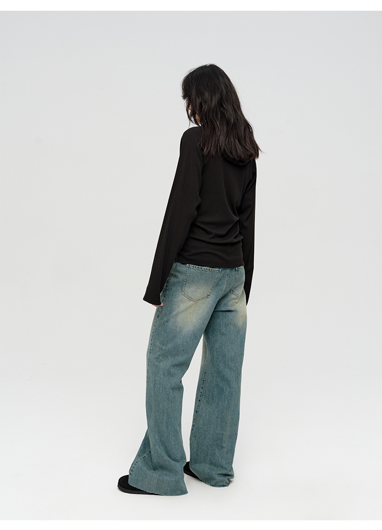 HIDEMI “天王裤”柔软水洗牛仔棉中低腰阔腿牛仔裤 白色/黑色/芝麻色