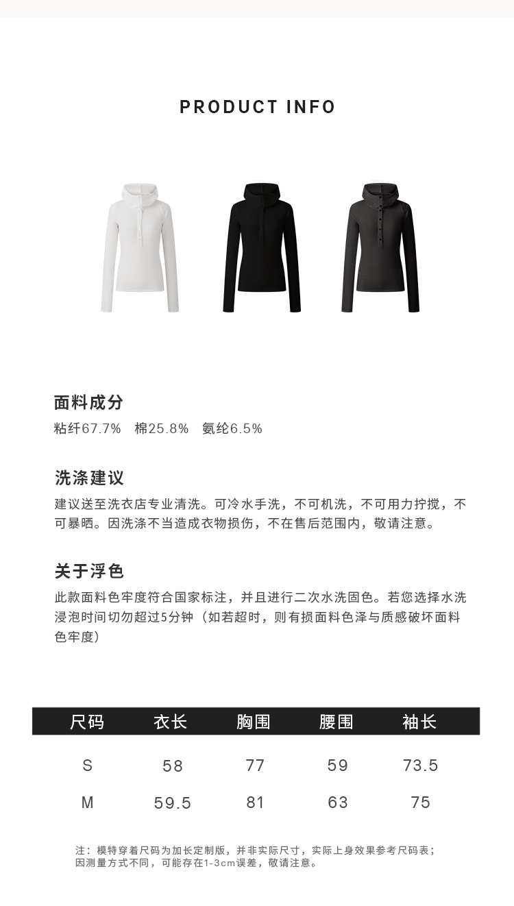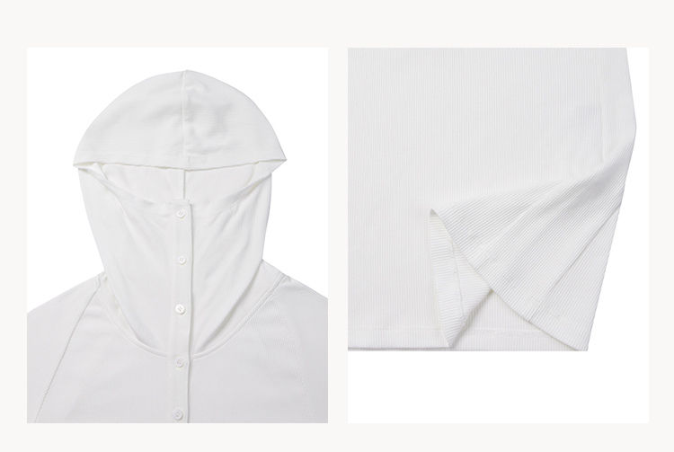 HIDEMI 循环可再生高弹力显瘦坑条连帽T恤长袖上衣帽衫 黑色/艺术灰/自然白