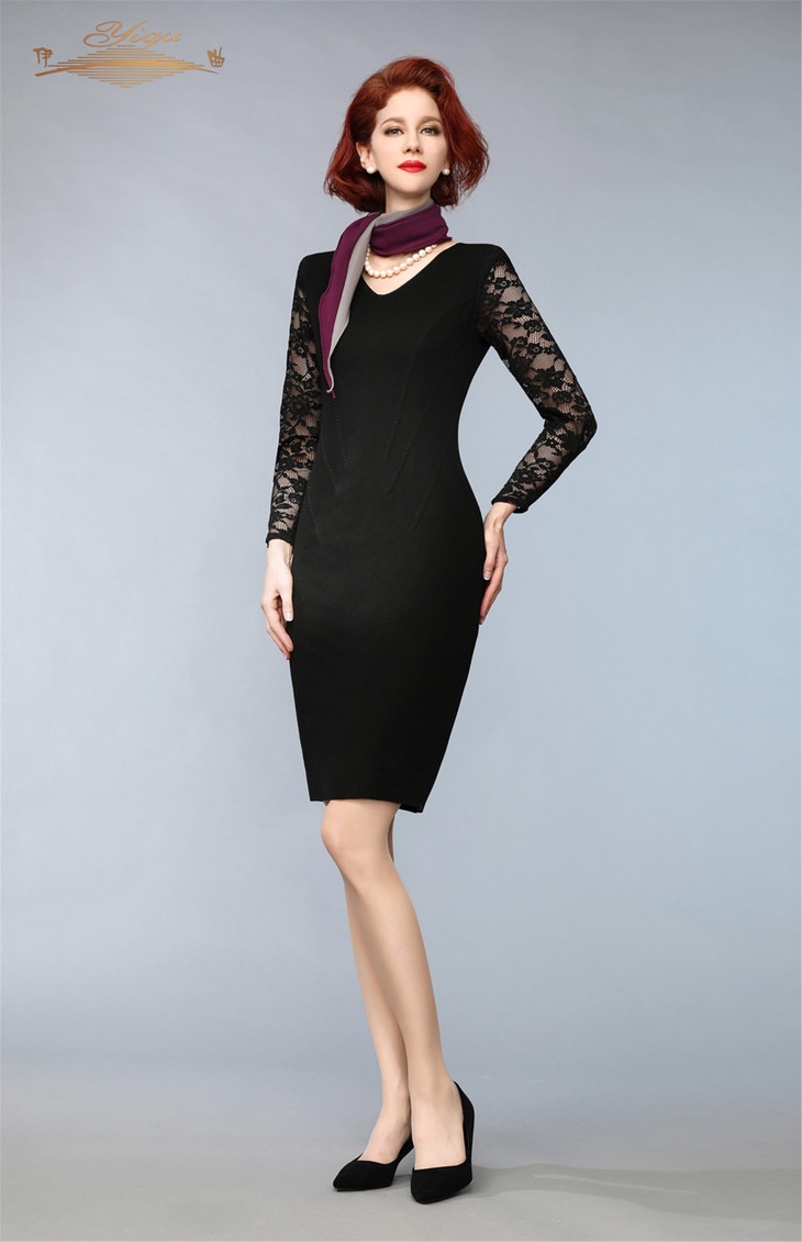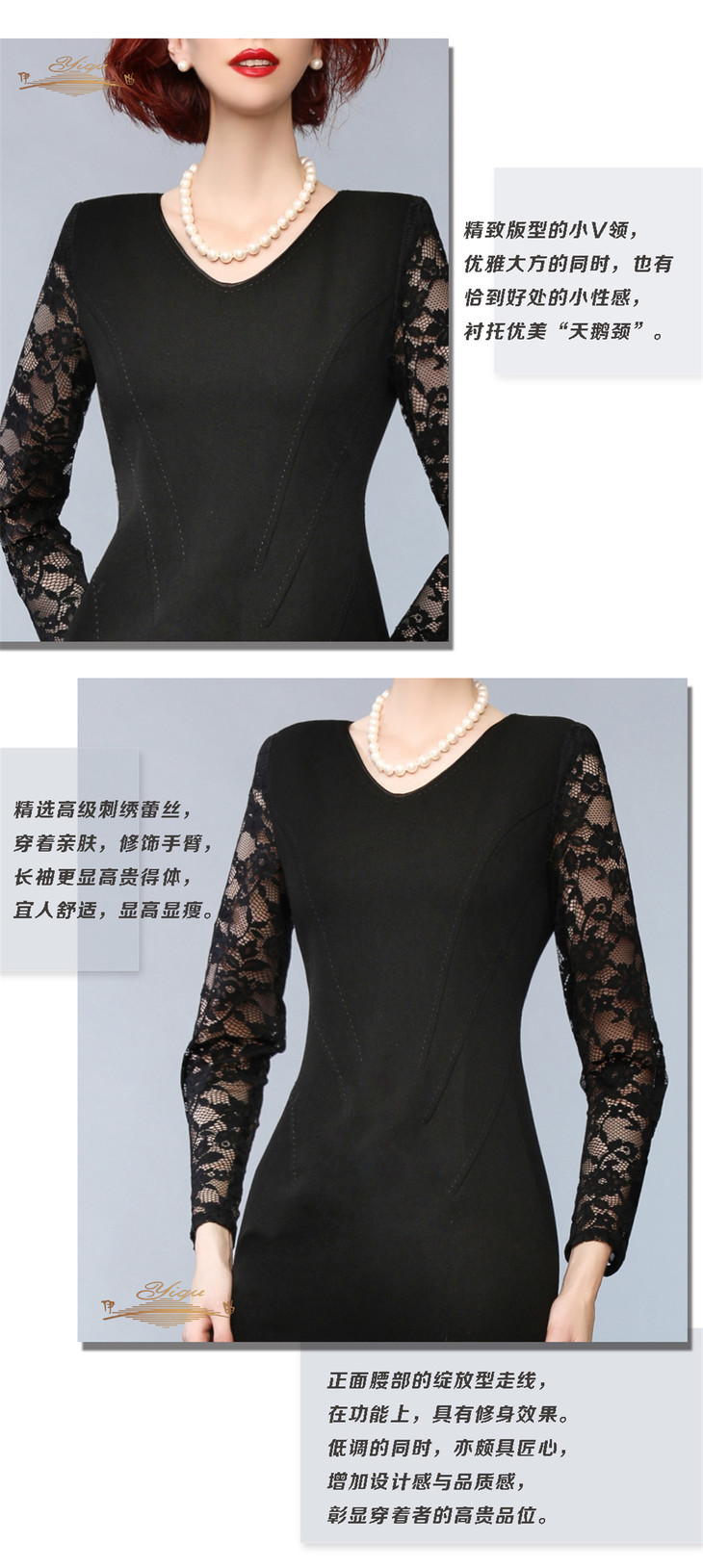 【特惠】YIQU丨“典雅唯美”刺绣蕾丝连身裙(高贵黑)PT