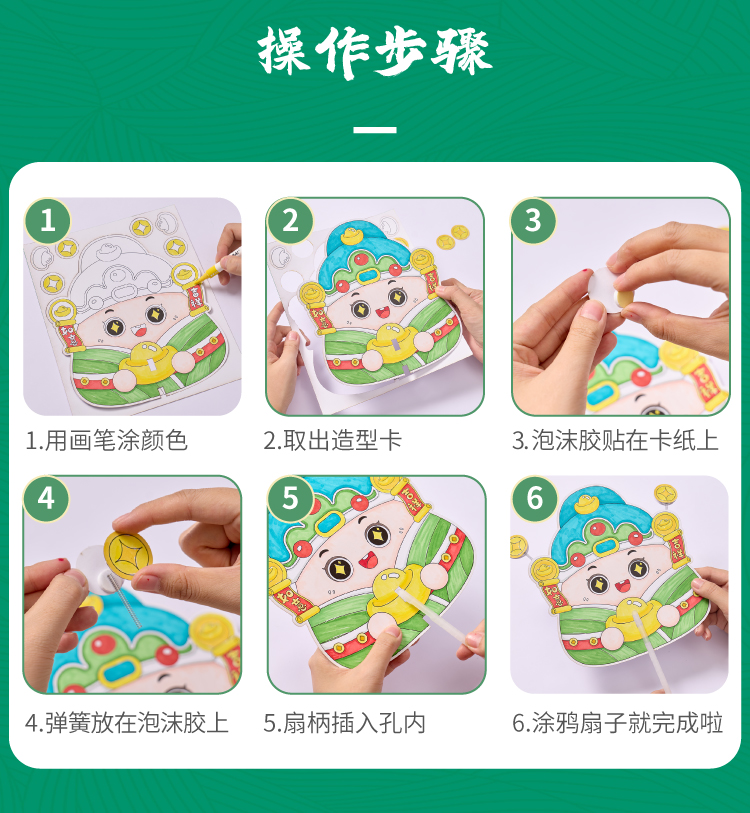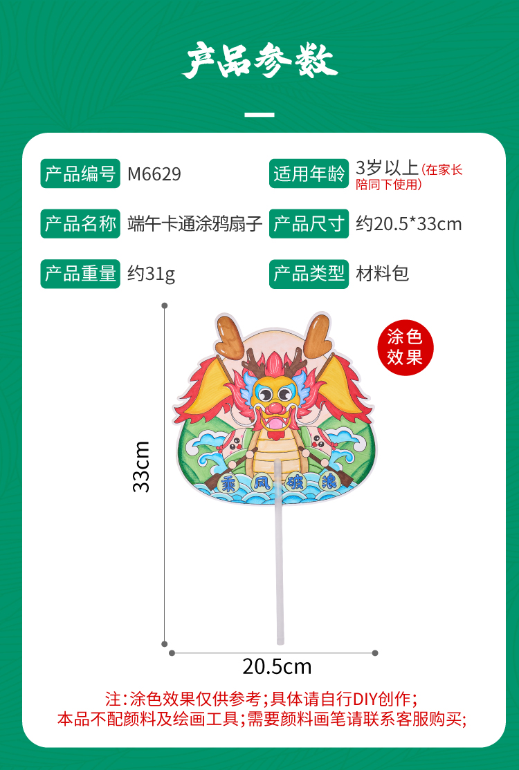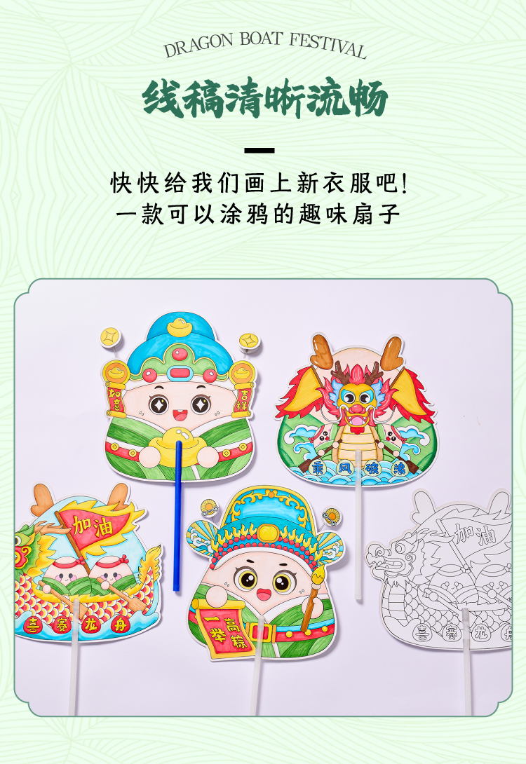 2025端午节礼物卡通涂鸦扇子手工diy创意美术儿童自制作材料包幼儿园