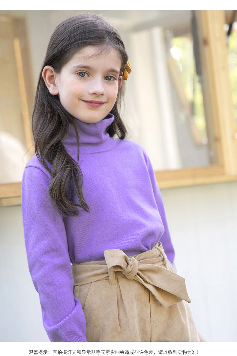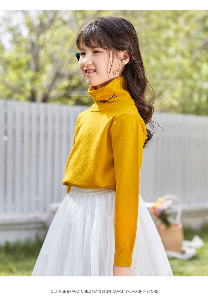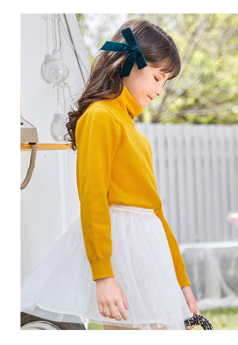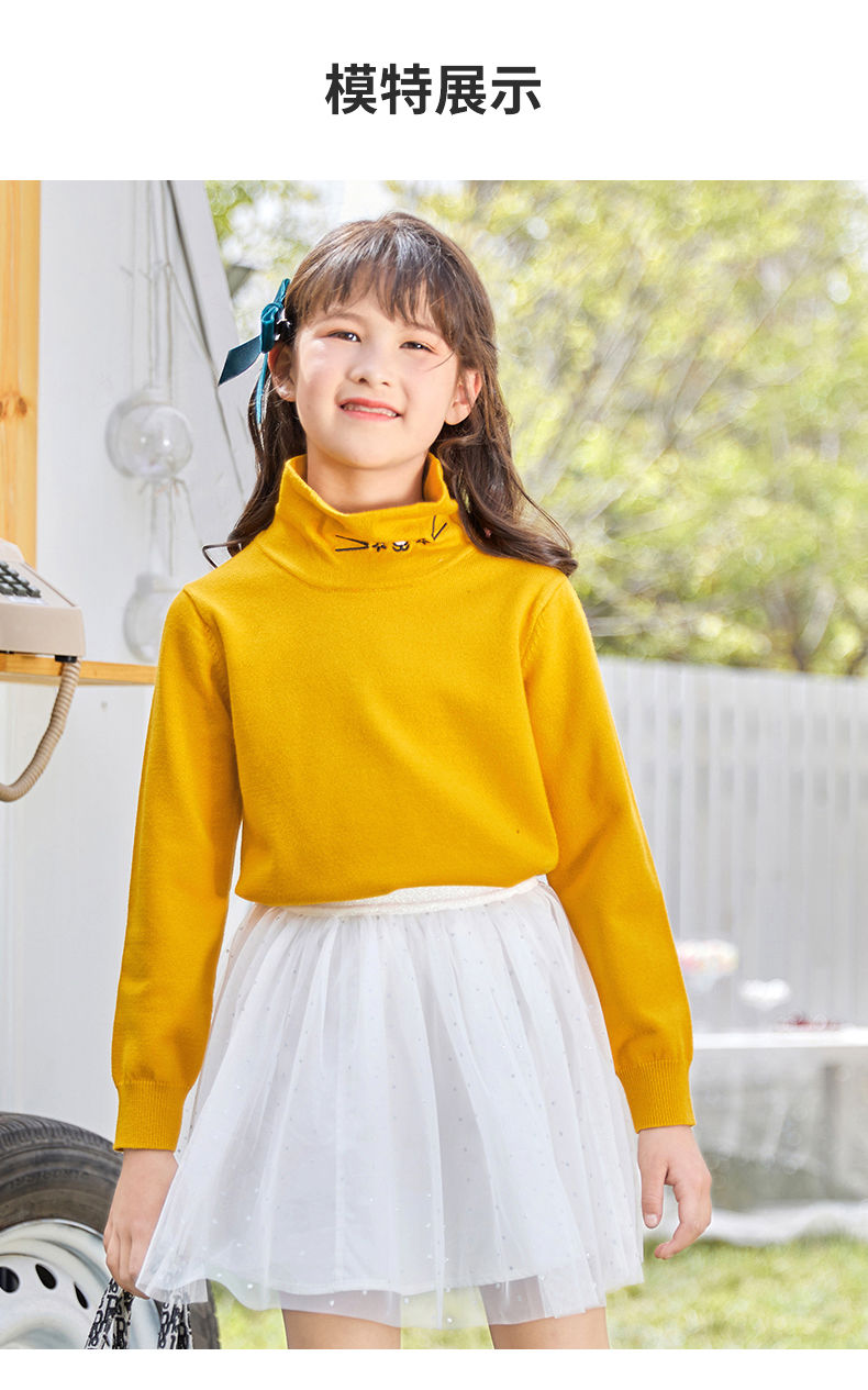 迪士尼女童高领打底衫秋冬2024新款儿童毛衣内搭洋气女孩秋季上衣