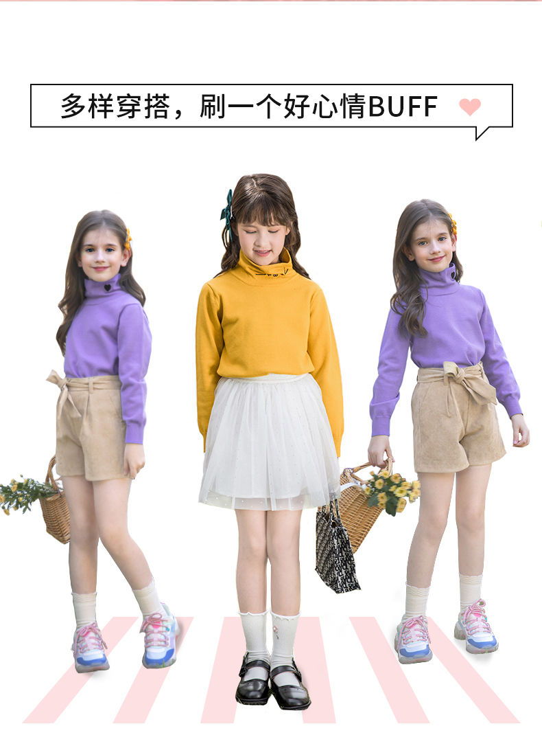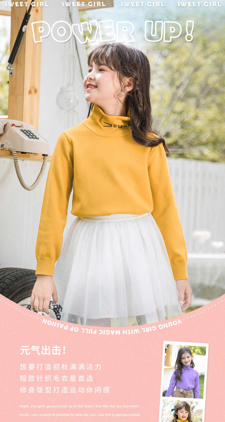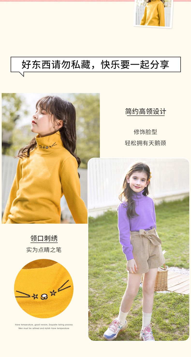 迪士尼女童高领打底衫秋冬2024新款儿童毛衣内搭洋气女孩秋季上衣