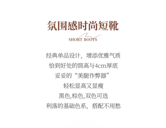 完美包裹脚踝 显得脚好秀气 防滑耐磨鞋底橡胶4厘米大底 秋冬必备单品 绝绝显瘦~简约而不简单 非常舒适!