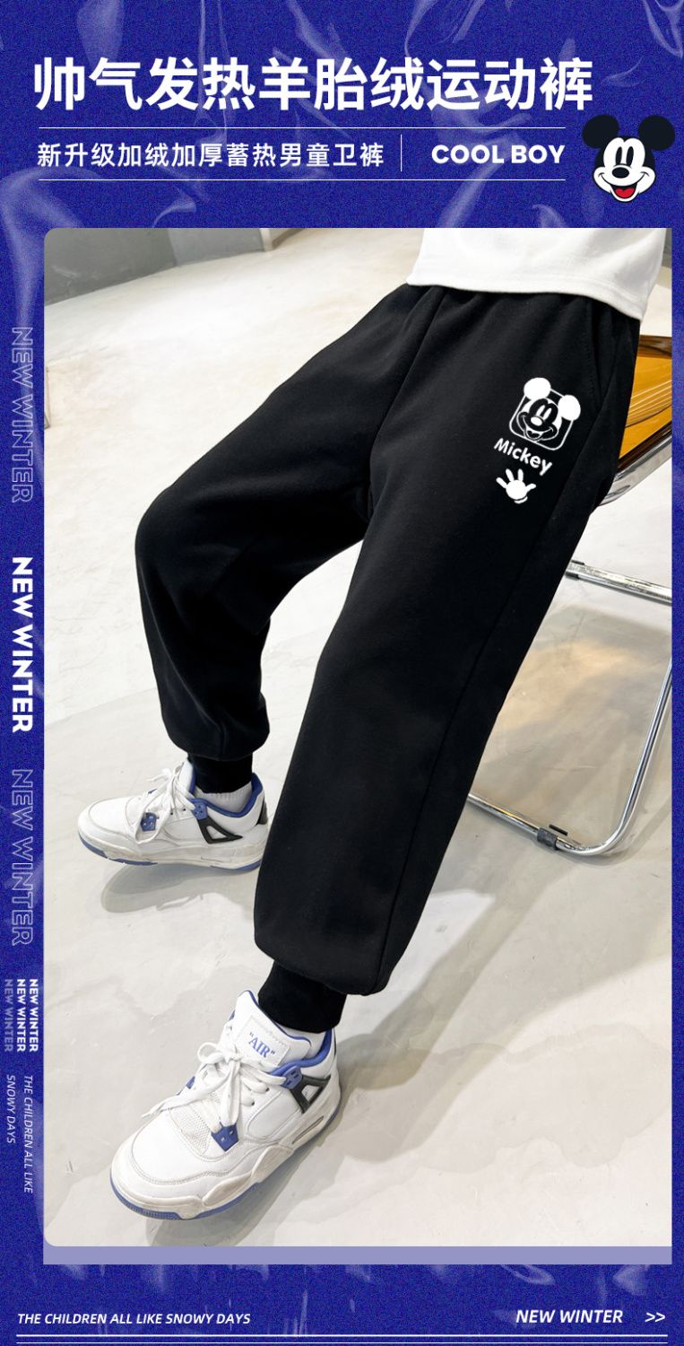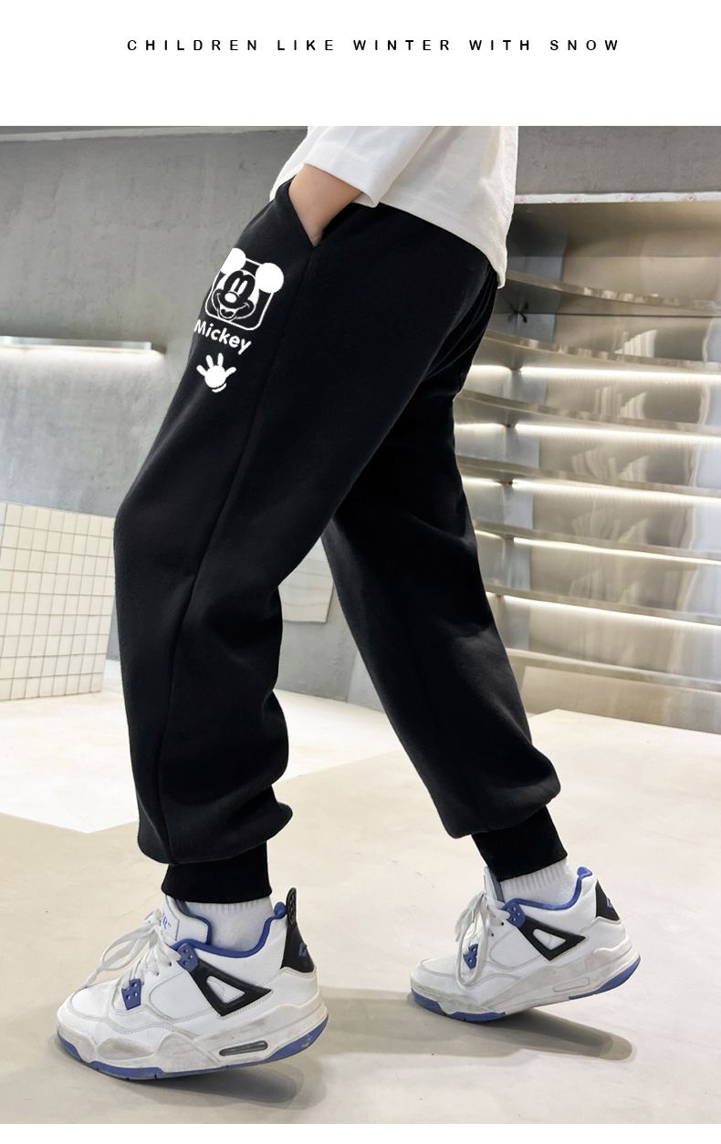 迪士尼男童裤子冬季加绒加厚洋气潮儿童秋装男运动裤一体绒冬装