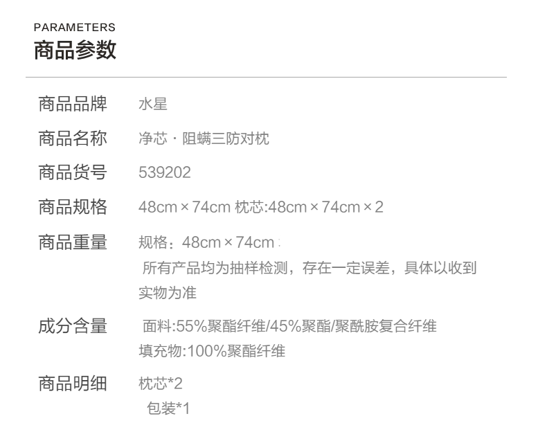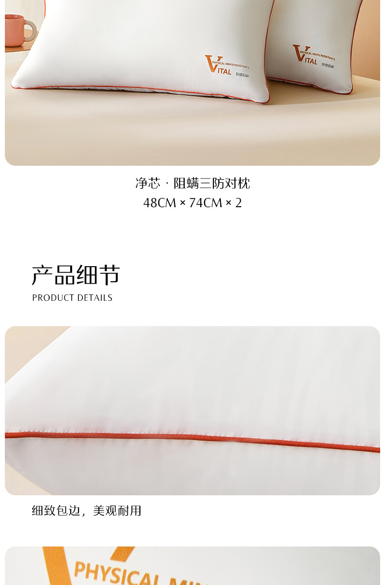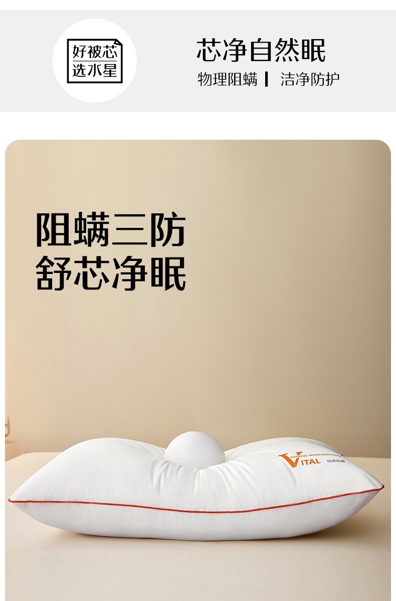 水星家纺柔软舒适净芯阻螨三防对枕酒店枕芯(到手两只)