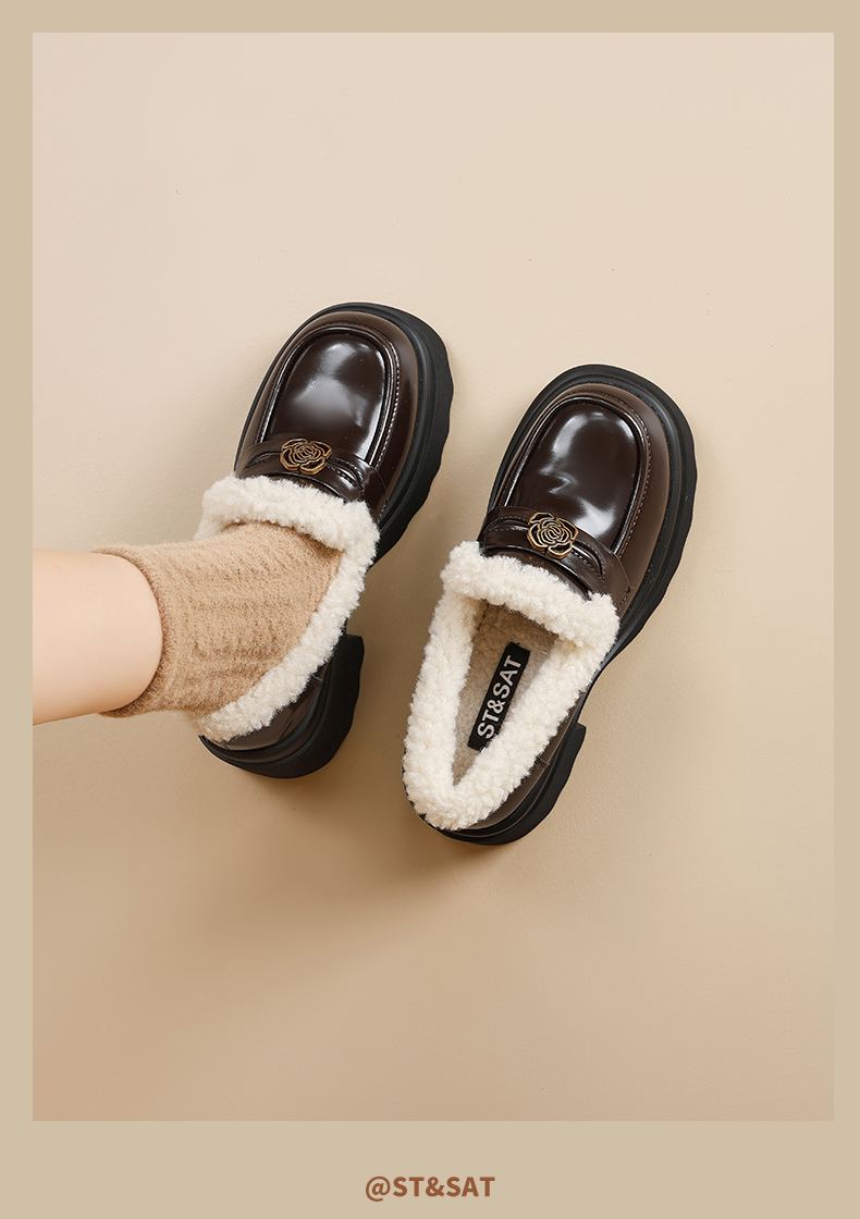 星期六复古山茶花加绒保暖厚底乐福SSD411DT6D