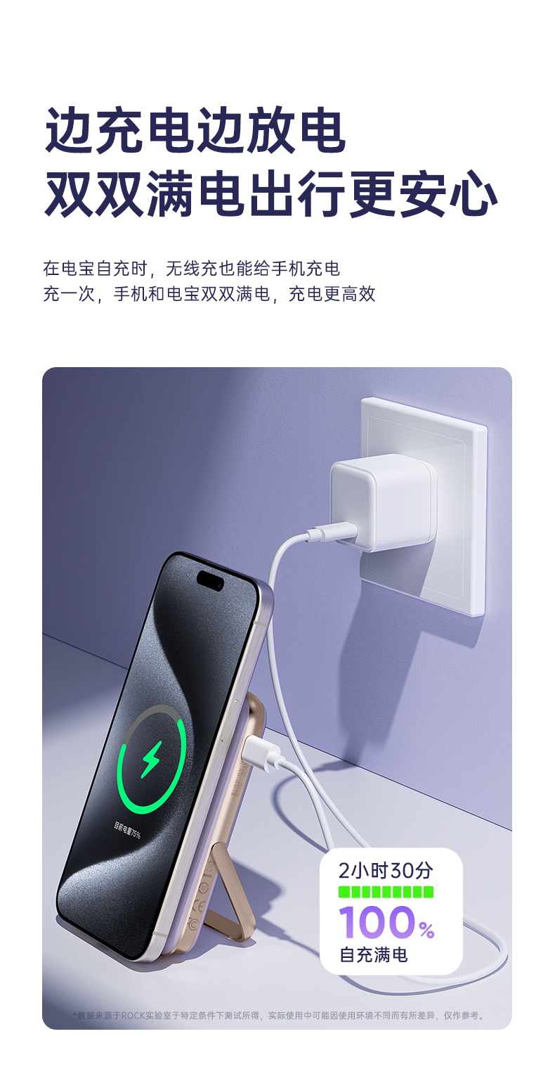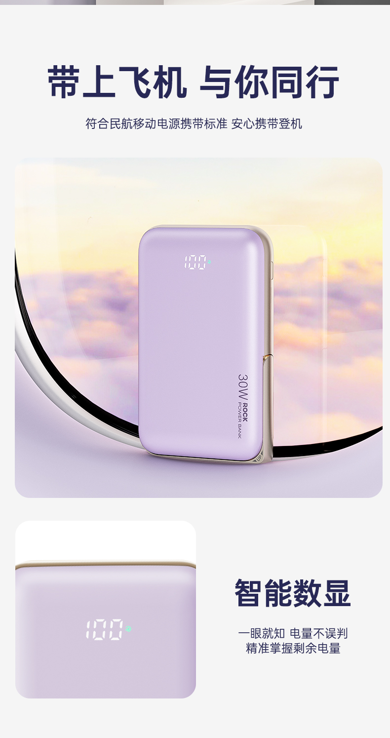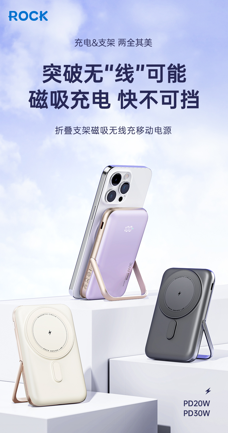 ROCK P30 PD30W磁吸无线充移动电源 10000mah