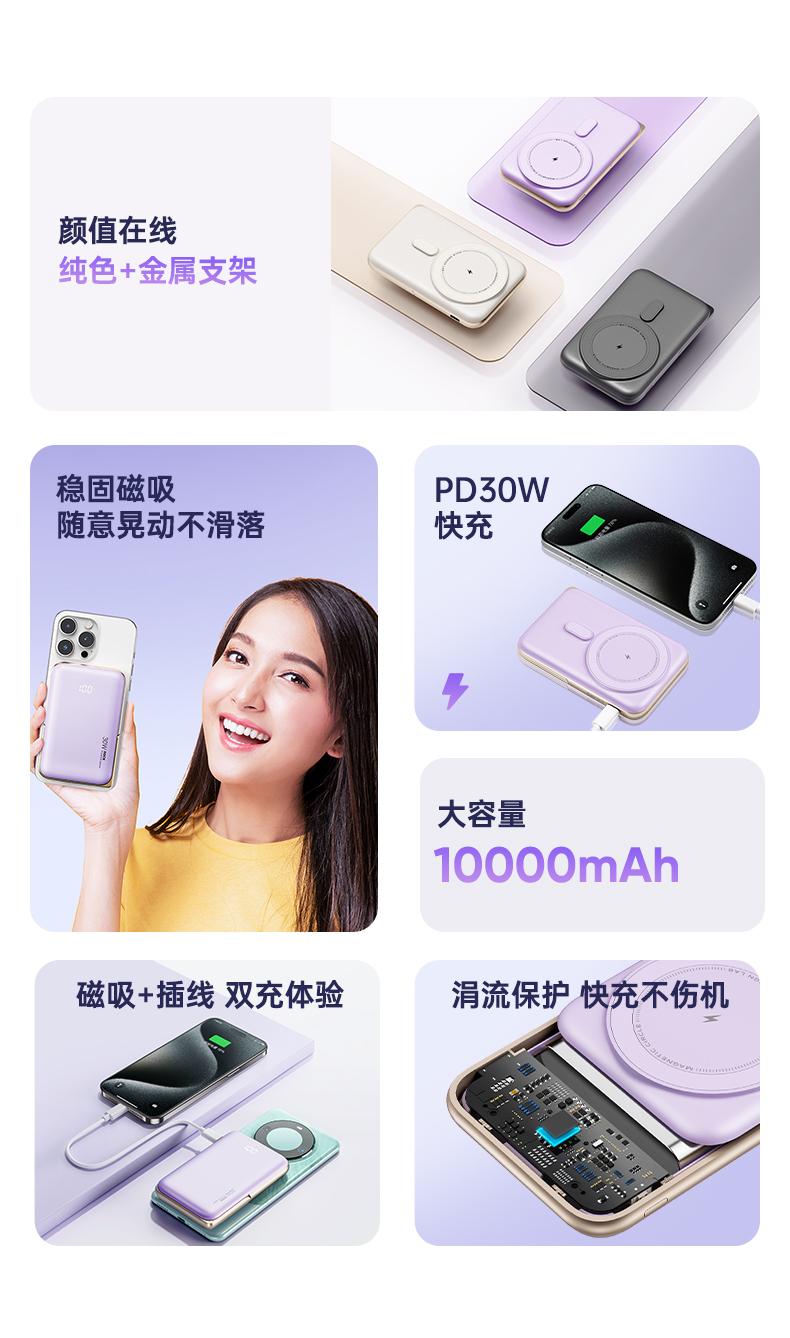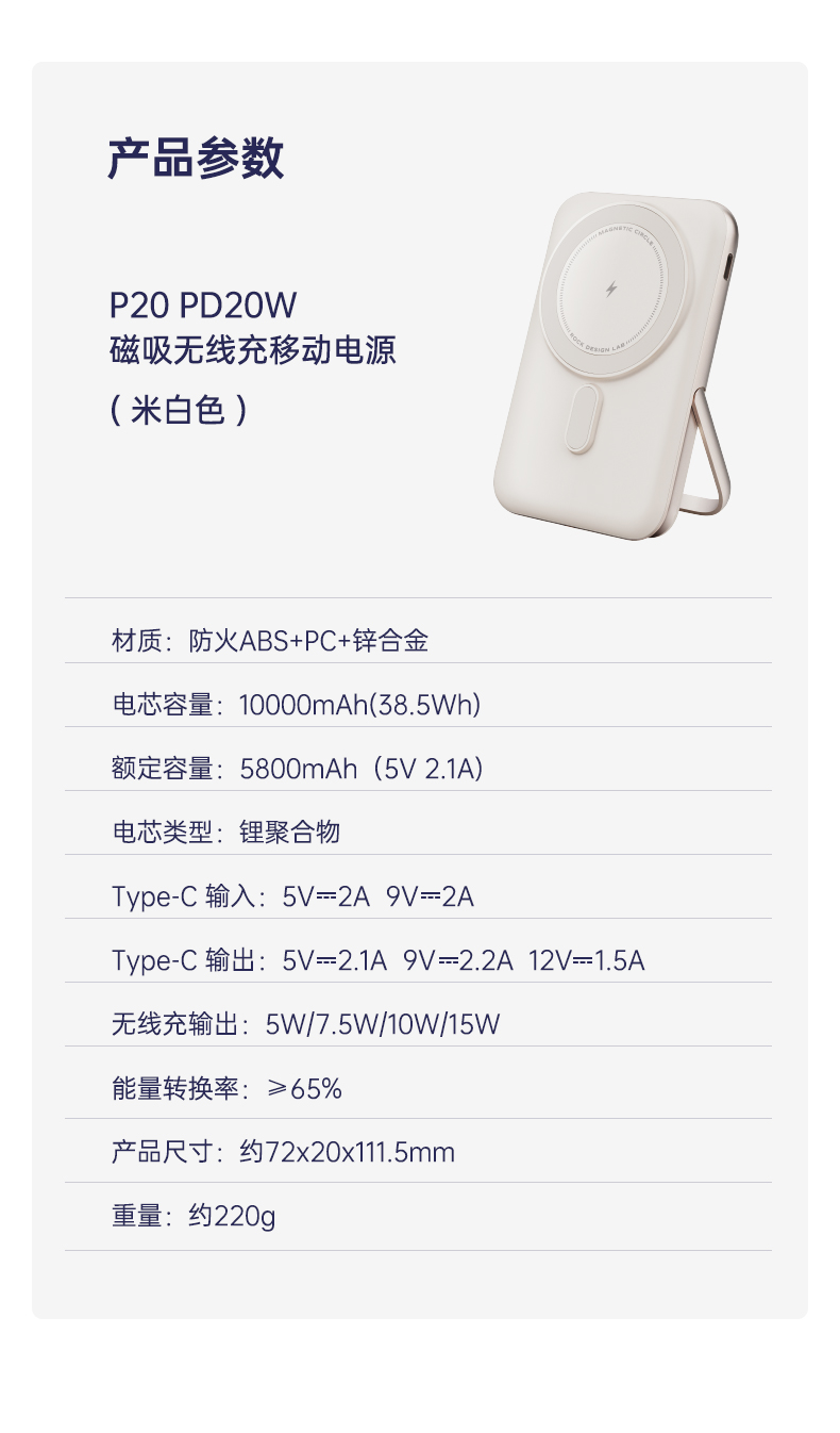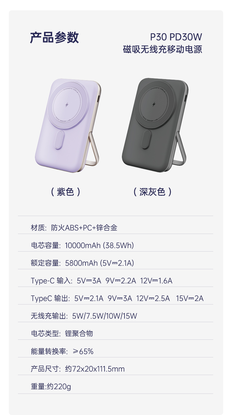 ROCK P30 PD30W磁吸无线充移动电源 10000mah