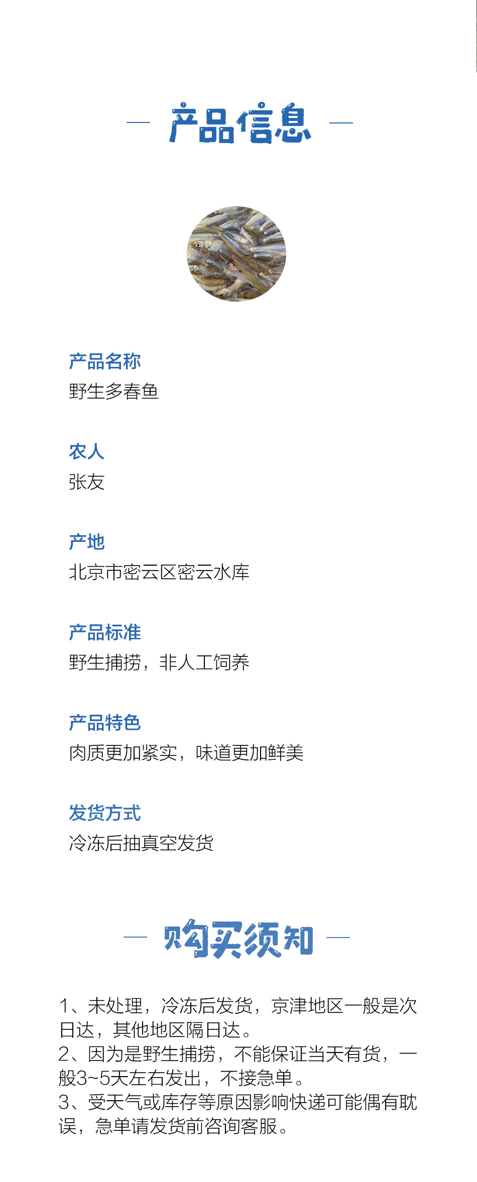 【野生多春鱼/公鱼】密云水库野生鱼(基地直发-顺丰包邮)| 2斤冷冻发货,来自北京密云水库(北京重要饮用水源),生产者:张友【合作生产,公平贸易】