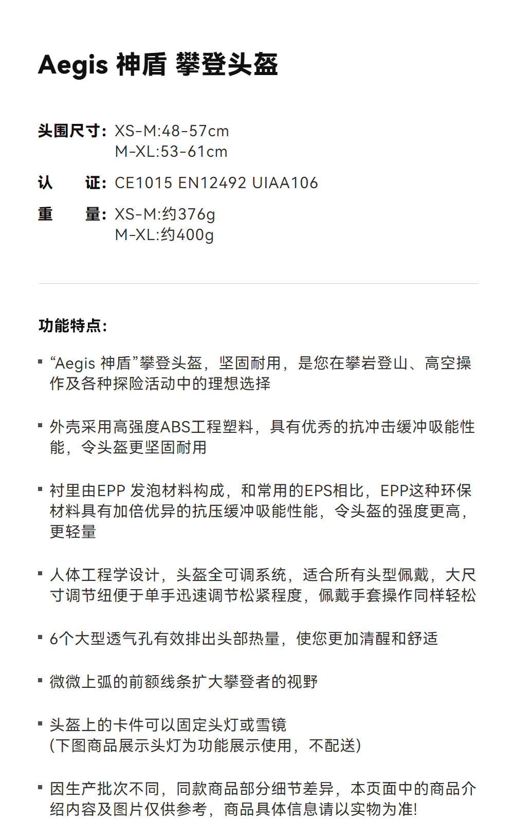 KAILAS凯乐石 户外运动 Aegis 神盾 攀登头盔 EK10021