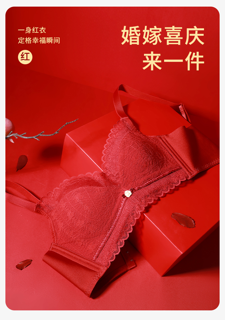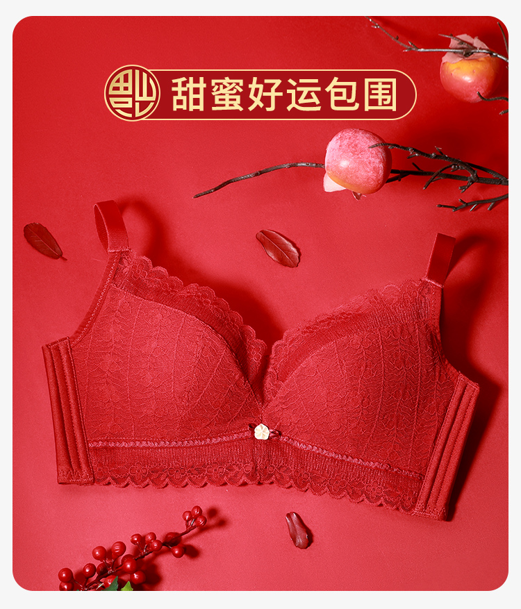 熳洁儿 红色内衣纯欲蕾丝小胸聚拢无钢圈文胸轻薄舒适收副乳23761522