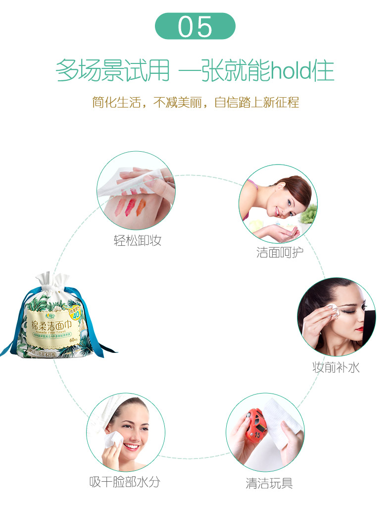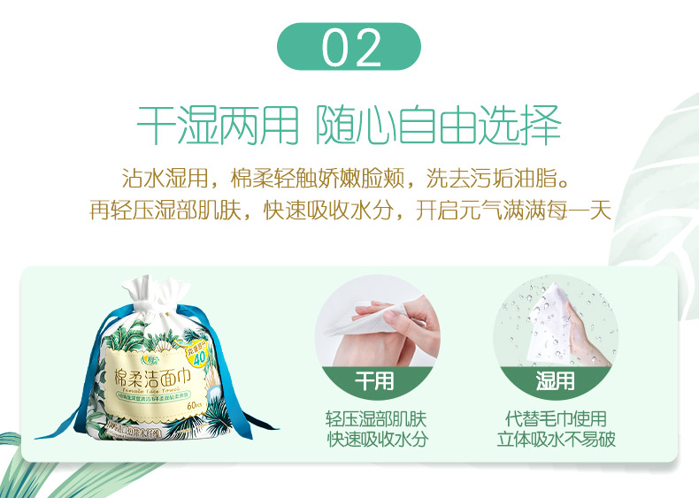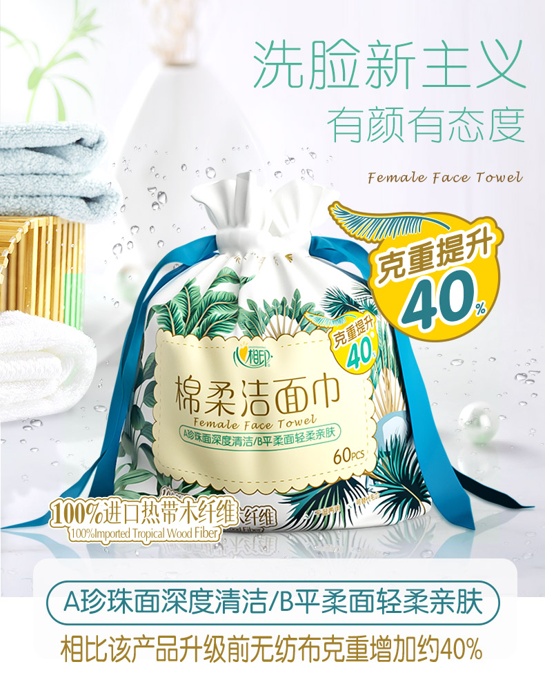 心相印棉柔系列60片装洗脸巾3袋装(卷式袋装) 3XCD060(袋装)