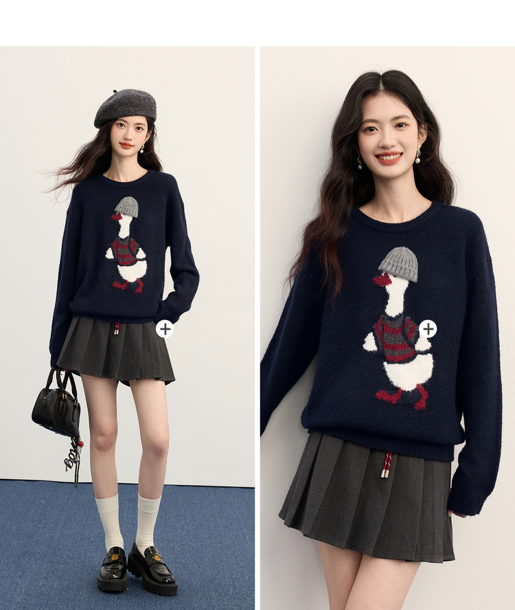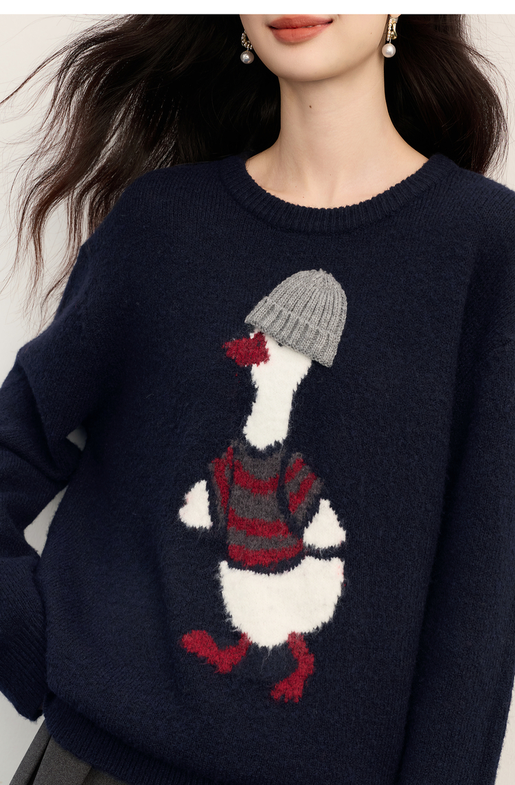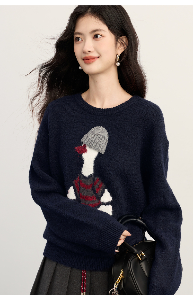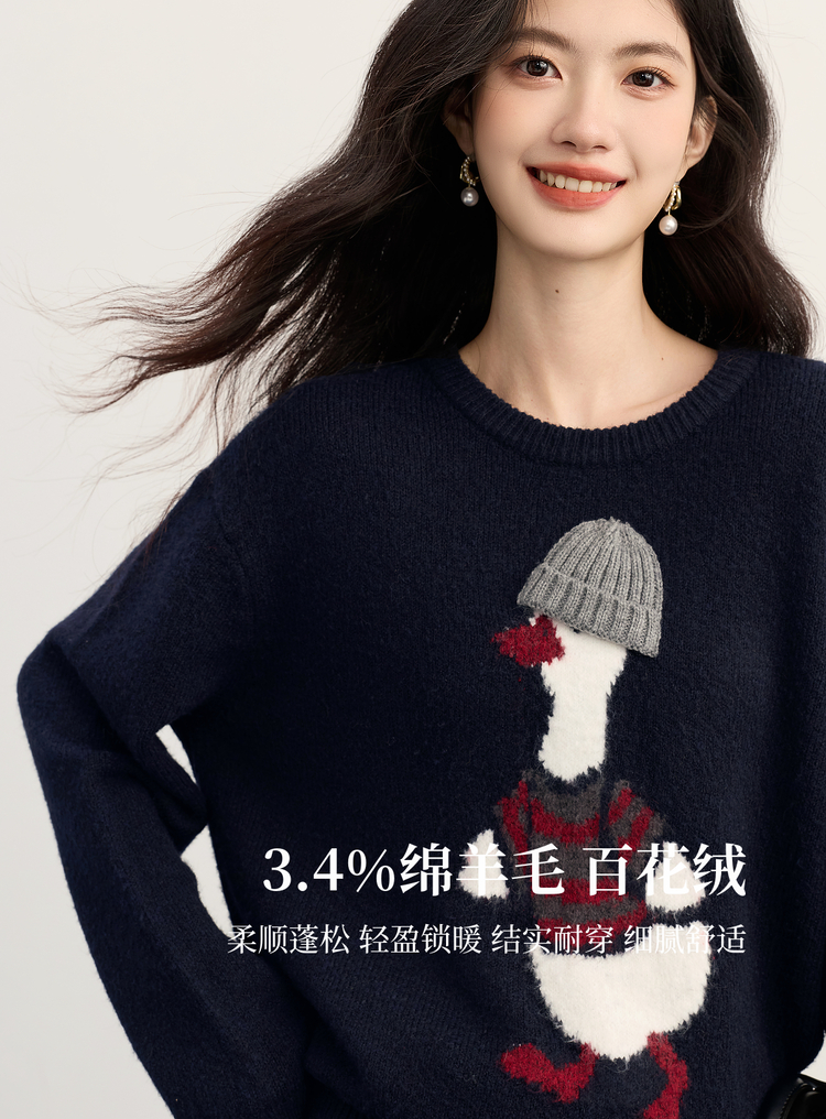【11/19新品】熙世界萌趣卡通小鸭子毛衣女2025冬季新款长袖圆领松弛感针织上衣