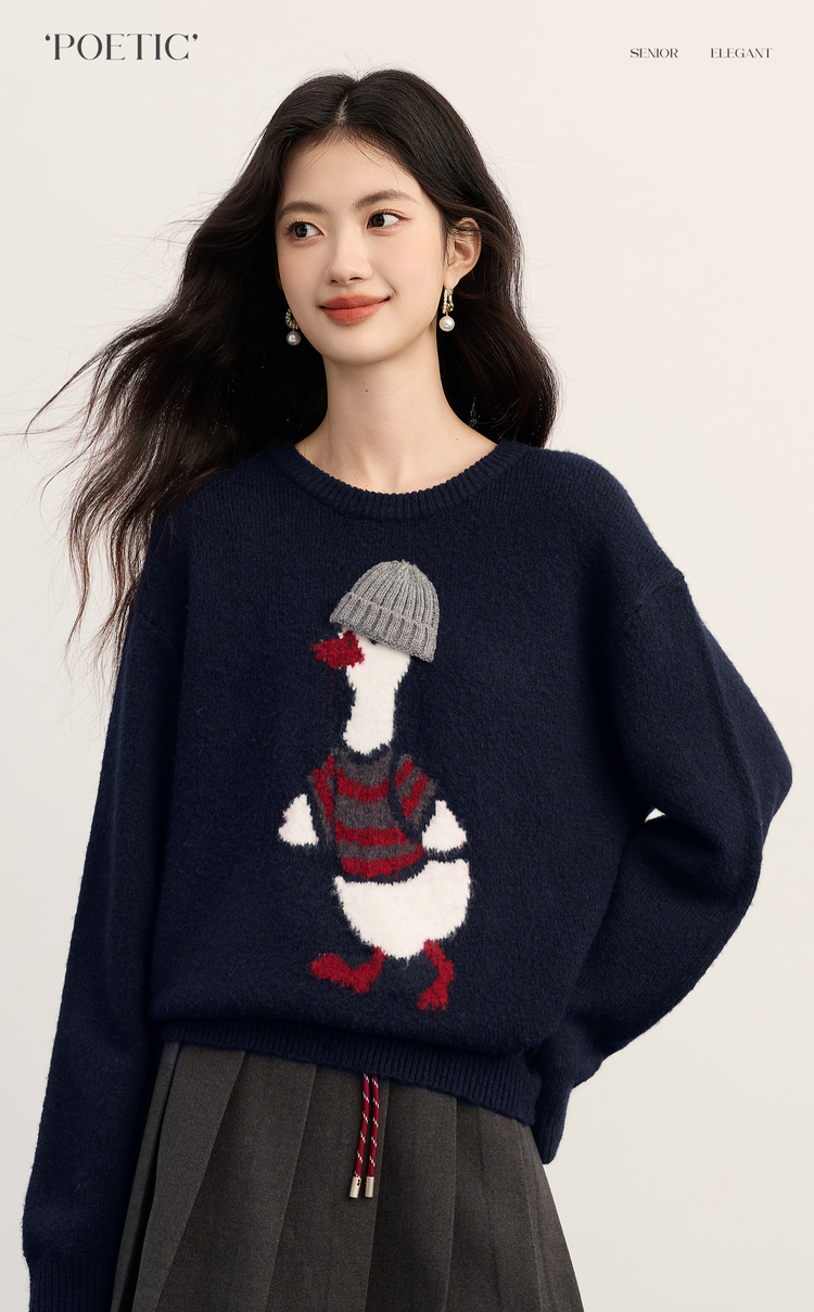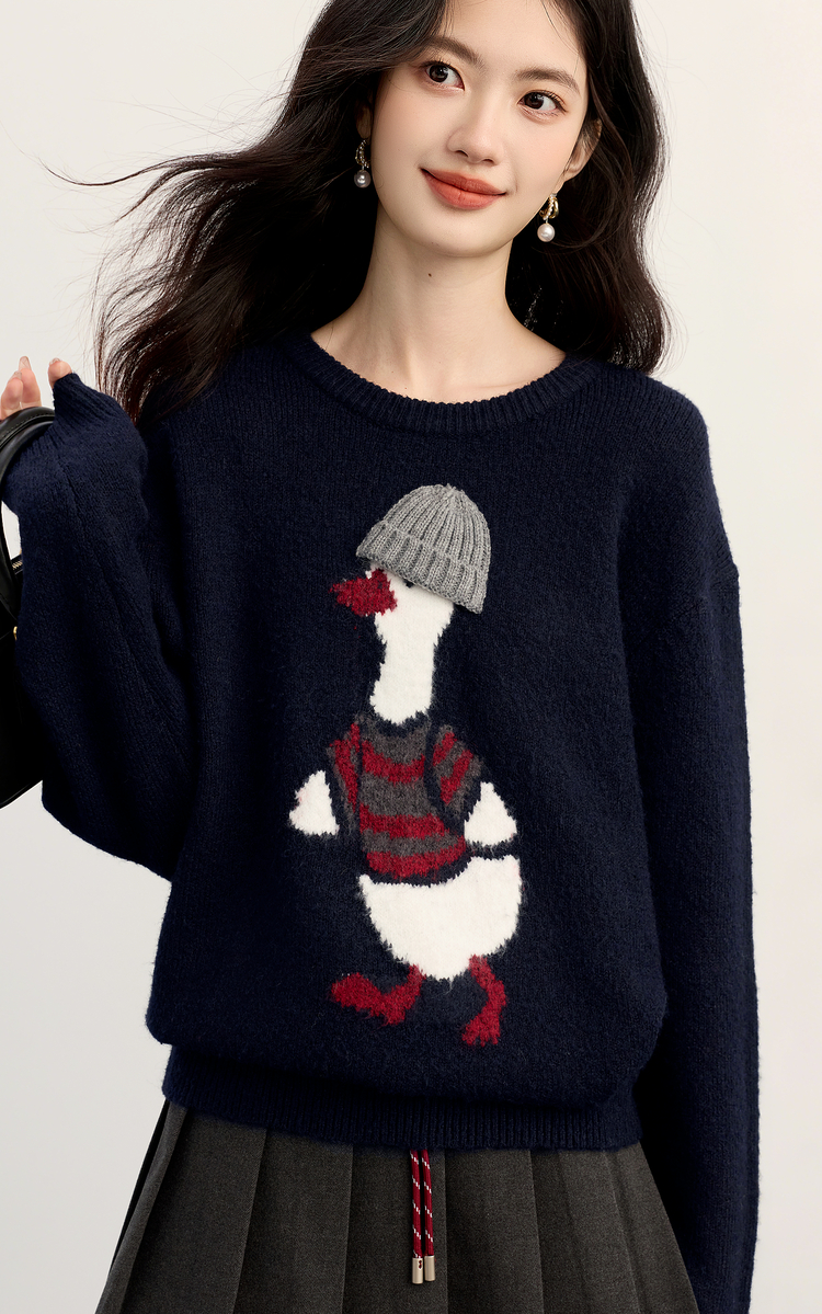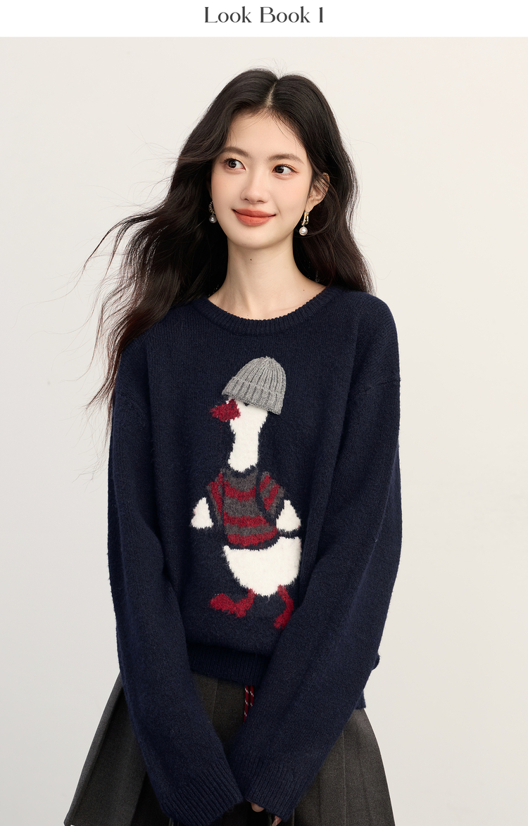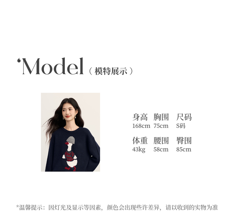 【11/19新品】熙世界萌趣卡通小鸭子毛衣女2025冬季新款长袖圆领松弛感针织上衣