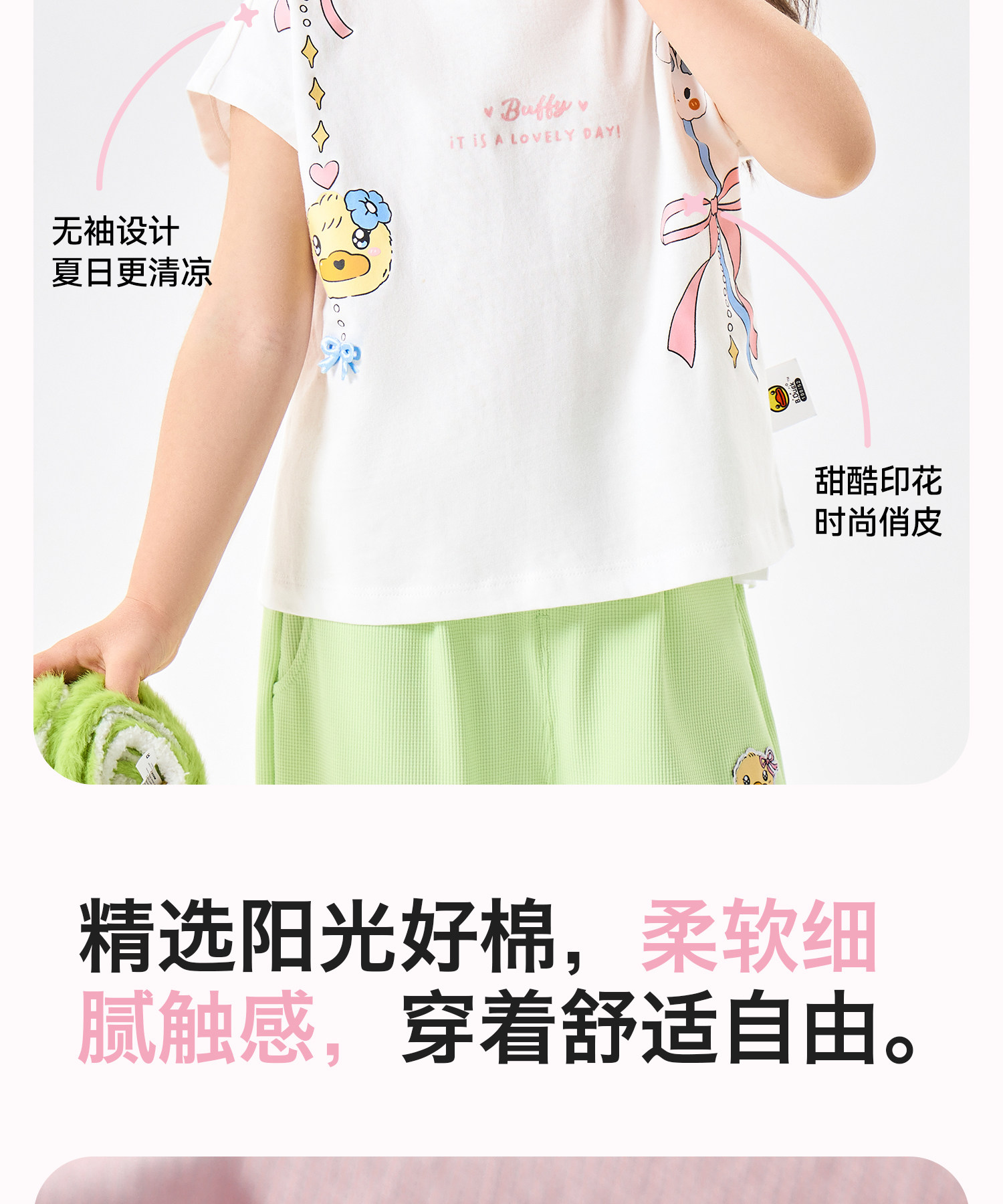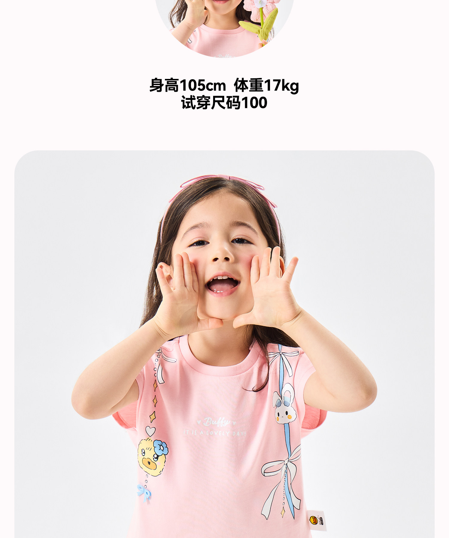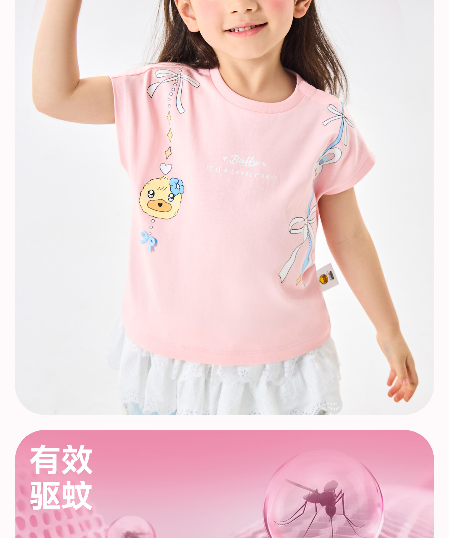 [抗菌驱蚊]bduck小黄鸭童装女童短袖T恤纯棉儿童夏装宝宝卡通上衣90-150 FF2701068