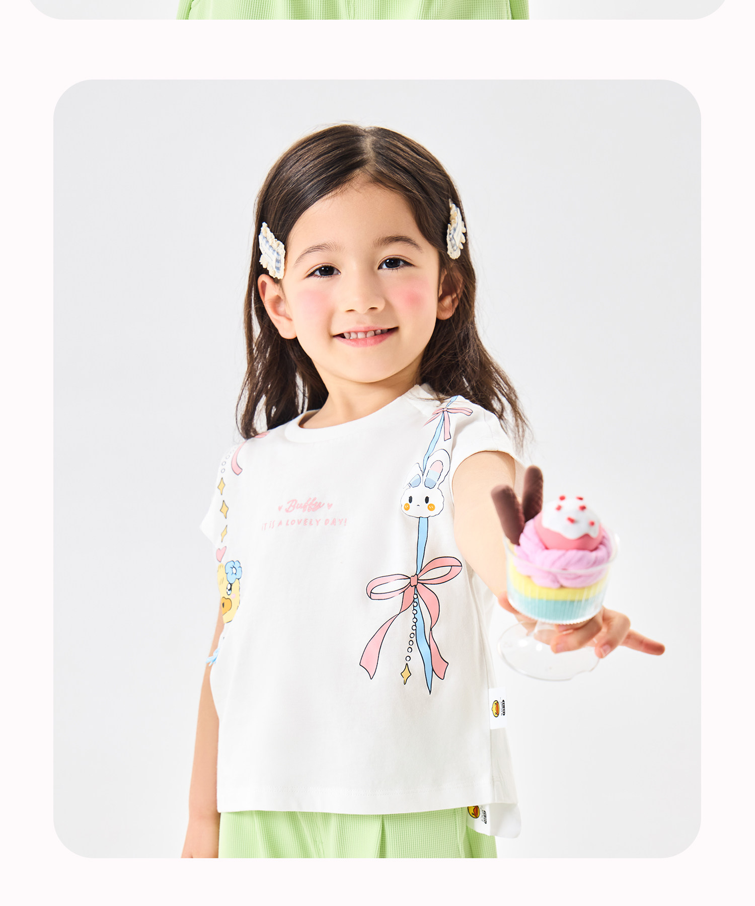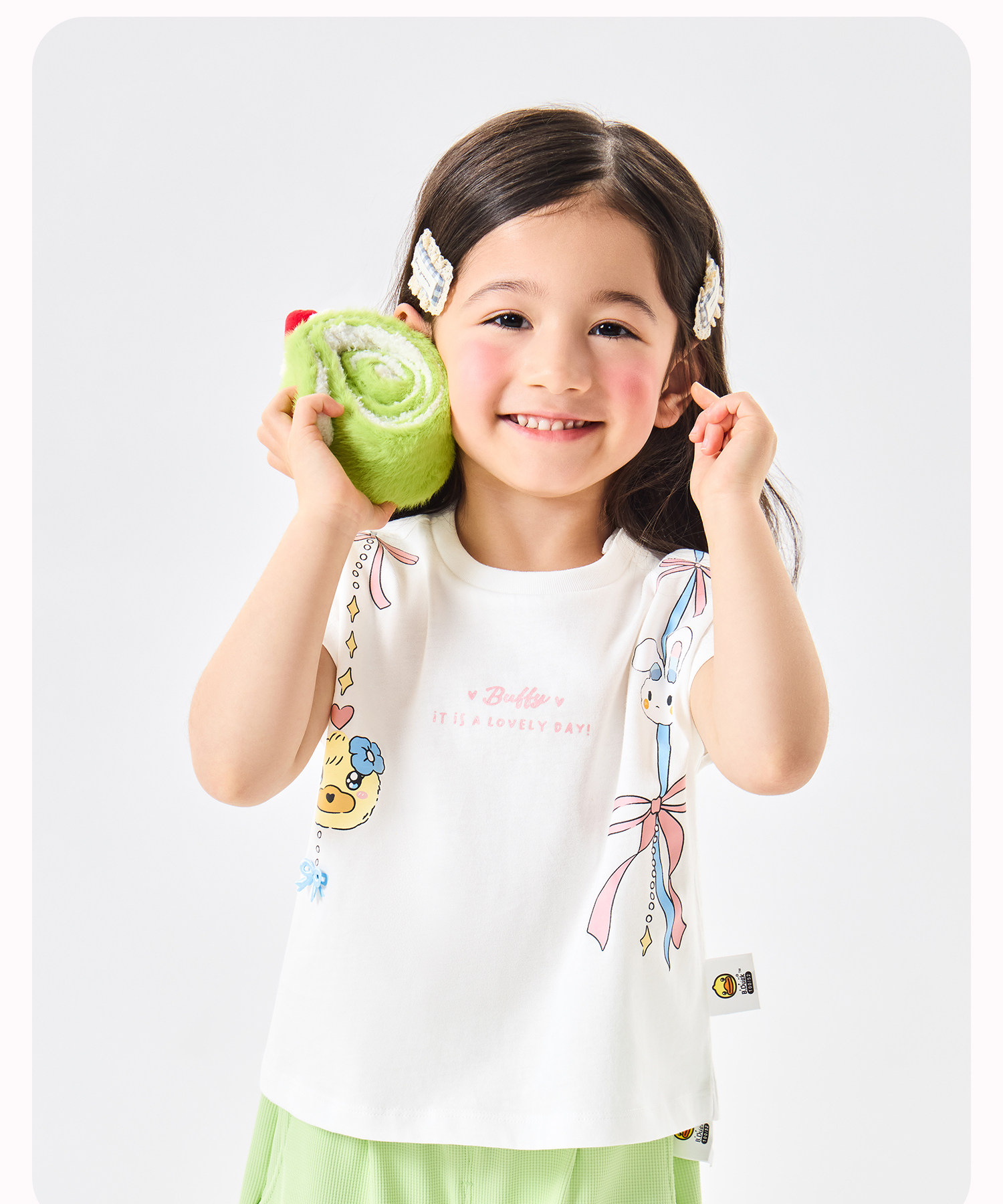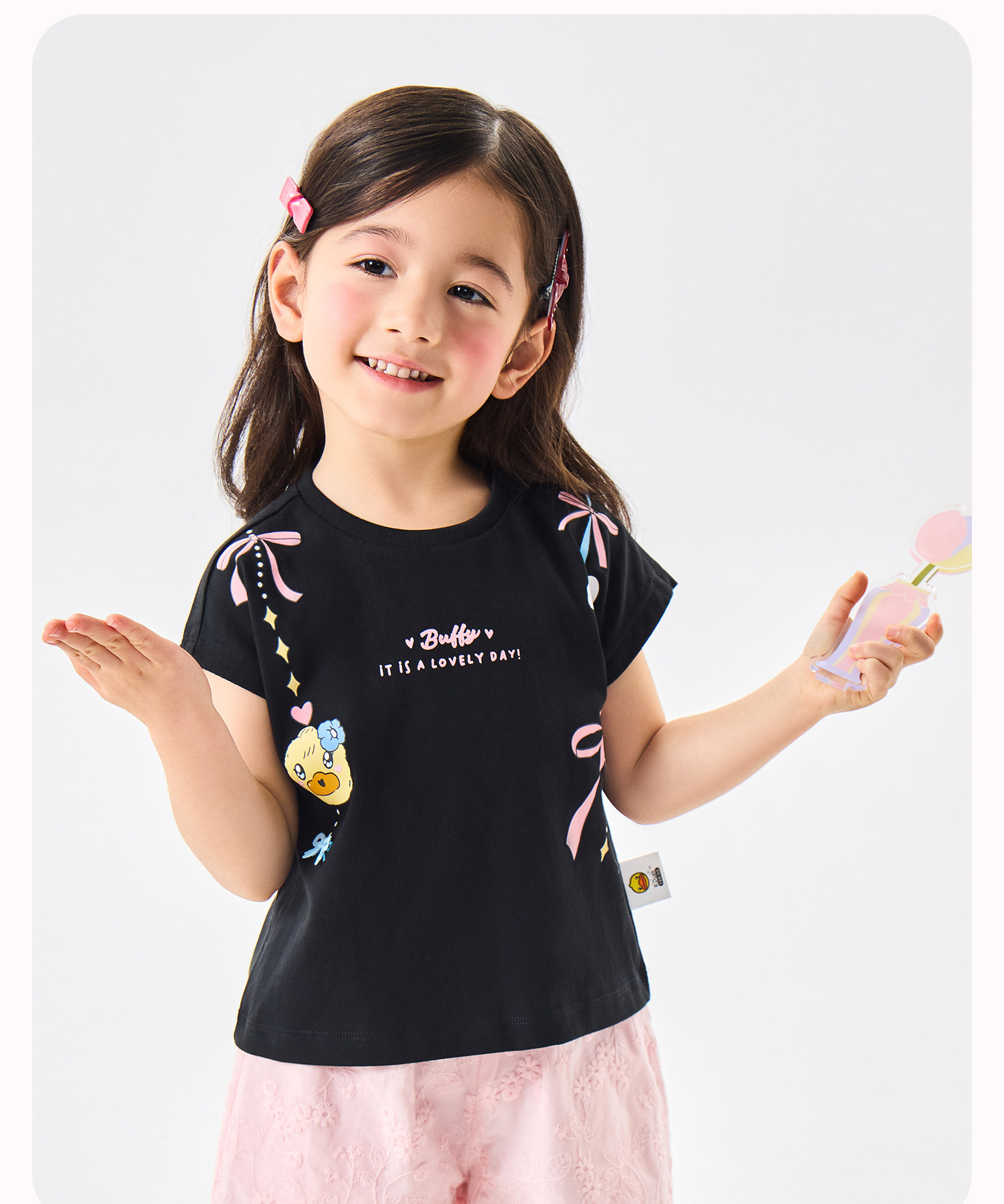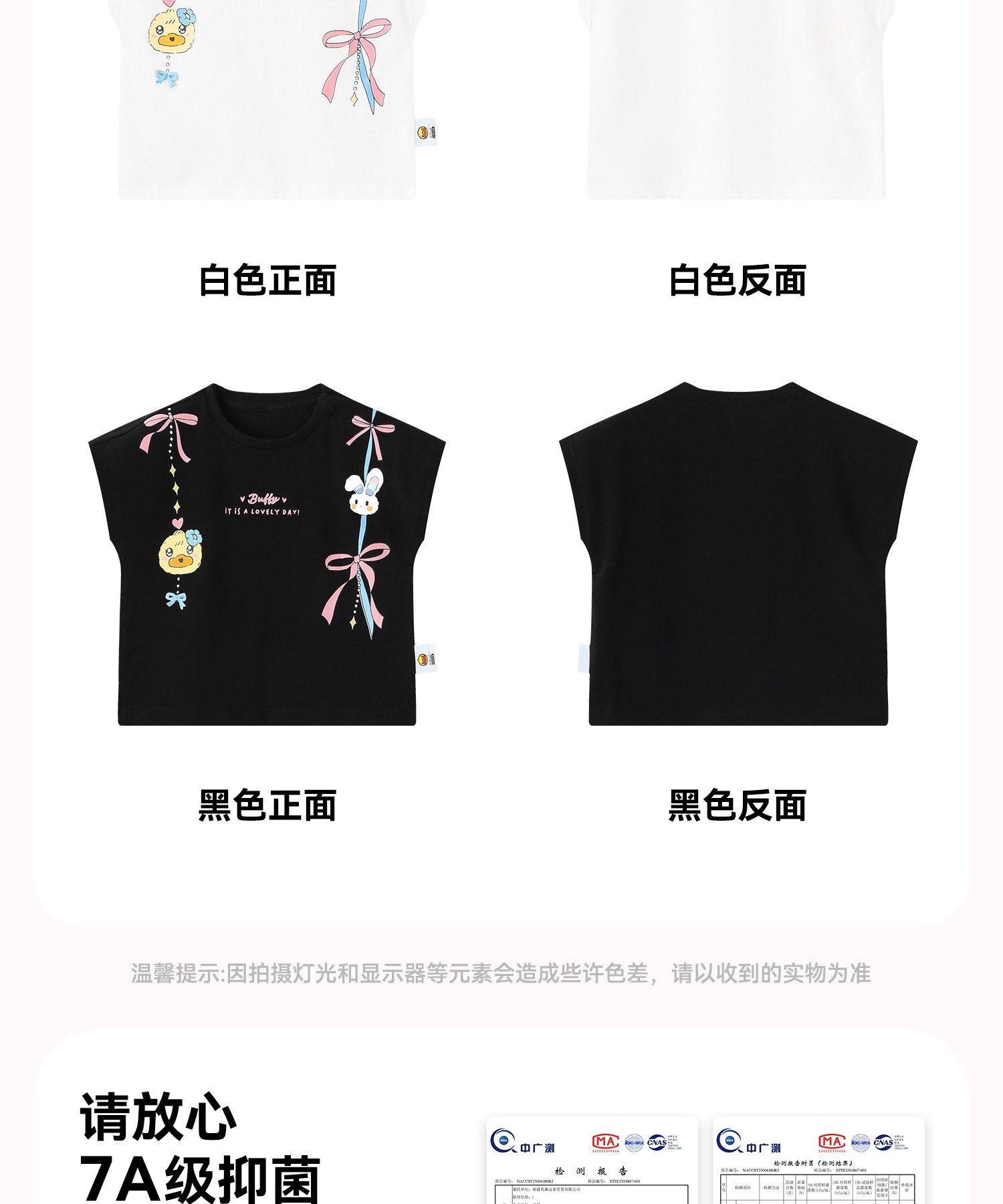 [抗菌驱蚊]bduck小黄鸭童装女童短袖T恤纯棉儿童夏装宝宝卡通上衣90-150 FF2701068