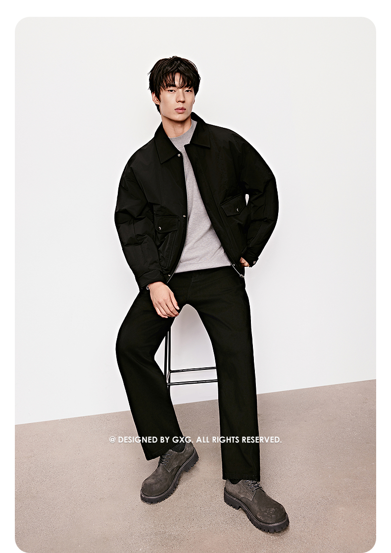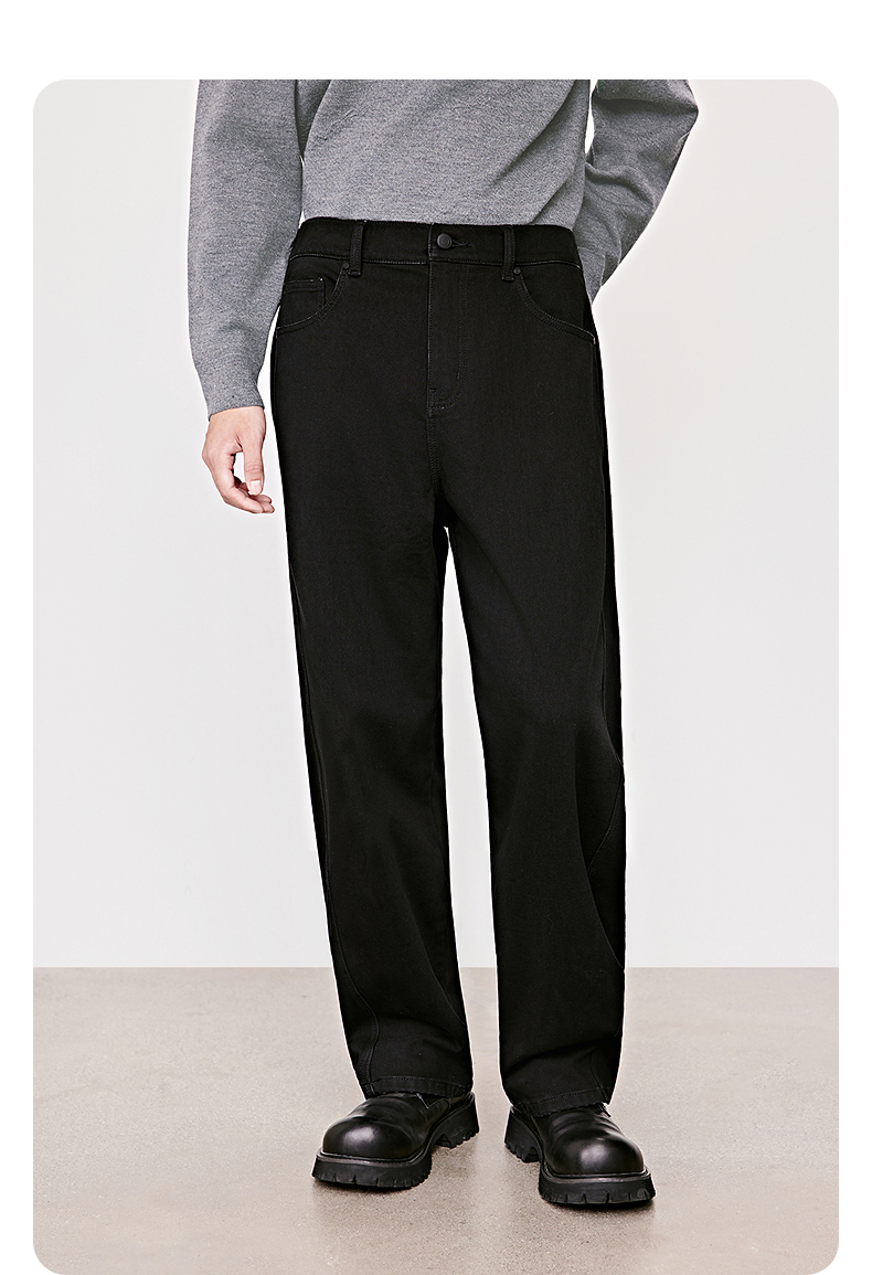 GXG男装 黑色火山岩保暖弹力宽松直筒弯刀牛仔裤 25年冬季热卖