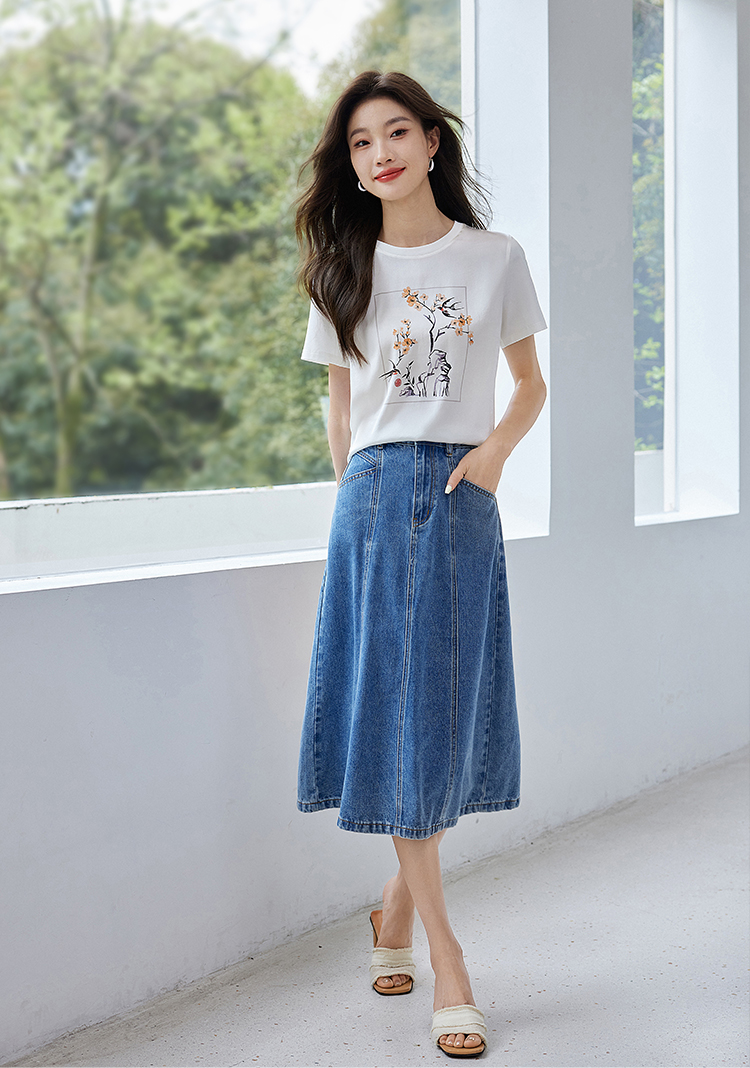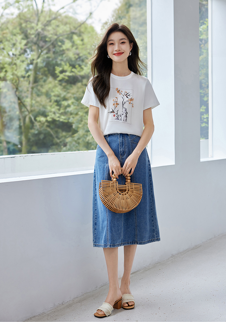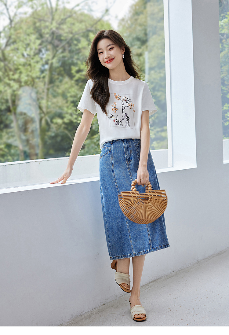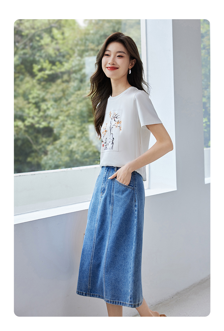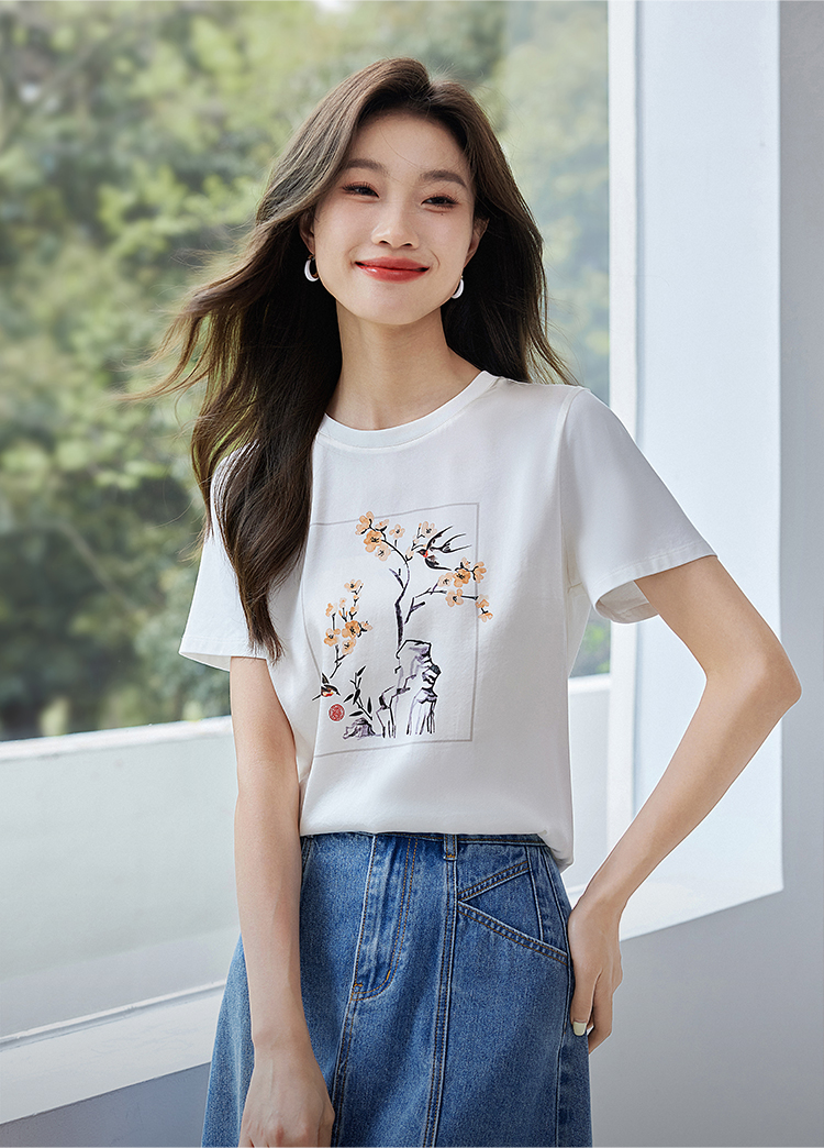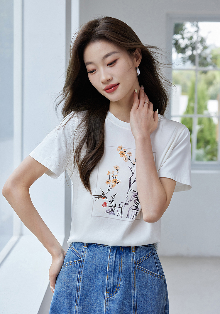【专属特价】熙世界6A双宫桑蚕丝短袖T恤夏季新款宽松显瘦国风印花真丝上衣
