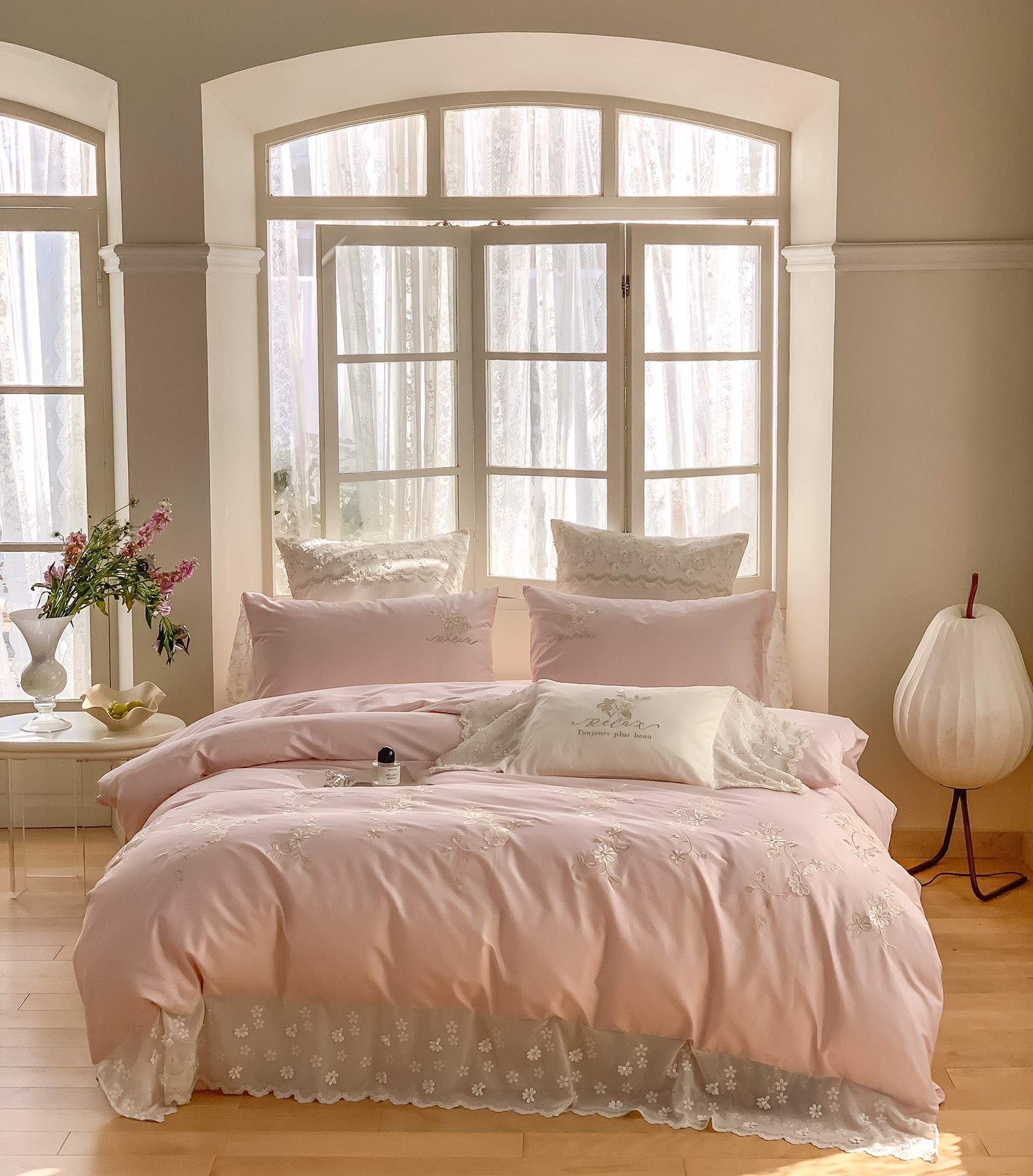 工艺特色:精美精致刺绣➕法国手工立体蕾丝刺绣