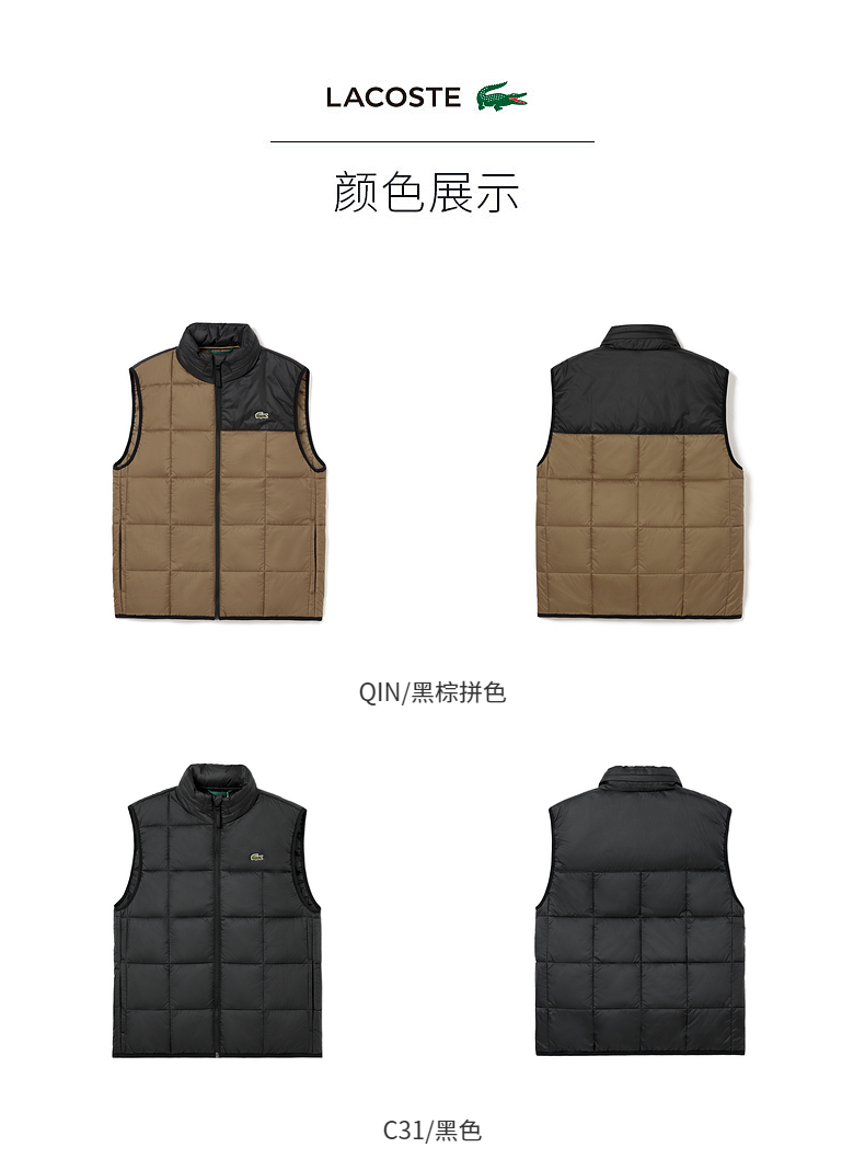 【海南专供价】Lacoste法国鳄鱼男装新款休闲舒适保暖户外马甲外套BH1585-98