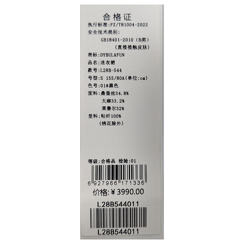 戴布拉芬连衣裙L28B544