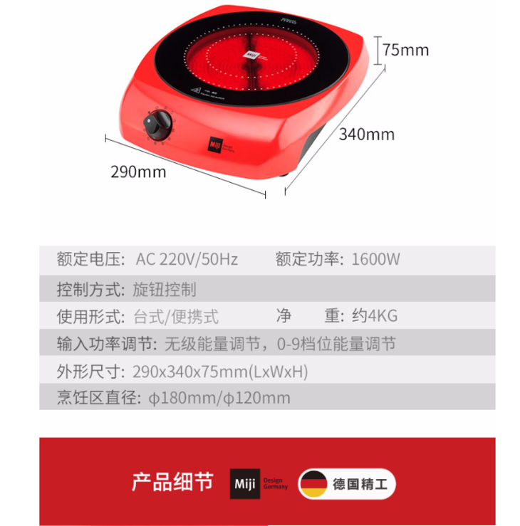 德国米技电陶炉Miji gala i1600W进口炉芯家用煮茶炉法拉利跑车款