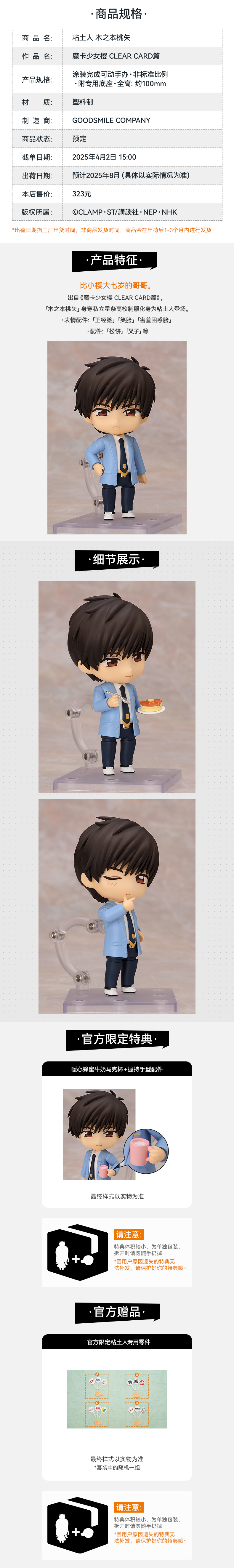 【GSC补款】粘土人 木之本桃矢 附官方限定特典 魔卡少女樱 CLEAR CARD篇